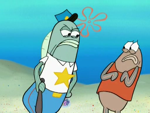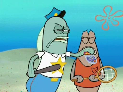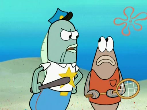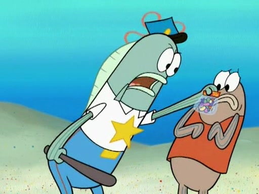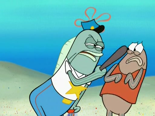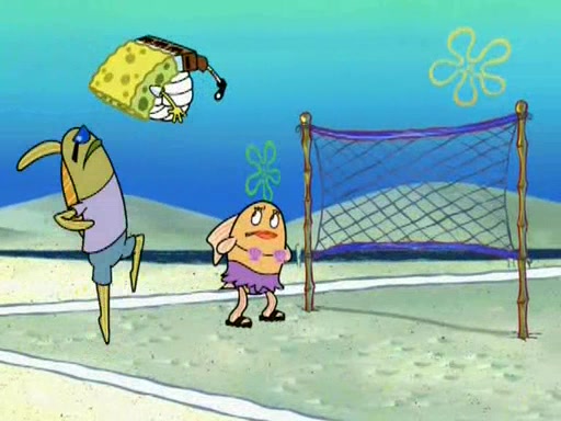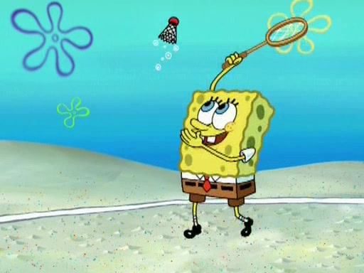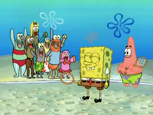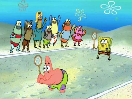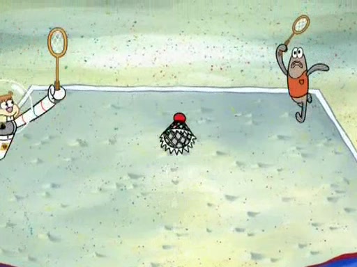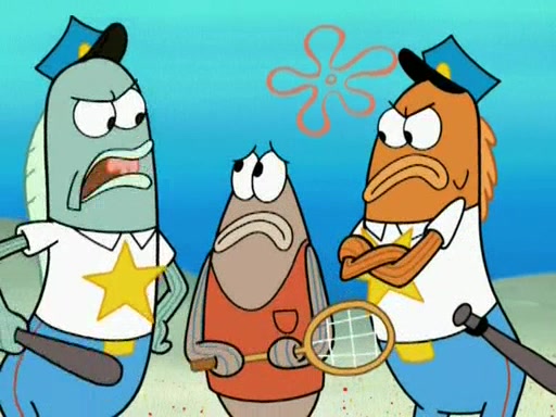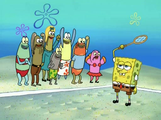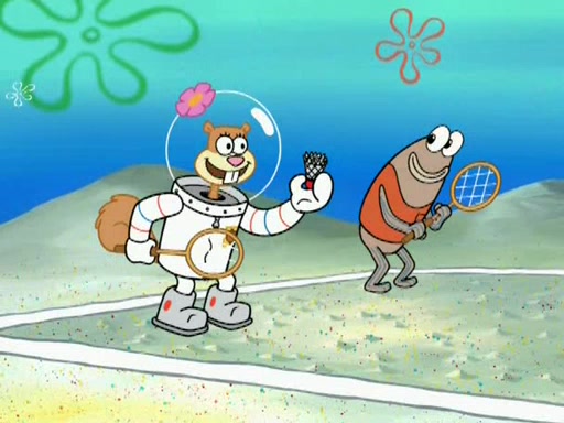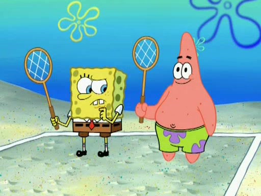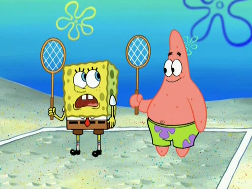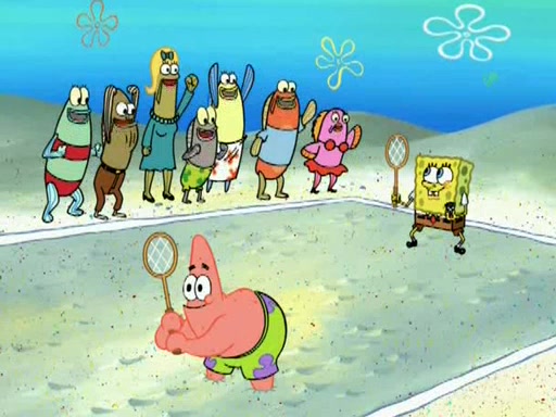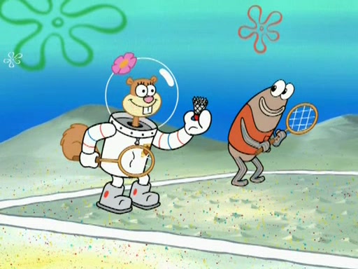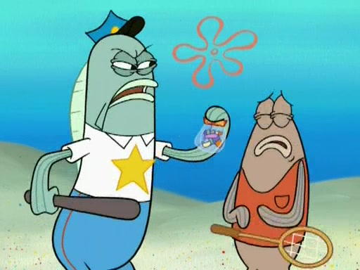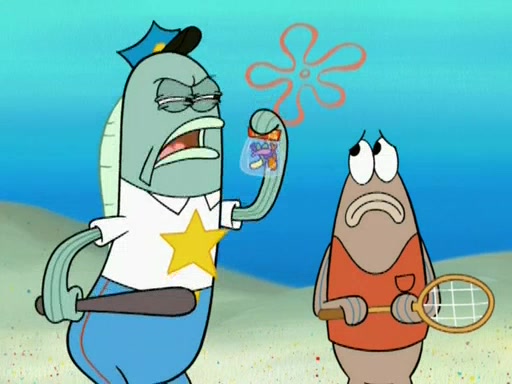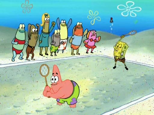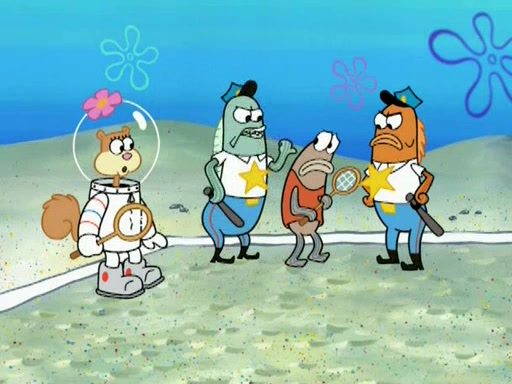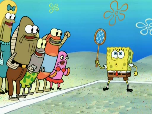 The two pursuit into Goo Lagoon where they get into a Badminton match with Sandy and a friend named Dale. SpongeBob and Patrick end Sandy's reign and unbeatable and are convinced by their fans to play another round. Then the cops come and arrest Dale, who is an ex-con on probation, for eating gummy fish (in Bikini Bottom, a reference to drug use). A fish tells SpongeBob that Dale was a nice guy until he started cutting class and ever since then, he became a criminal. With this, SpongeBob fears that he'll meet the same fate as Dale, so he continues into the school.
