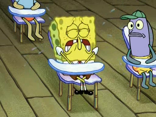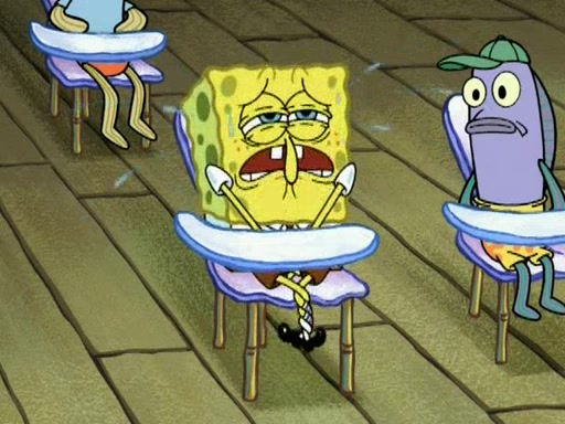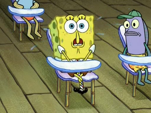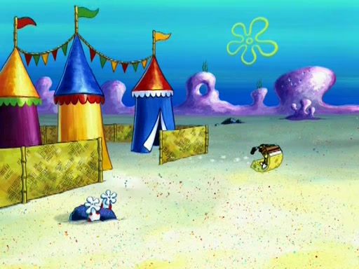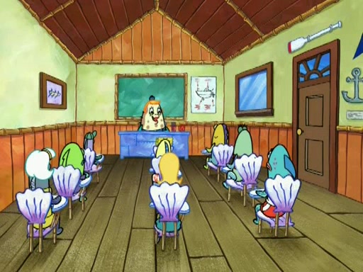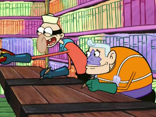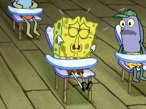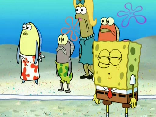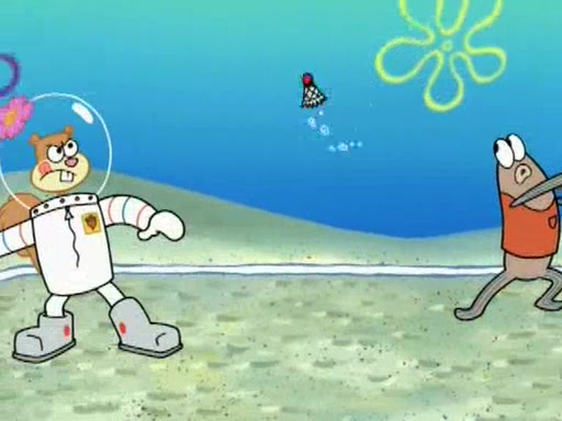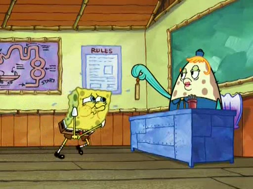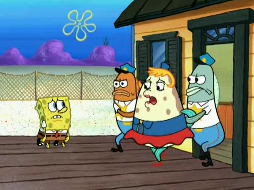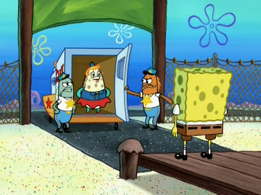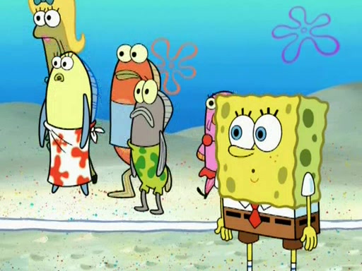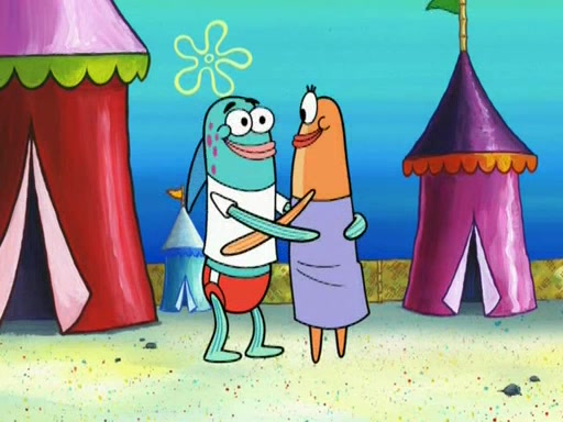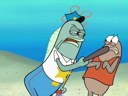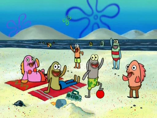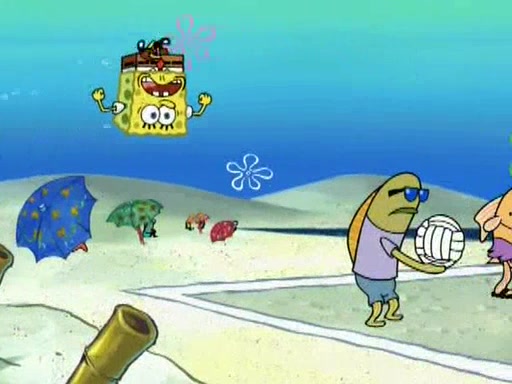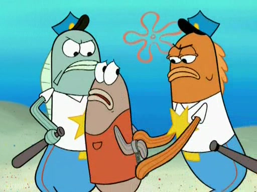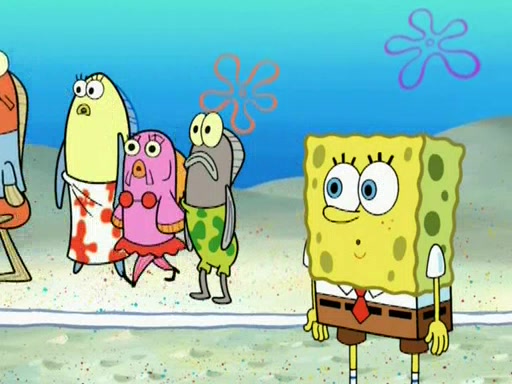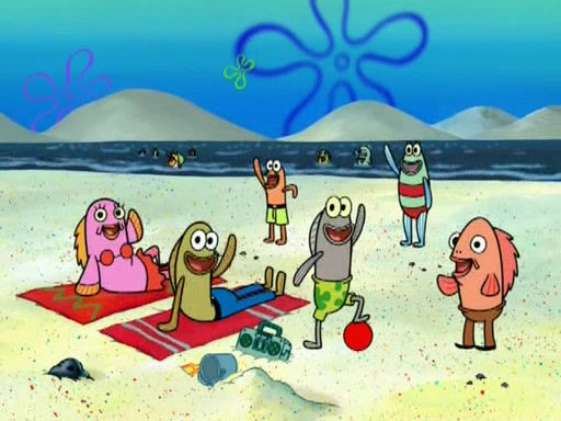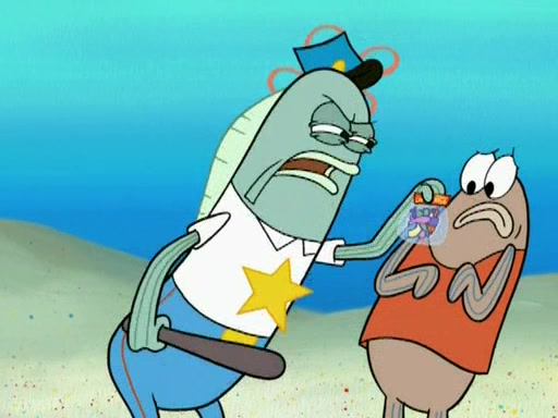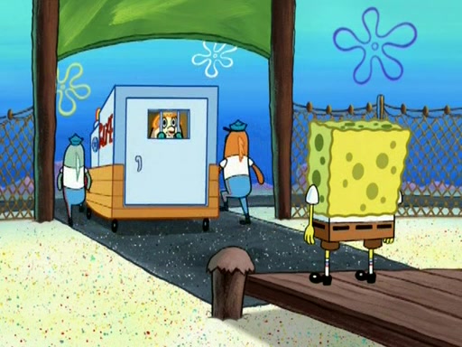 The two pursuit into Goo Lagoon where they get into a Badminton match with Sandy and a friend named Dale. SpongeBob and Patrick end Sandy's reign and unbeatable and are convinced by their fans to play another round. Then the cops come and arrest Dale, who is an ex-con on probation, for eating gummy fish (in Bikini Bottom, a reference to drug use). A fish tells SpongeBob that Dale was a nice guy until he started cutting class and ever since then, he became a criminal. With this, SpongeBob fears that he'll meet the same fate as Dale, so he continues into the school.