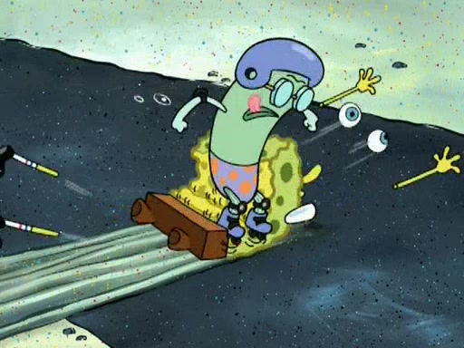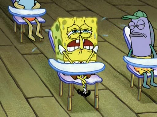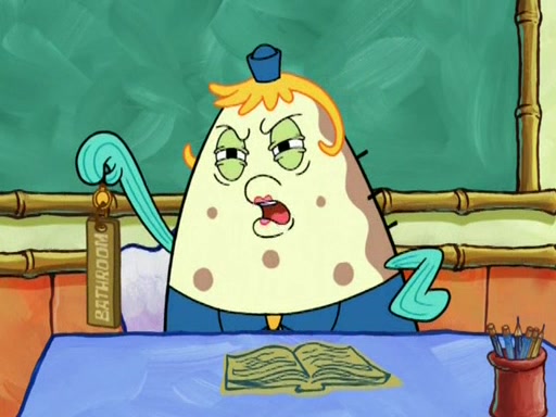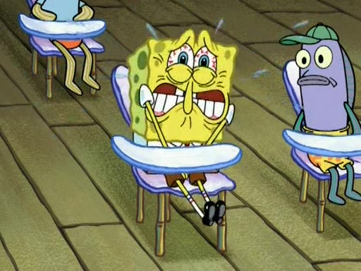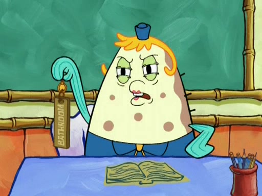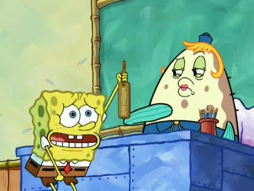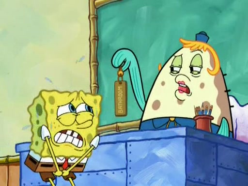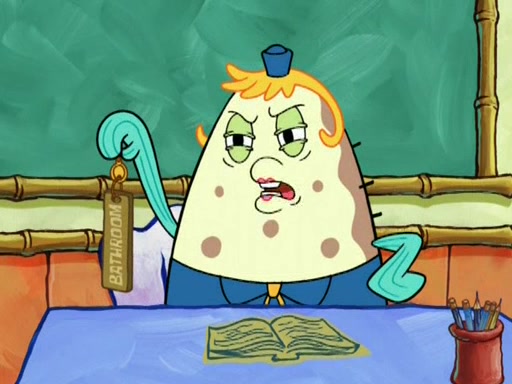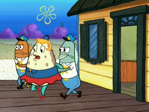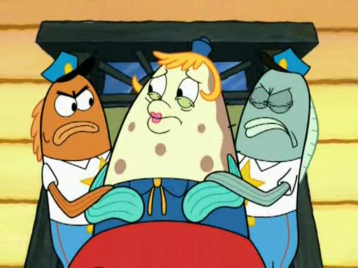 SpongeBob has to race through the Bikini Bottom hug fest where a woman grabs him. He forces her to let go and continues. He ends up in a pit of tar and starts to drown, remembering the last words that Mrs. Puff said to him. SpongeBob then fights his way out with a crowd cheering him on. He makes it back to the school with Mrs. Puff at the door and she becomes mad. He explains what he did, with her not knowing what he is talking about. Cops appear behind her because she is being arrested for missing jury duty. The car pulls off with her telling SpongeBob do not ditch. SpongeBob says he will never ditch again leaving her confused and angry with him.