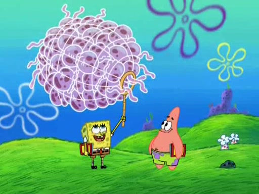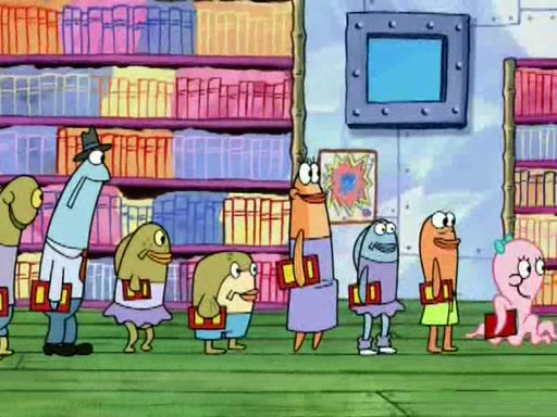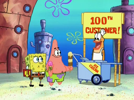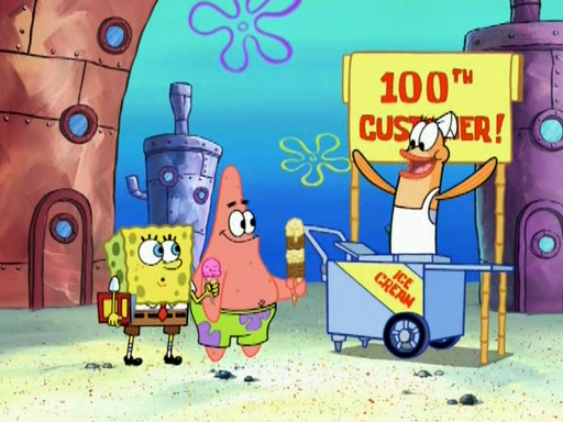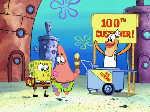 The next day in boating school, SpongeBob pretends to have to go. Mrs. Puff gives him the bathroom key and tells him to return it to her desk, with that SpongeBob exits the school. He and Patrick get to the store and get their books signed and walk through jellyfish fields. The jellyfish start to lift up Patrick and let him sit on them with Patrick stating they're "friendly." They then throw themselves into SpongeBob's net then leave. SpongeBob and Patrick continue ending up buying ice cream. Sadie congratulates SpongeBob on being her 100th costumer and tells him he can come back for free ice cream anytime.