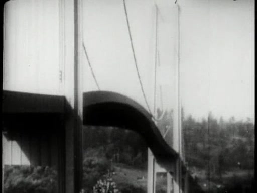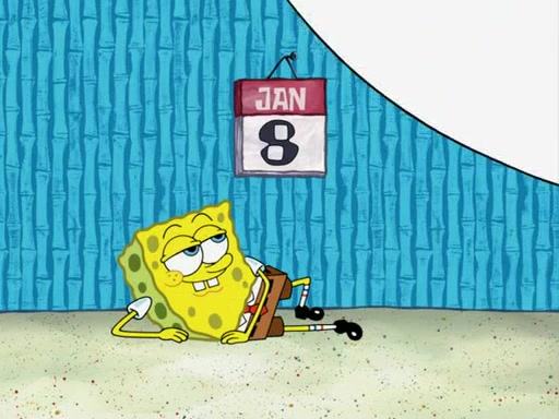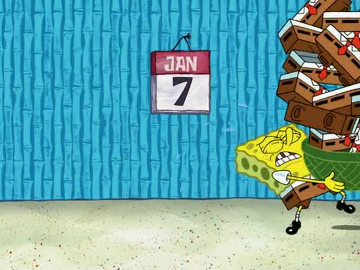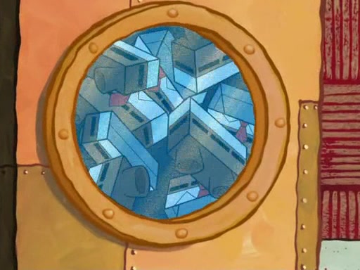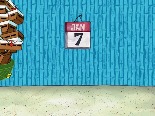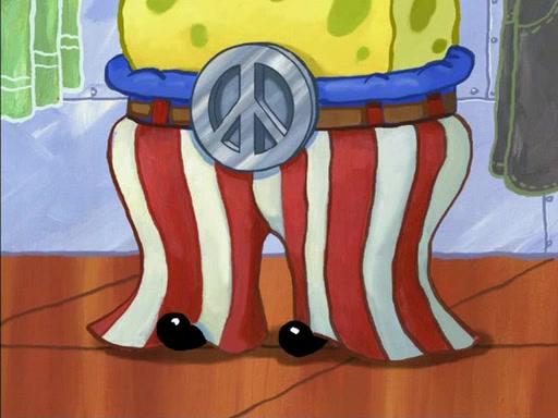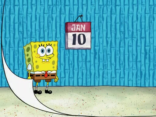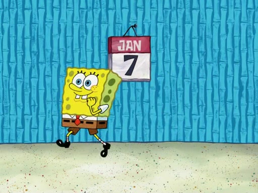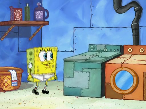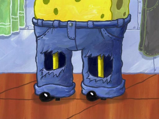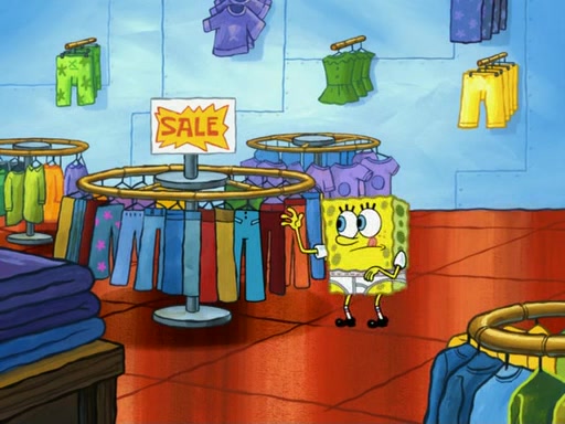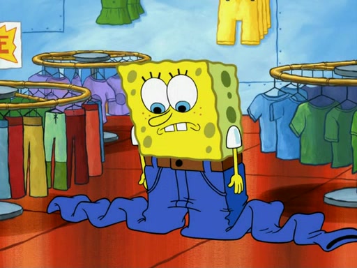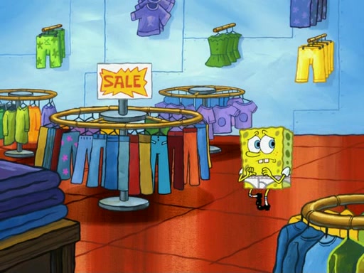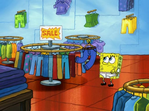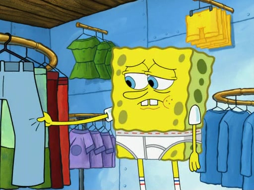 This episode starts with the narrator talking about a tragedy, and showing an over-water hurricane, and then showing footage of the 1940 collapse of Tacoma Narrows Bridge (Galloping Gertie), with a guy running from the bridge before its collapse. After that, it goes to a rainy day at SpongeBob's pineapple where SpongeBob is inside with the calendar on January 10. The narrator said that the tragedy happened three days ago; it then flips it back to January 7. SpongeBob is then doing chores, including laundry, with his pants and Gary's shell. Then Patrick calls SpongeBob to show that he can make funny sounds with his tongue for a very long time; SpongeBob asks Patrick if it can wait, but Patrick refuses, so he continues on. Meanwhile, Gary gets his shell out of the laundry. By the time SpongeBob gets to the laundry machine, his pants had shrunk. He goes to the store to buy new ones, but Patty Rechid declares that there will not be any SquarePants for months. He then looks through the pants, he tries many pairs but was not interested, but he then finds the pants he usually wears, except they are round, not square.