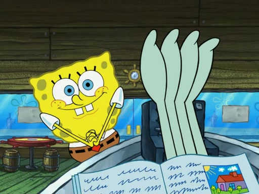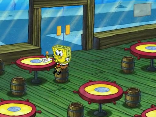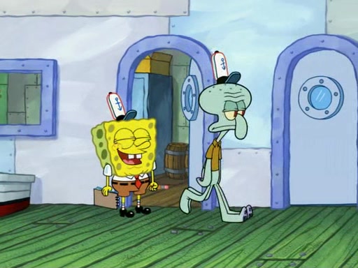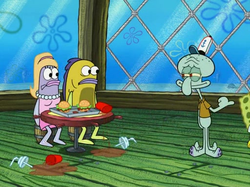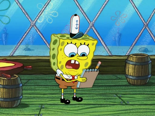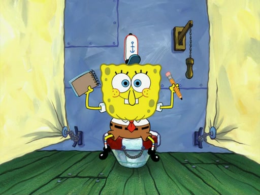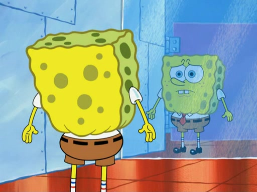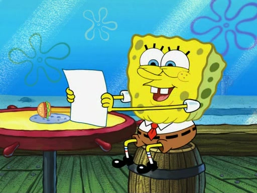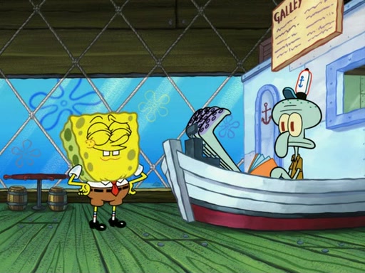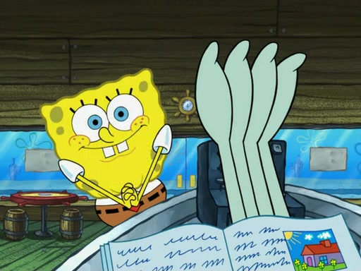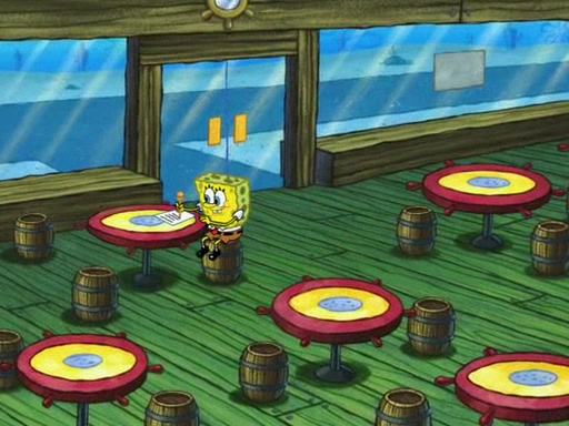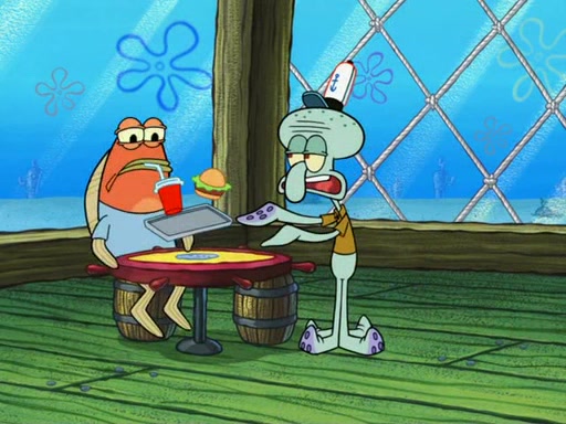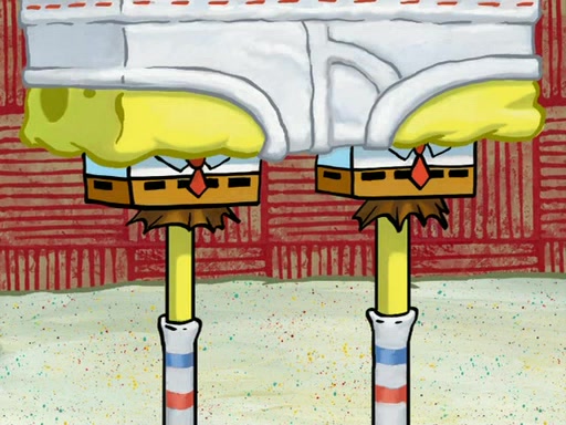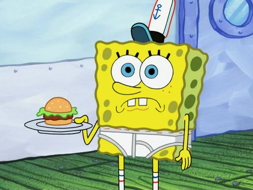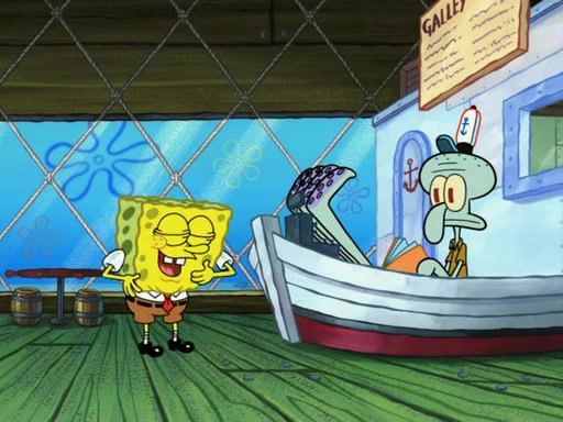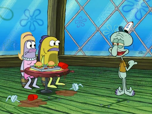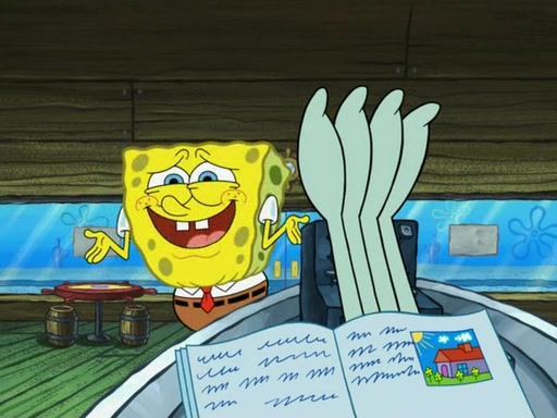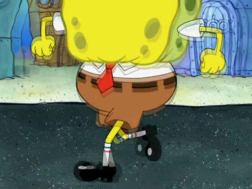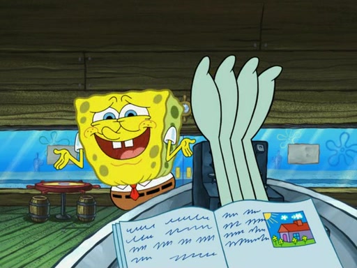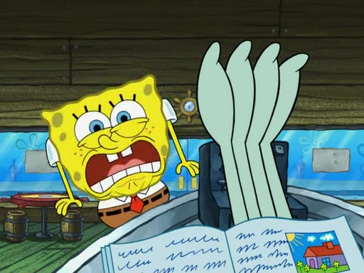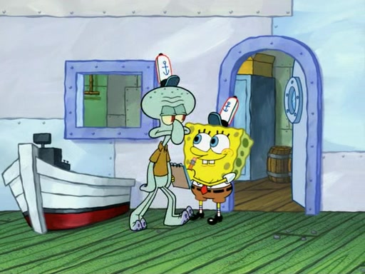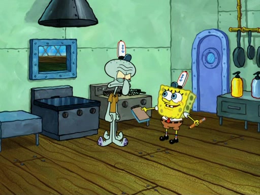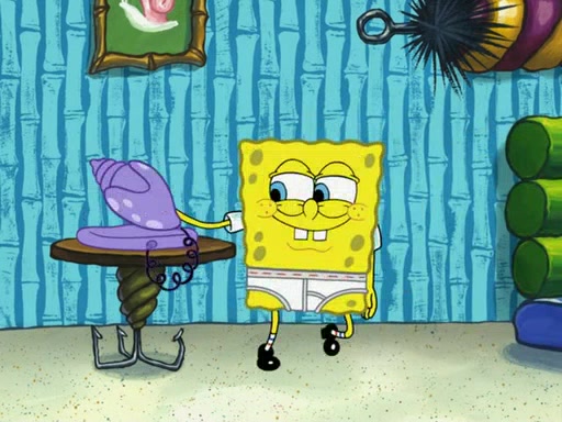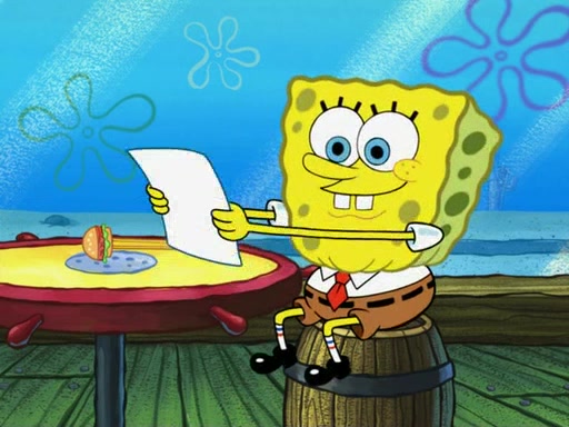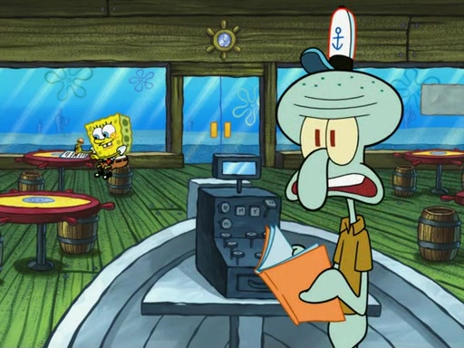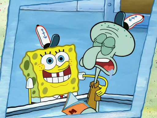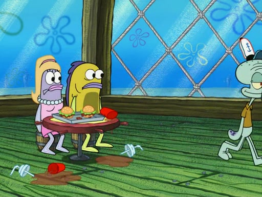 SpongeBob gets his job at the Krusty Krab again, and looks to Squidward for pointers. Squidward gives SpongeBob his bad routine of being a Krusty Krab employee (including not throwing the trash in the dumpster, being rude to the customers, nasally laughing like Squidward, burning Krabby Patties, taking too long in the bathroom, and even sleeping on the job). Mr. Krabs realizes what is going on, and he does not joke around when he sees SpongeBob. SpongeBob then tells Mr. Krabs that he cannot be SpongeBob SquarePants again, as he has round pants. Mr. Krabs then suggests that he just remove them if that was the case. Then, SpongeBob takes off his pants, but Sandy calls him "SpongeBob UnderPants," and the episode ends with SpongeBob looking at his underwear and screaming with embarrassment.