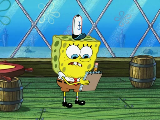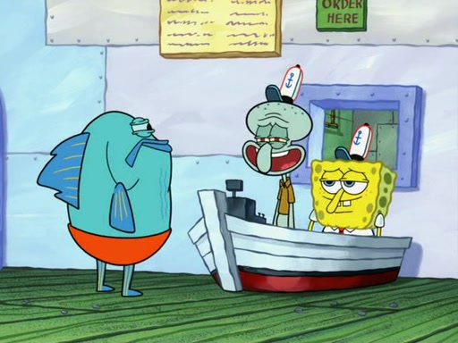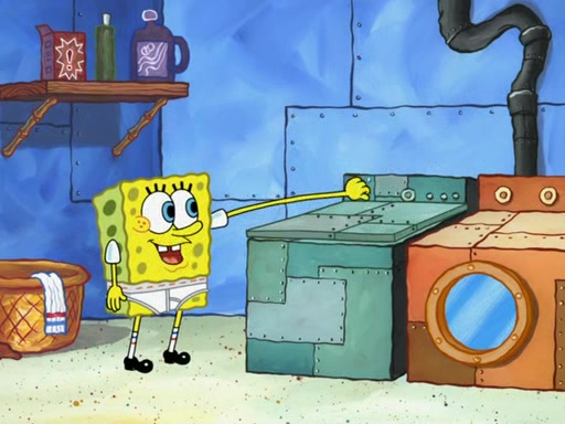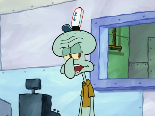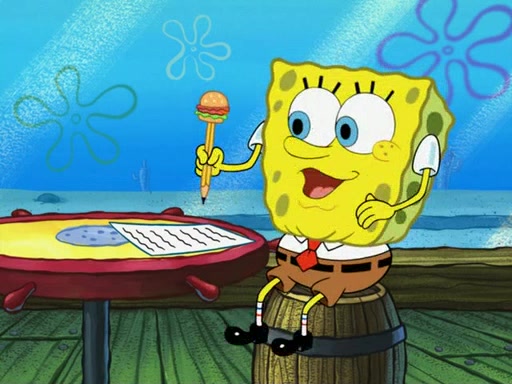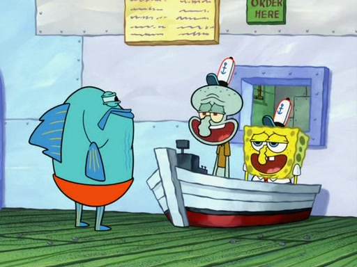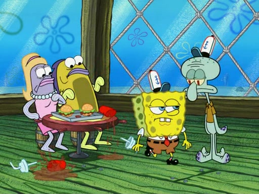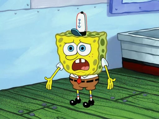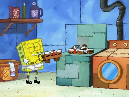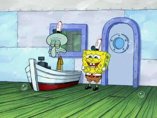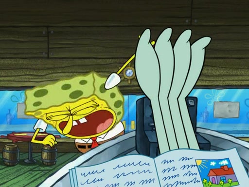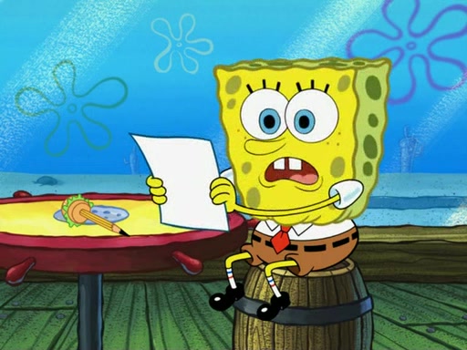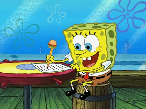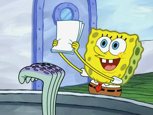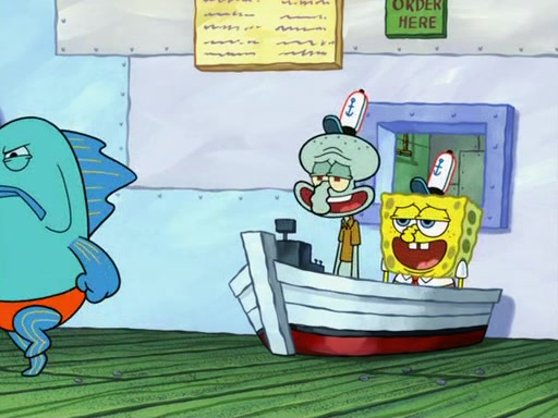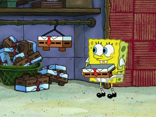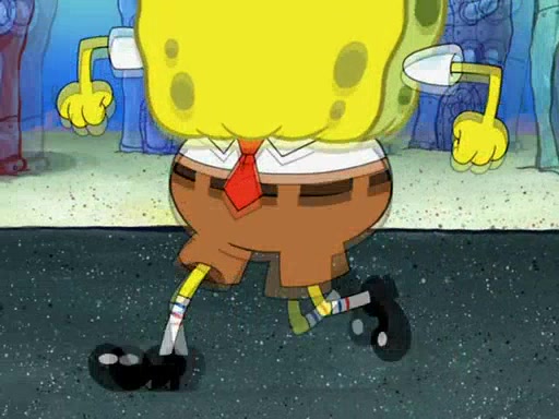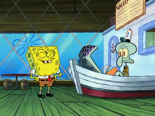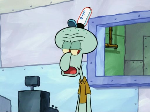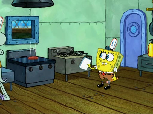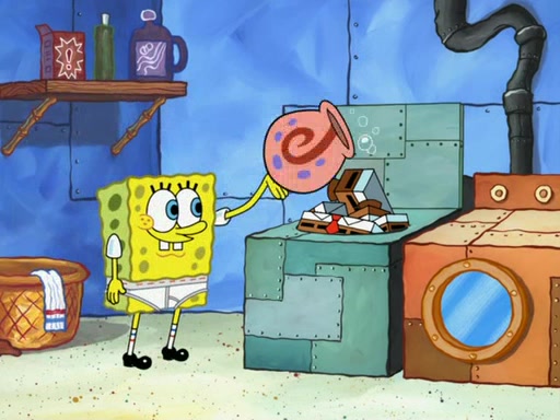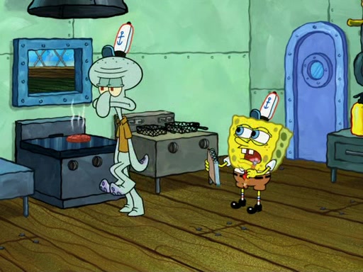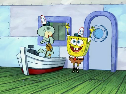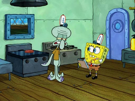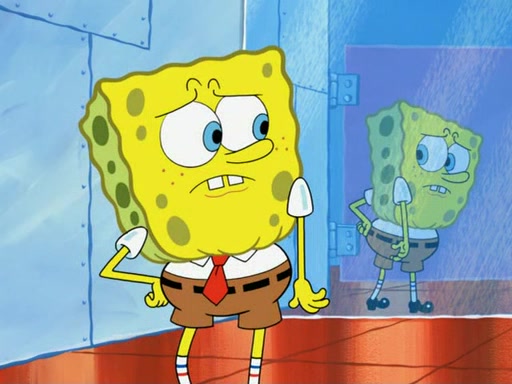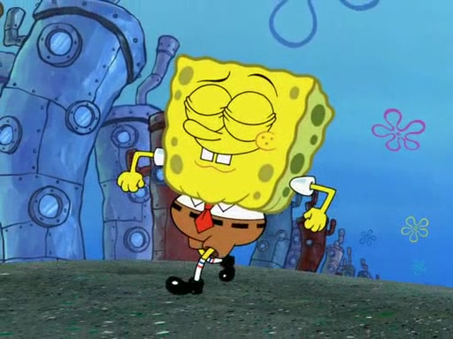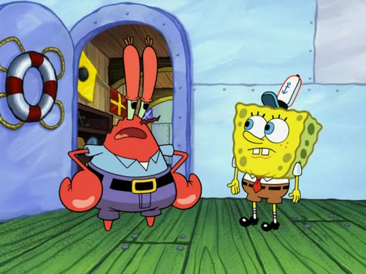 SpongeBob gets his job at the Krusty Krab again, and looks to Squidward for pointers. Squidward gives SpongeBob his bad routine of being a Krusty Krab employee (including not throwing the trash in the dumpster, being rude to the customers, nasally laughing like Squidward, burning Krabby Patties, taking too long in the bathroom, and even sleeping on the job). Mr. Krabs realizes what is going on, and he does not joke around when he sees SpongeBob. SpongeBob then tells Mr. Krabs that he cannot be SpongeBob SquarePants again, as he has round pants. Mr. Krabs then suggests that he just remove them if that was the case. Then, SpongeBob takes off his pants, but Sandy calls him "SpongeBob UnderPants," and the episode ends with SpongeBob looking at his underwear and screaming with embarrassment.
