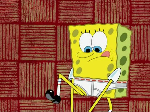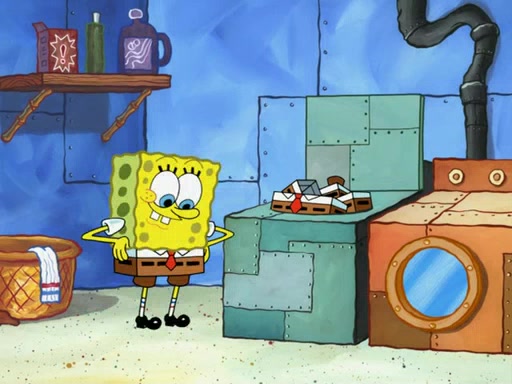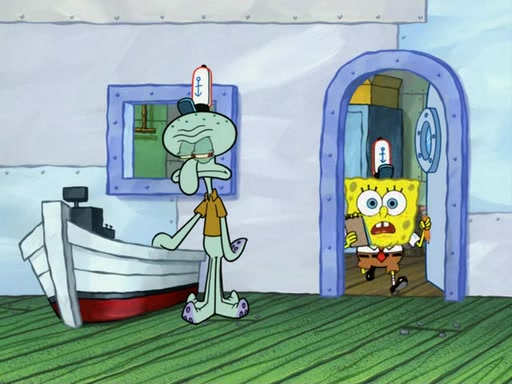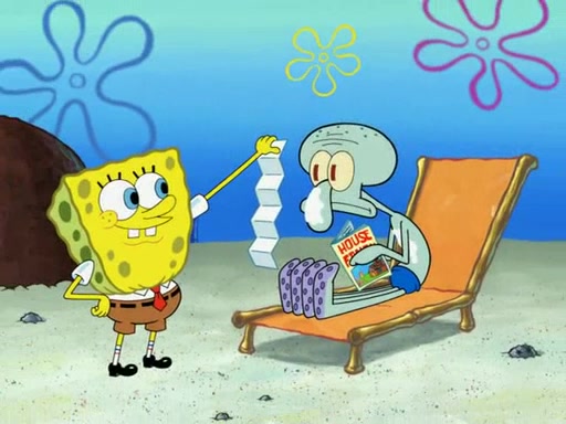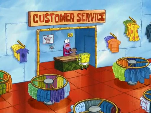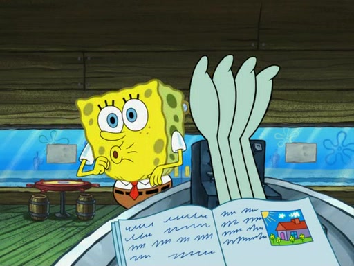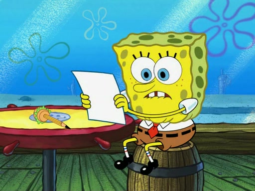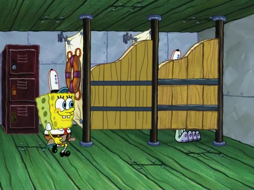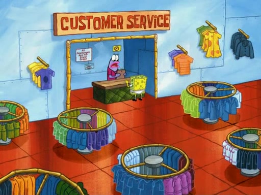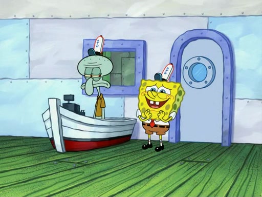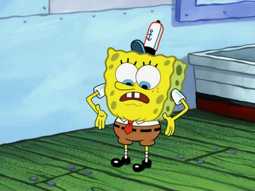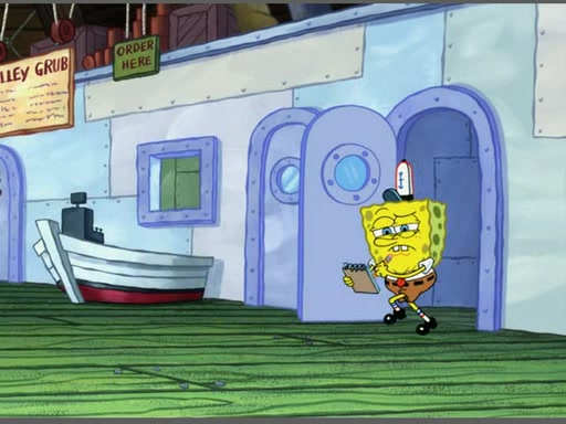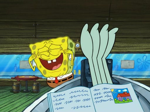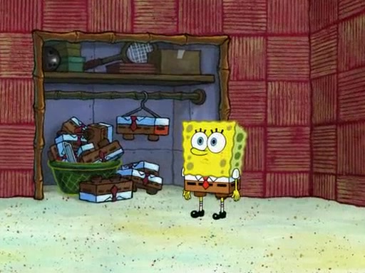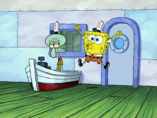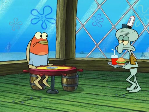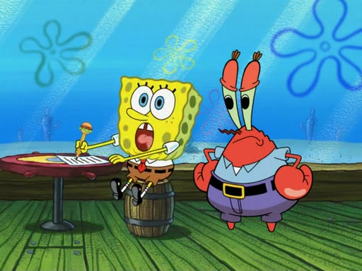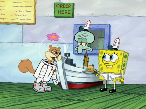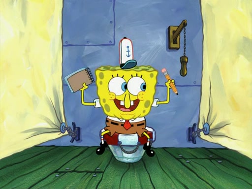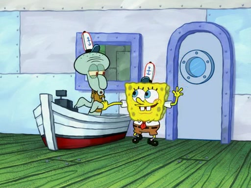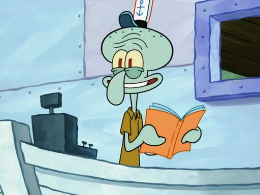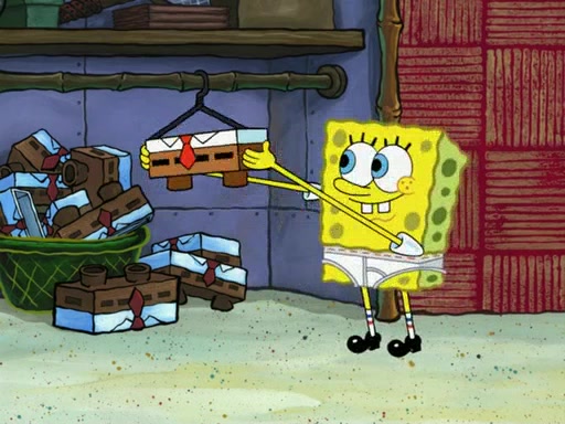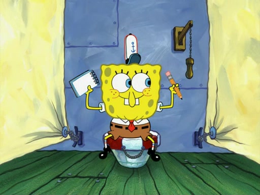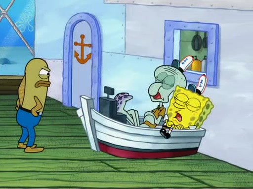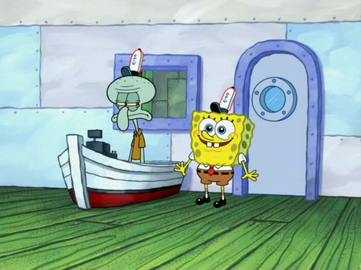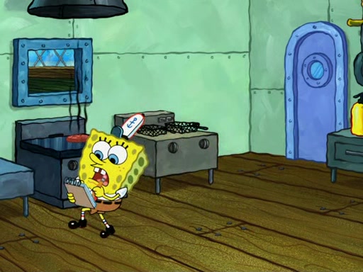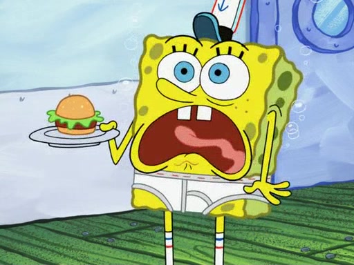 SpongeBob gets his job at the Krusty Krab again, and looks to Squidward for pointers. Squidward gives SpongeBob his bad routine of being a Krusty Krab employee (including not throwing the trash in the dumpster, being rude to the customers, nasally laughing like Squidward, burning Krabby Patties, taking too long in the bathroom, and even sleeping on the job). Mr. Krabs realizes what is going on, and he does not joke around when he sees SpongeBob. SpongeBob then tells Mr. Krabs that he cannot be SpongeBob SquarePants again, as he has round pants. Mr. Krabs then suggests that he just remove them if that was the case. Then, SpongeBob takes off his pants, but Sandy calls him "SpongeBob UnderPants," and the episode ends with SpongeBob looking at his underwear and screaming with embarrassment.