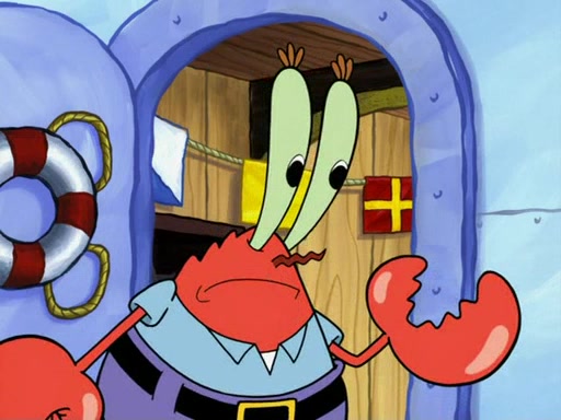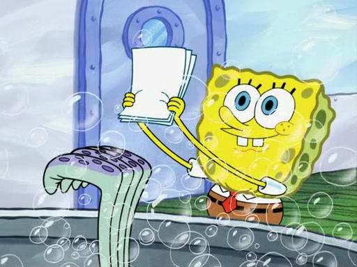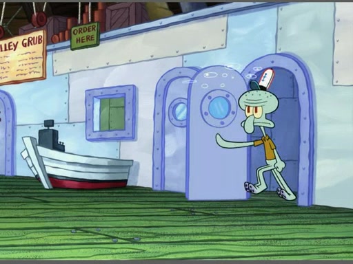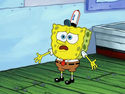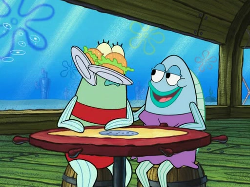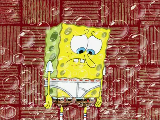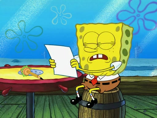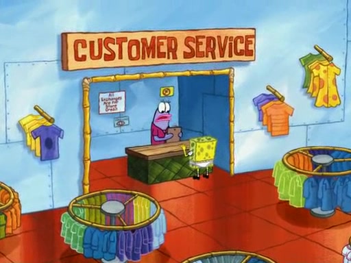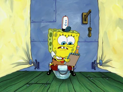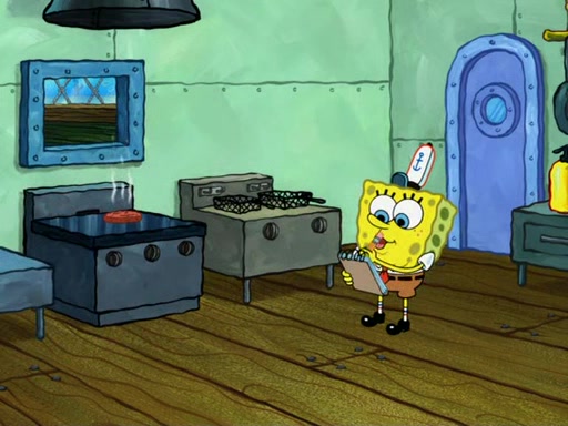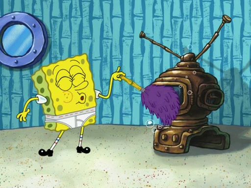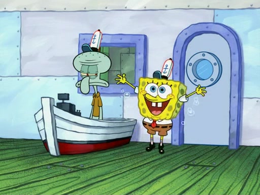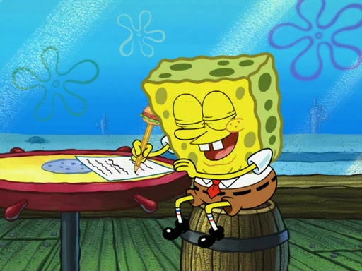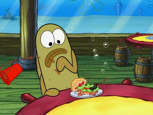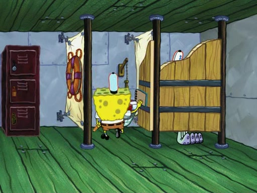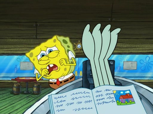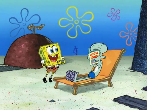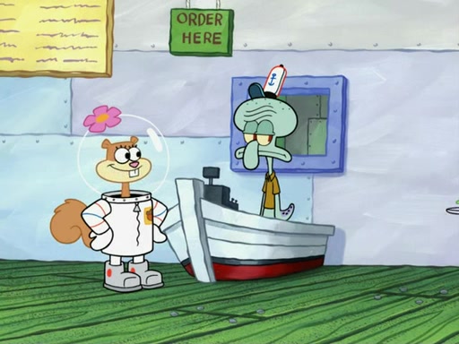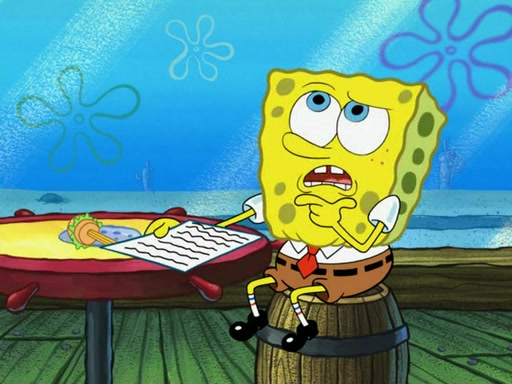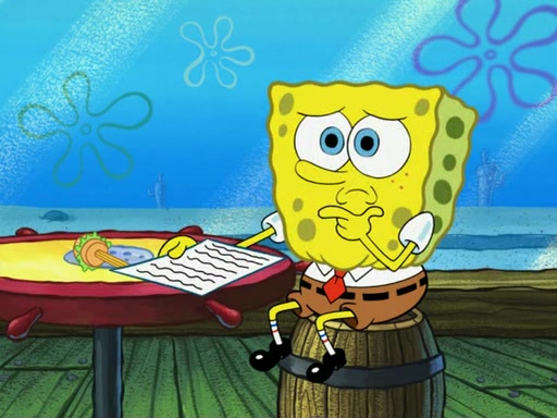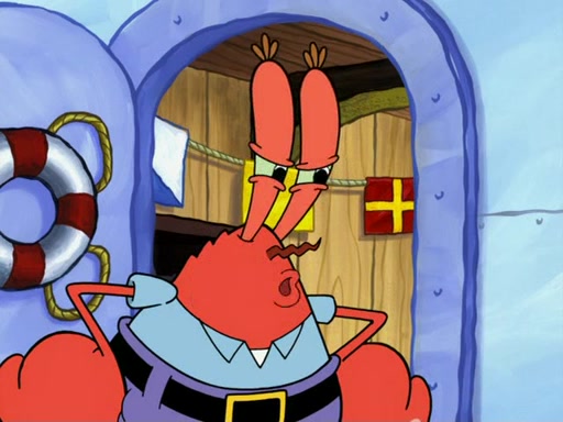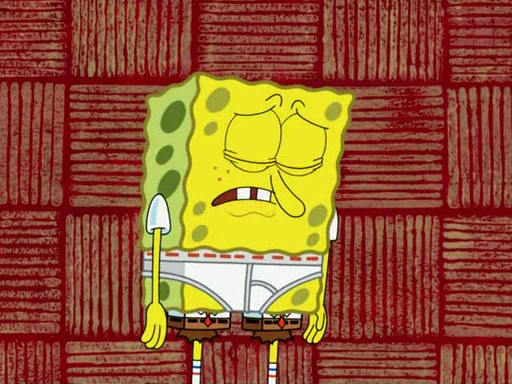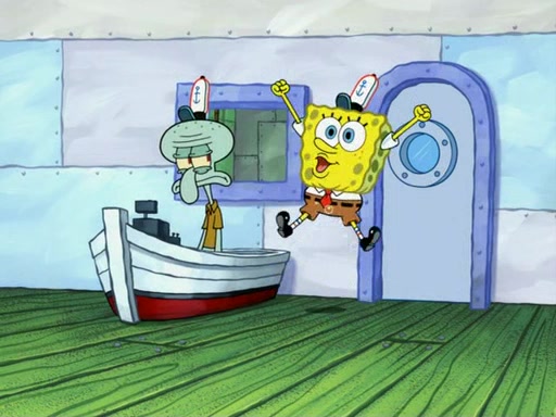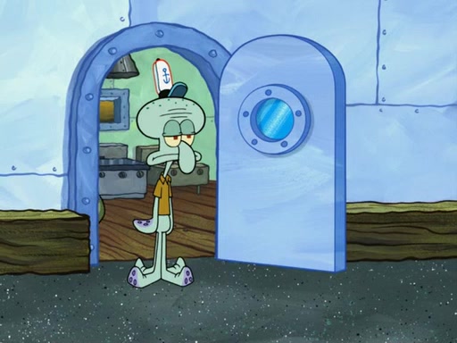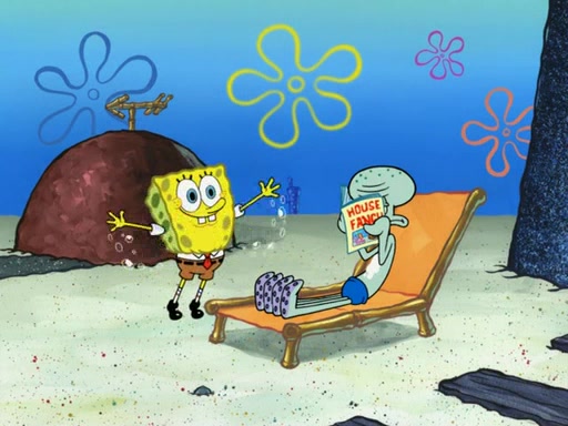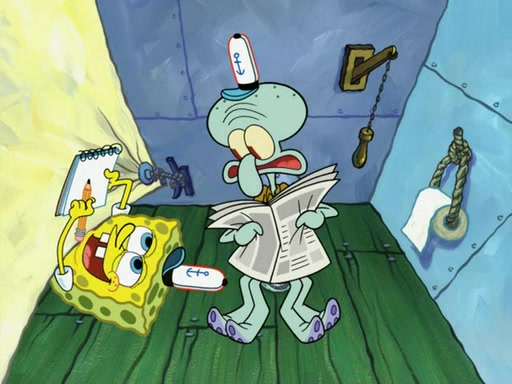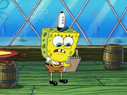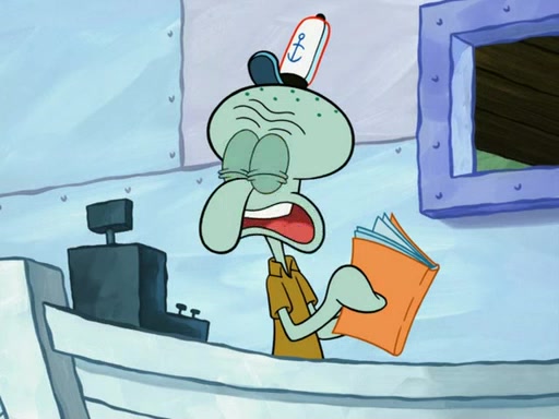 SpongeBob gets his job at the Krusty Krab again, and looks to Squidward for pointers. Squidward gives SpongeBob his bad routine of being a Krusty Krab employee (including not throwing the trash in the dumpster, being rude to the customers, nasally laughing like Squidward, burning Krabby Patties, taking too long in the bathroom, and even sleeping on the job). Mr. Krabs realizes what is going on, and he does not joke around when he sees SpongeBob. SpongeBob then tells Mr. Krabs that he cannot be SpongeBob SquarePants again, as he has round pants. Mr. Krabs then suggests that he just remove them if that was the case. Then, SpongeBob takes off his pants, but Sandy calls him "SpongeBob UnderPants," and the episode ends with SpongeBob looking at his underwear and screaming with embarrassment.