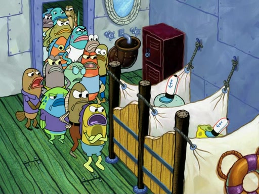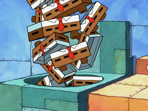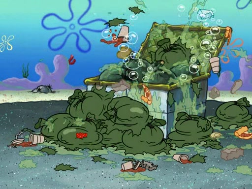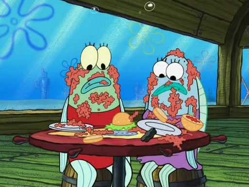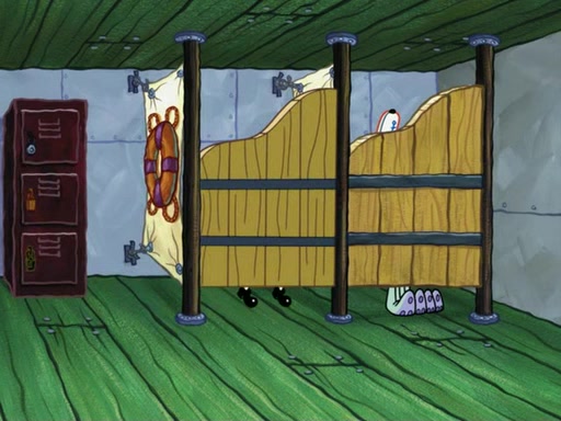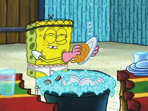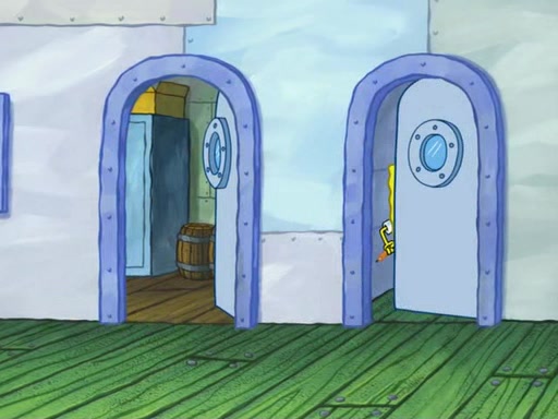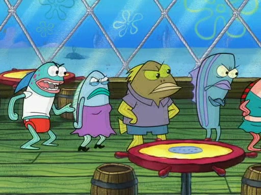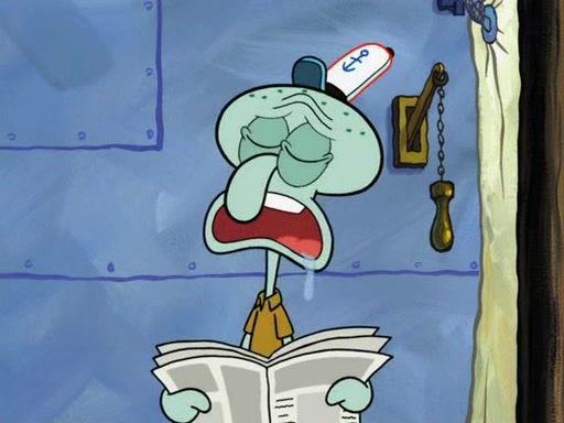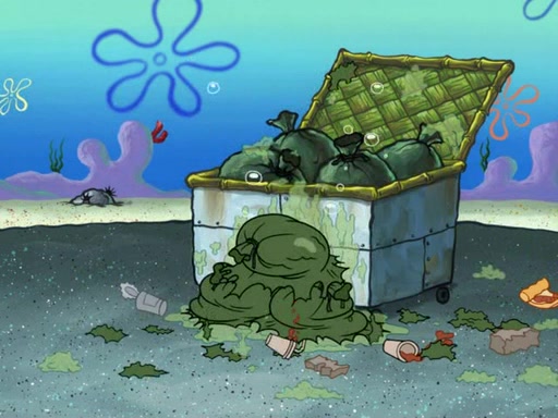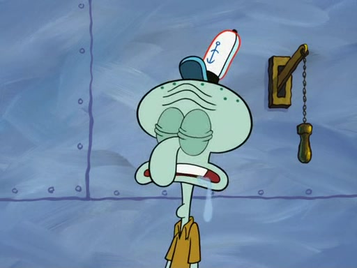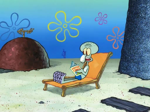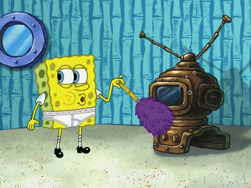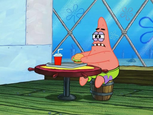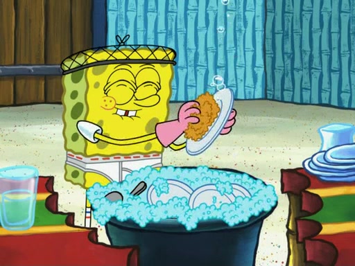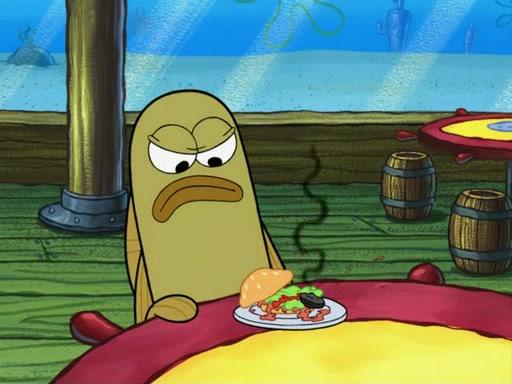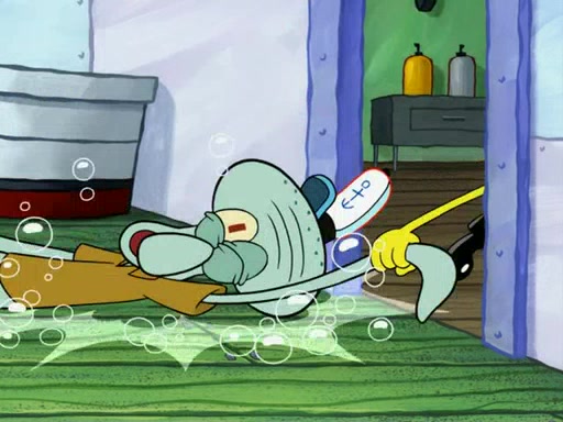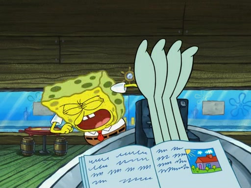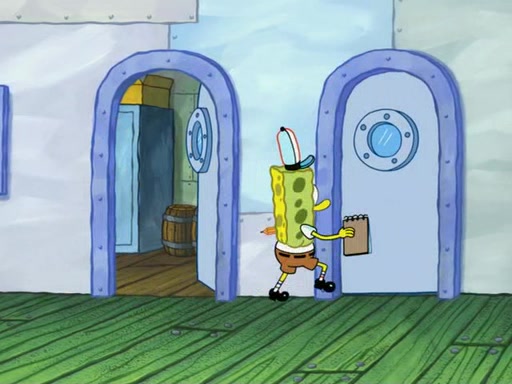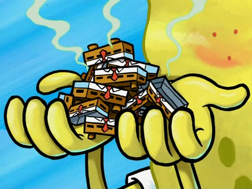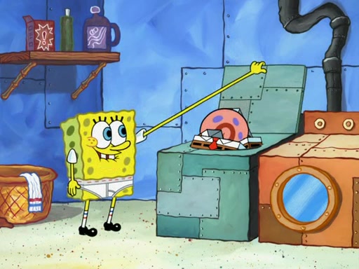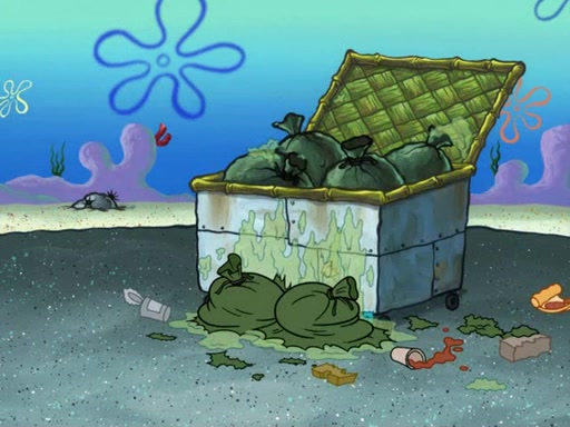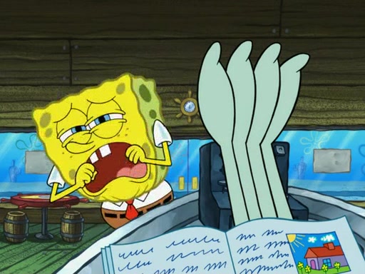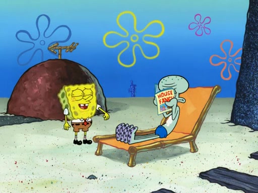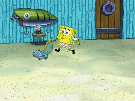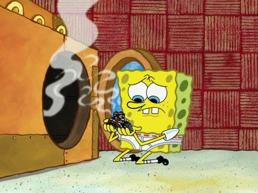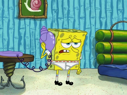 SpongeBob gets his job at the Krusty Krab again, and looks to Squidward for pointers. Squidward gives SpongeBob his bad routine of being a Krusty Krab employee (including not throwing the trash in the dumpster, being rude to the customers, nasally laughing like Squidward, burning Krabby Patties, taking too long in the bathroom, and even sleeping on the job). Mr. Krabs realizes what is going on, and he does not joke around when he sees SpongeBob. SpongeBob then tells Mr. Krabs that he cannot be SpongeBob SquarePants again, as he has round pants. Mr. Krabs then suggests that he just remove them if that was the case. Then, SpongeBob takes off his pants, but Sandy calls him "SpongeBob UnderPants," and the episode ends with SpongeBob looking at his underwear and screaming with embarrassment.