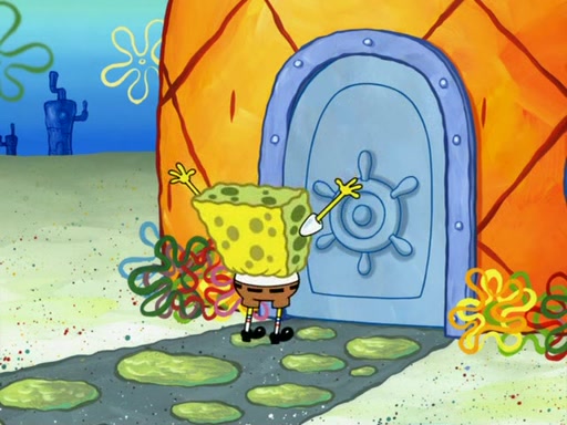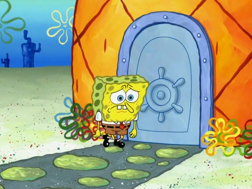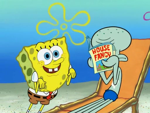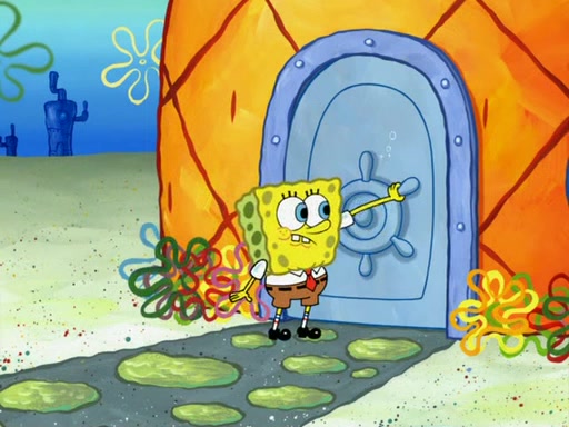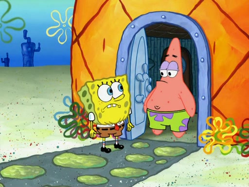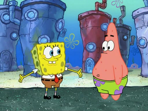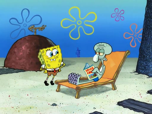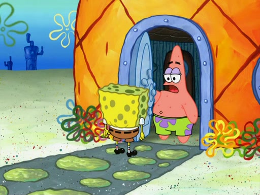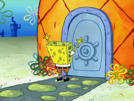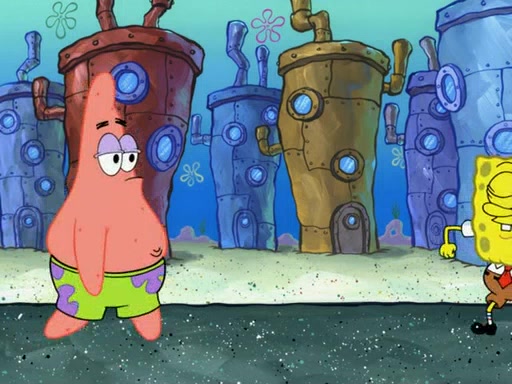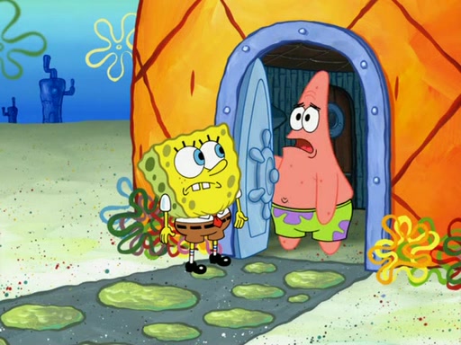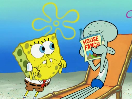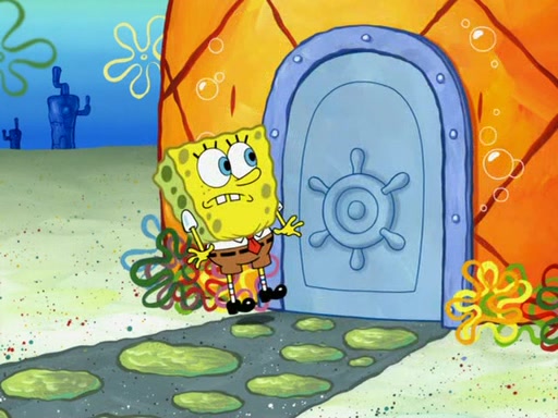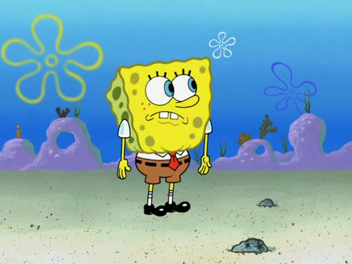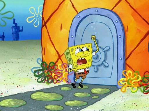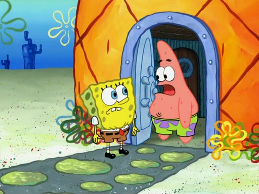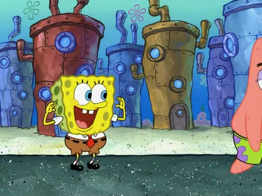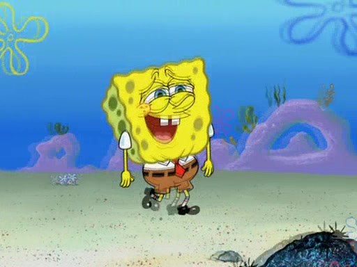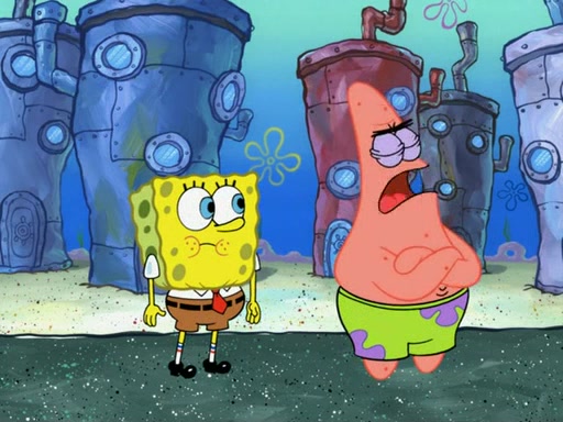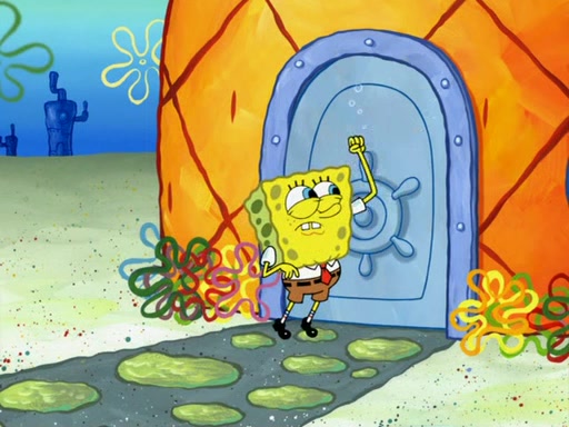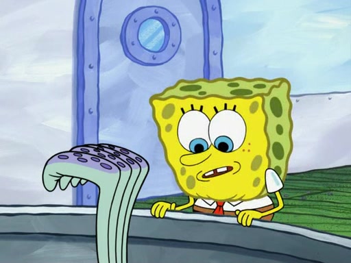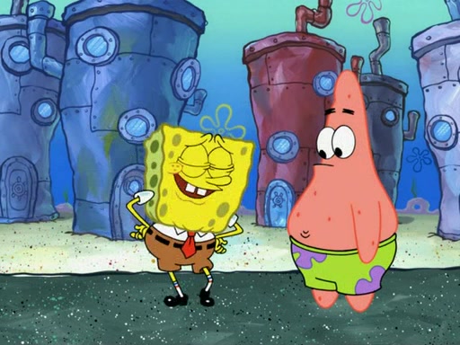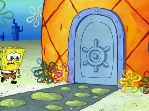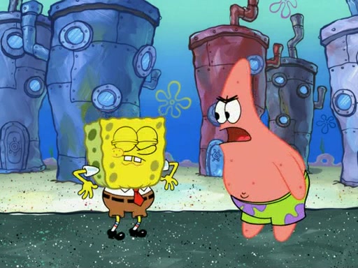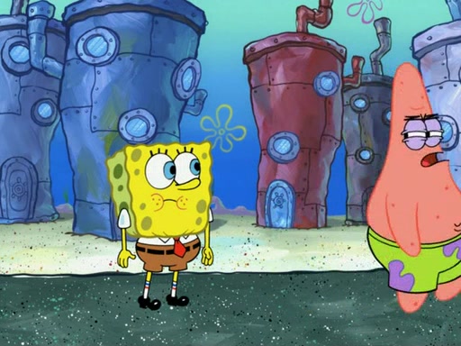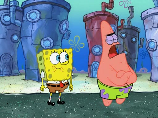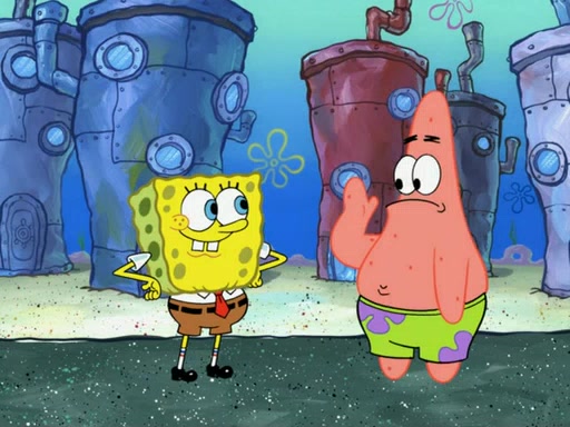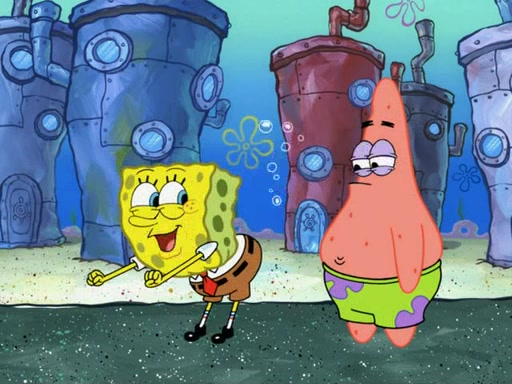 While walking with his round pants, SpongeBob bumps into Patrick, but Patrick does not recognize him. He bumps into Sandy, who pretends that she does not know SpongeBob saying that they must call him SpongeBob FancyPants. Then, SpongeBob passes Squidward's house, and Squidward pretends not to recognize SpongeBob in order to get him to leave him alone. Being gullible, SpongeBob really thinks that Patrick, Sandy, and Squidward do not know him, so he starts himself over, naming himself SpongeBob RoundPants.