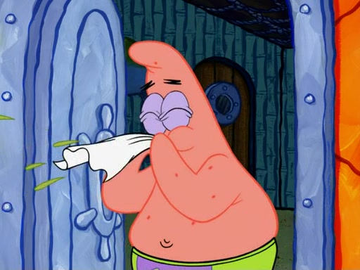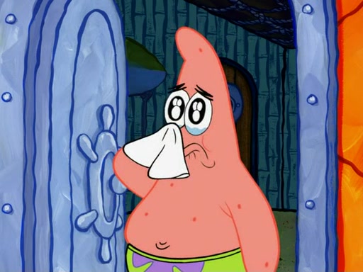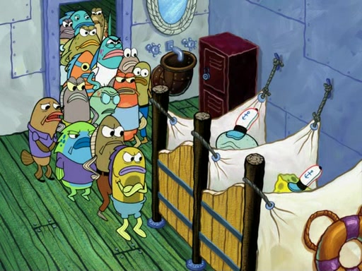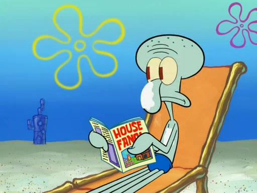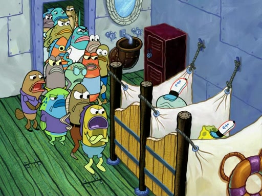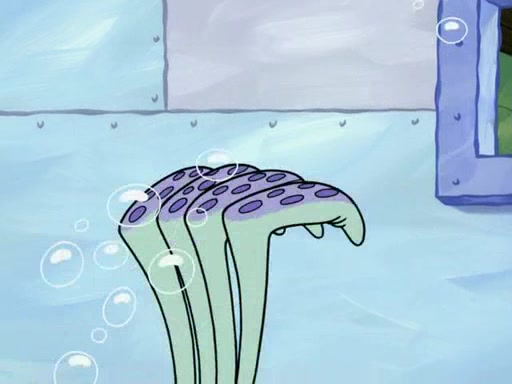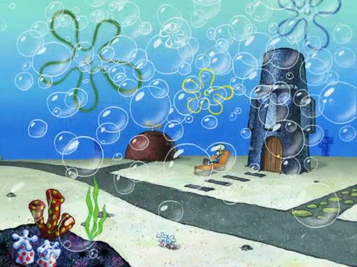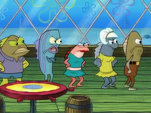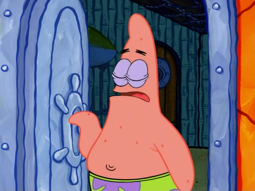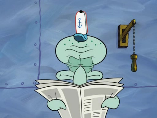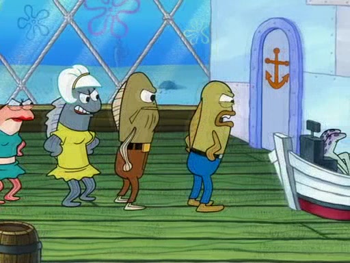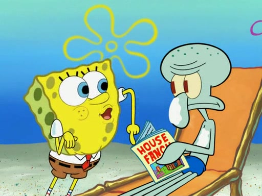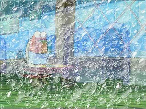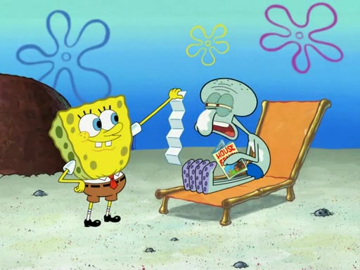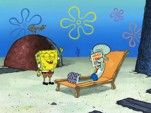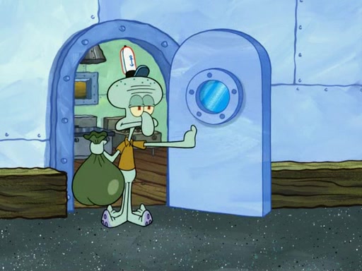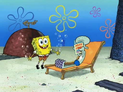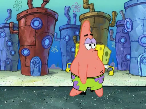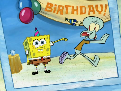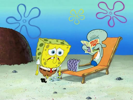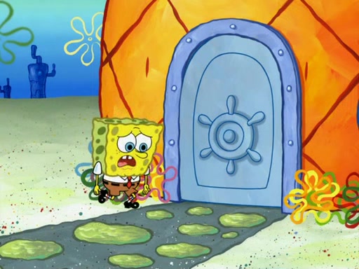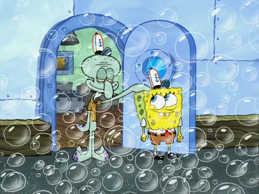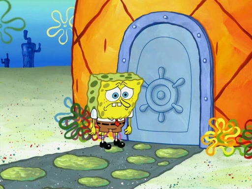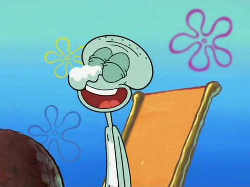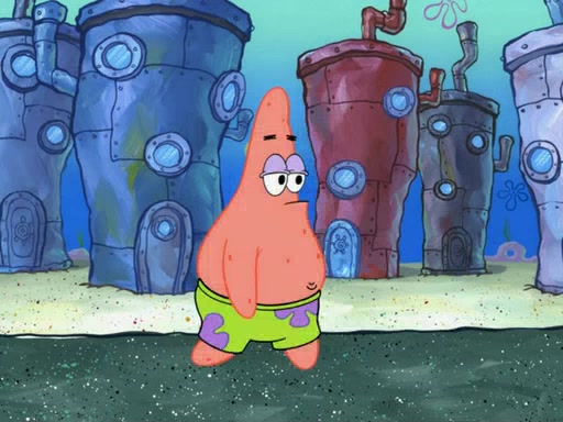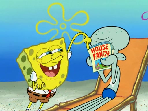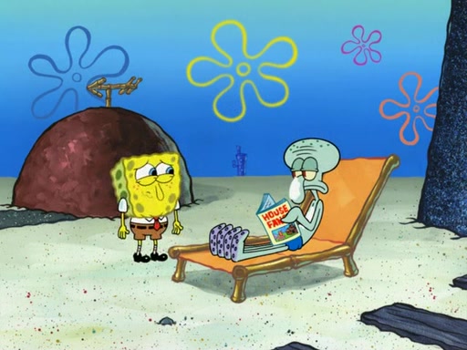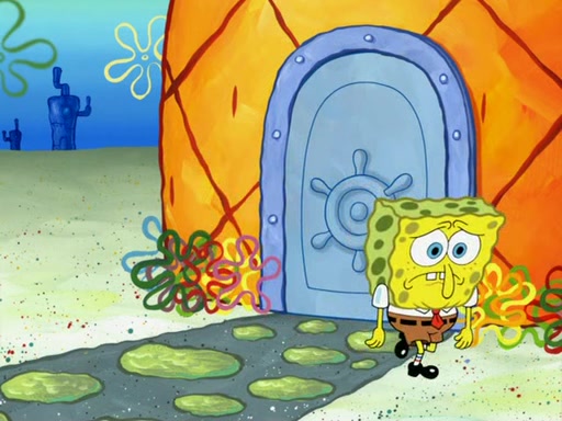 While walking with his round pants, SpongeBob bumps into Patrick, but Patrick does not recognize him. He bumps into Sandy, who pretends that she does not know SpongeBob saying that they must call him SpongeBob FancyPants. Then, SpongeBob passes Squidward's house, and Squidward pretends not to recognize SpongeBob in order to get him to leave him alone. Being gullible, SpongeBob really thinks that Patrick, Sandy, and Squidward do not know him, so he starts himself over, naming himself SpongeBob RoundPants.