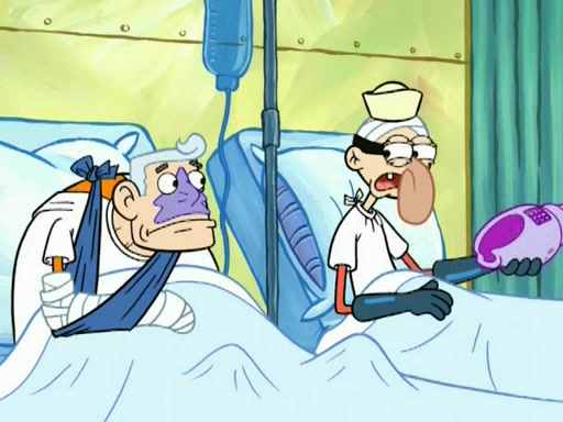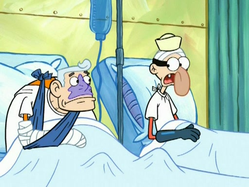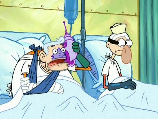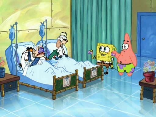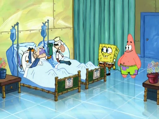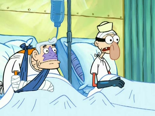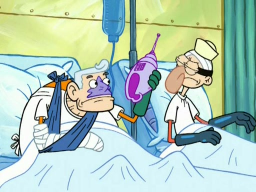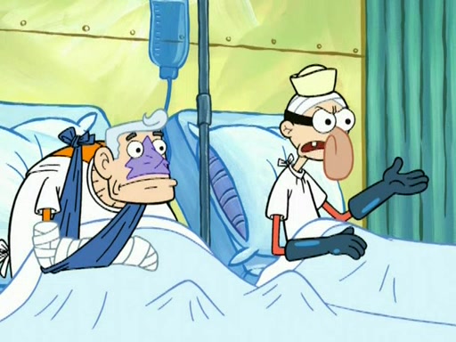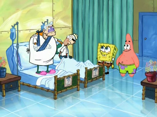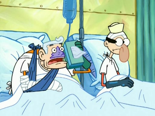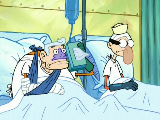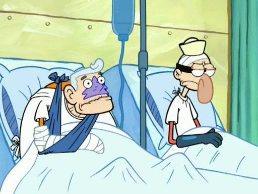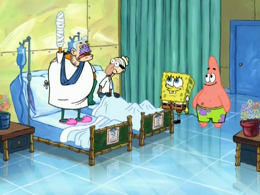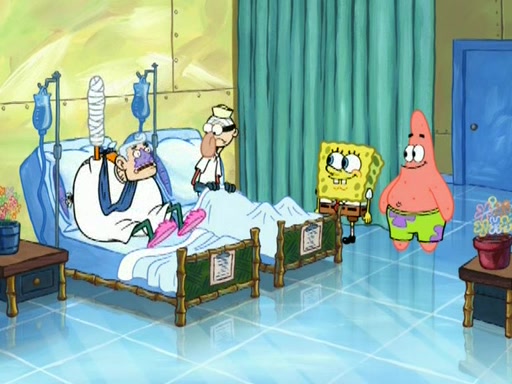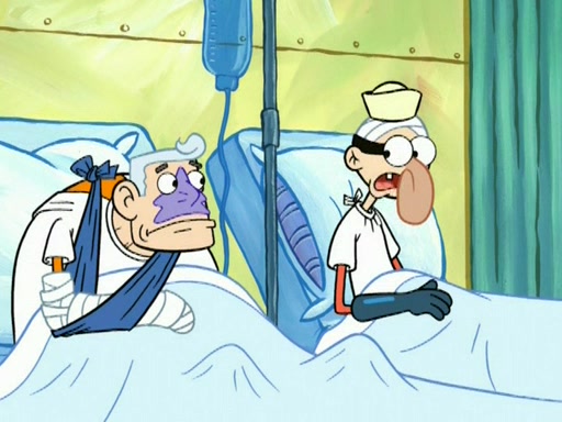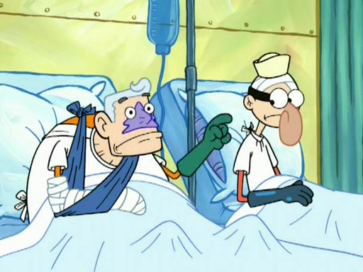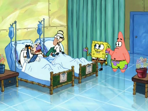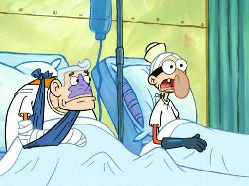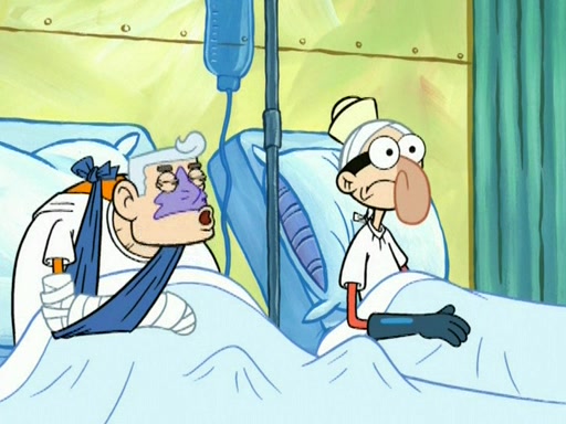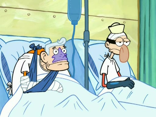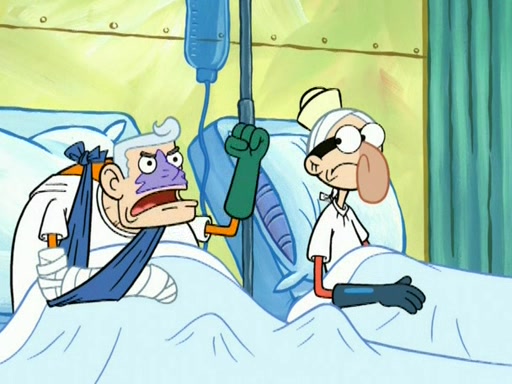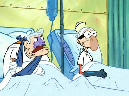 Mermaid Man and Barnacle Boy are watching TV in Shady Shoals, when SpongeBob and Patrick suddenly appear and wake them up. Mermaid Man attacks SpongeBob with the "Mermerang," thinking he is a supervillain.In the resulting incident, Mermaid Man and Barnacle Boy are injured and sent to the hospital.