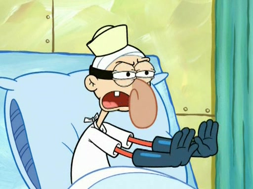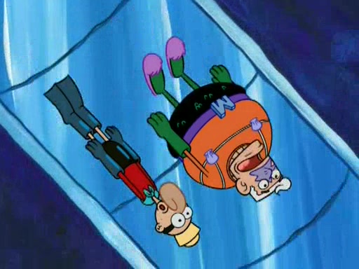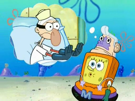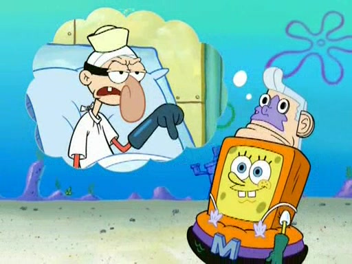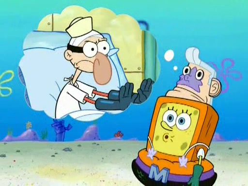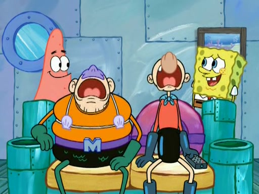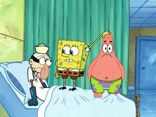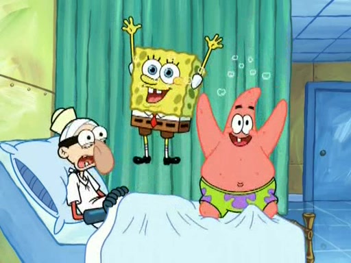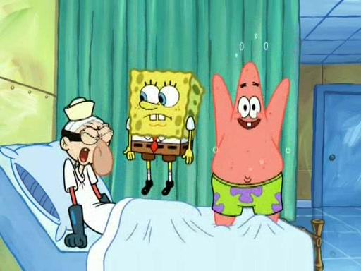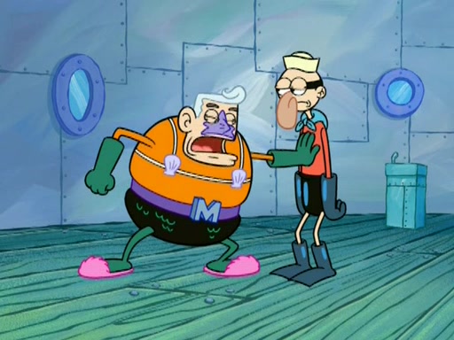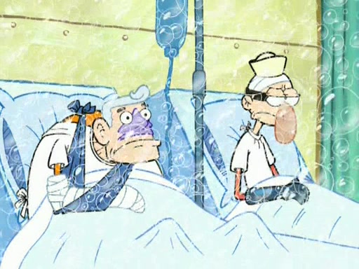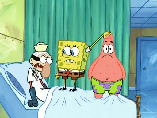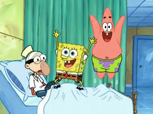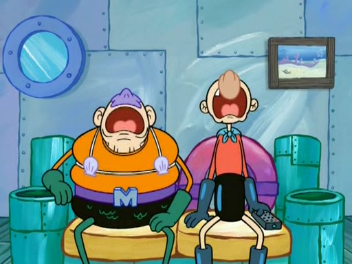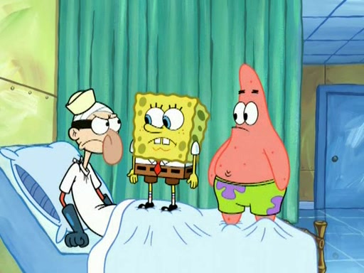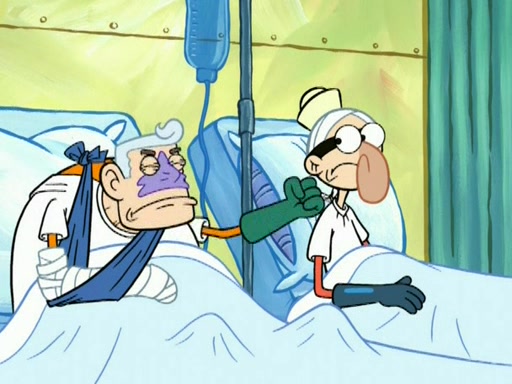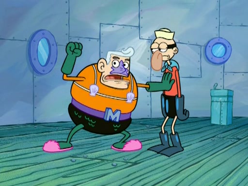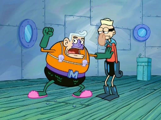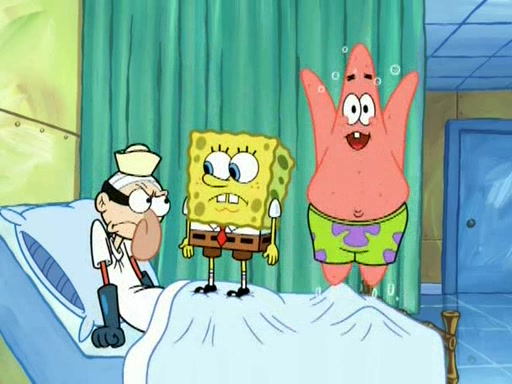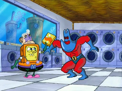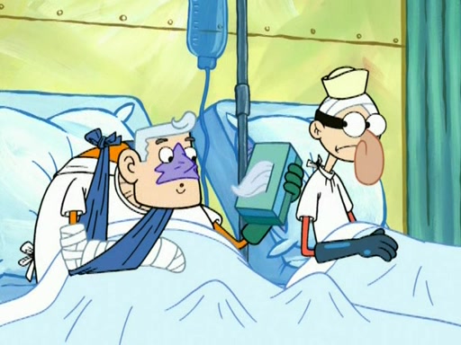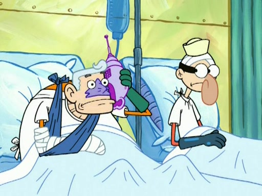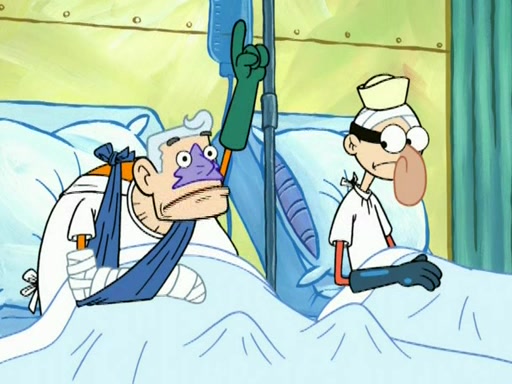 Mermaid Man and Barnacle Boy are watching TV in Shady Shoals, when SpongeBob and Patrick suddenly appear and wake them up. Mermaid Man attacks SpongeBob with the "Mermerang," thinking he is a supervillain.In the resulting incident, Mermaid Man and Barnacle Boy are injured and sent to the hospital.