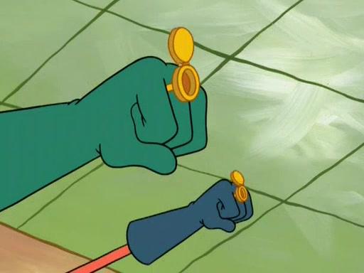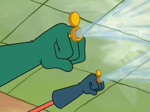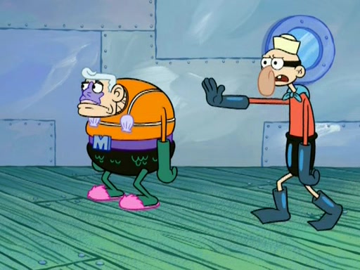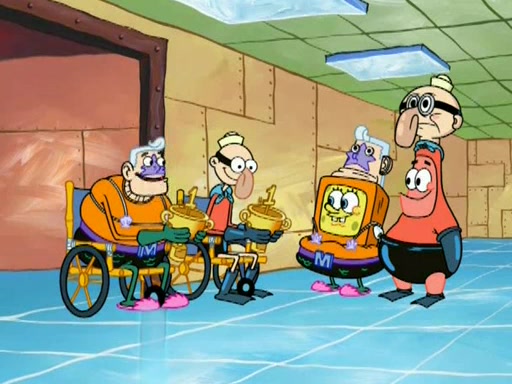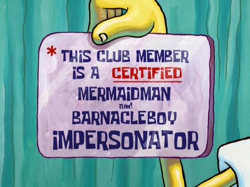 While SpongeBob and Patrick go to the hospital to visit them, Mermaid Man and Barnacle Boy receive a call from the police commissioner, telling them that they will be celebrity guest contestants at the Bikini Bottom shuffleboarding competition. They are unable to attend in their condition, but SpongeBob then says both he and Patrick are certified Mermaid Man and Barnacle Boy impersonators. They are given rings which produce rubber Mermaid Man and Barnacle Boy costumes, and are told to immediately return them after the tournament.