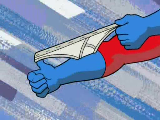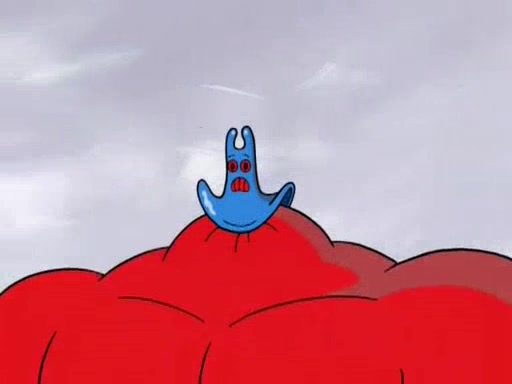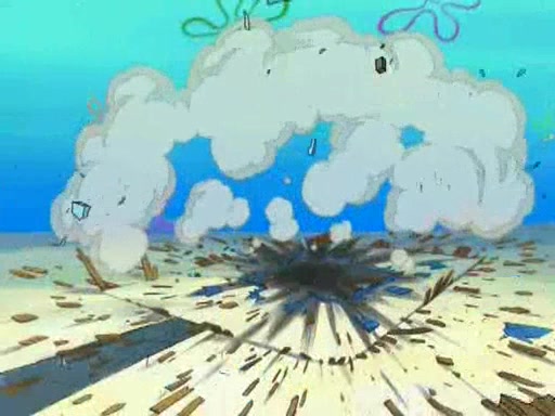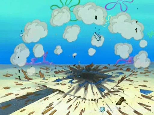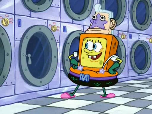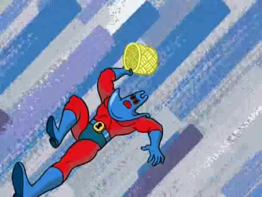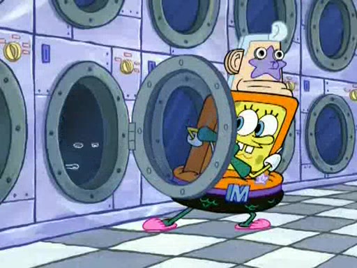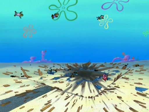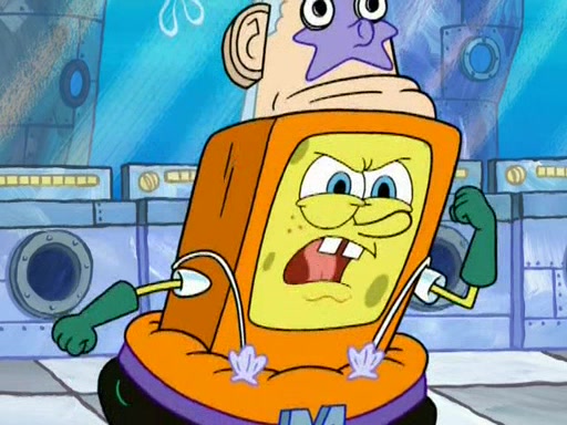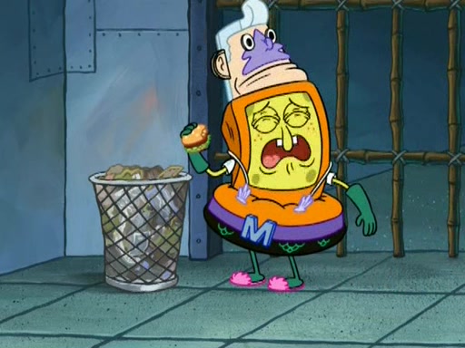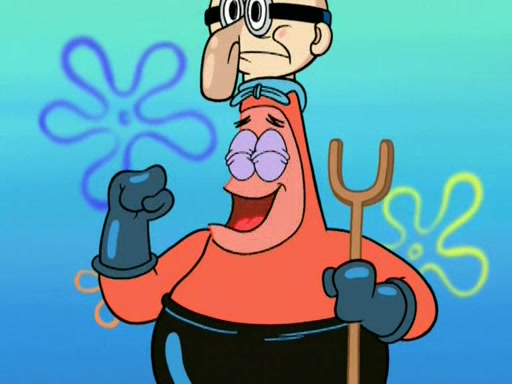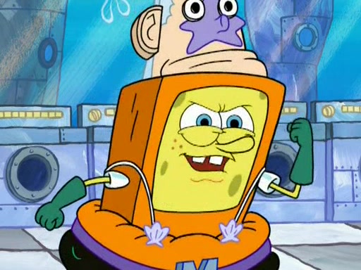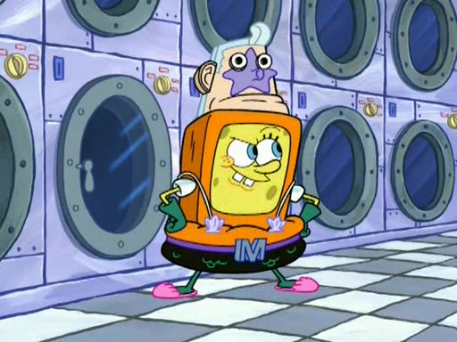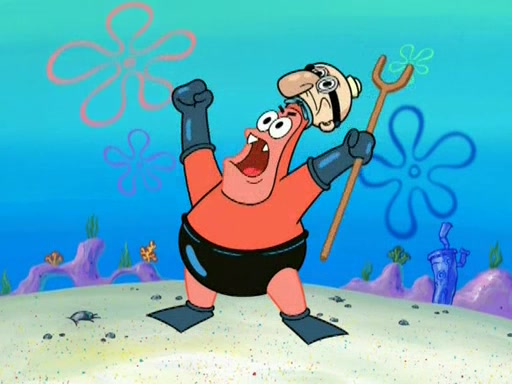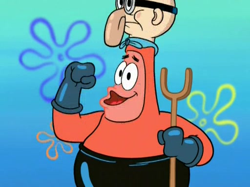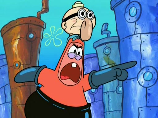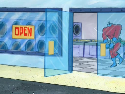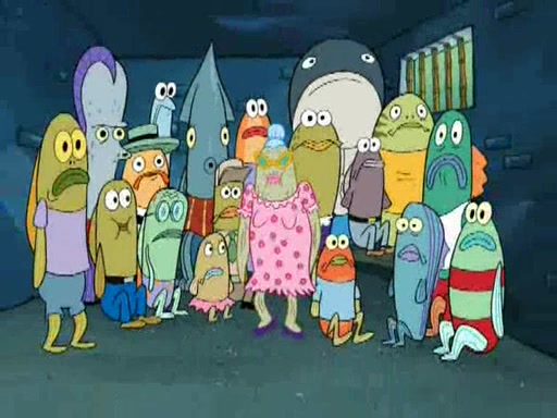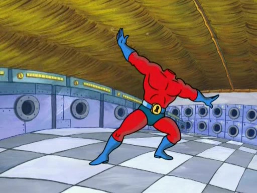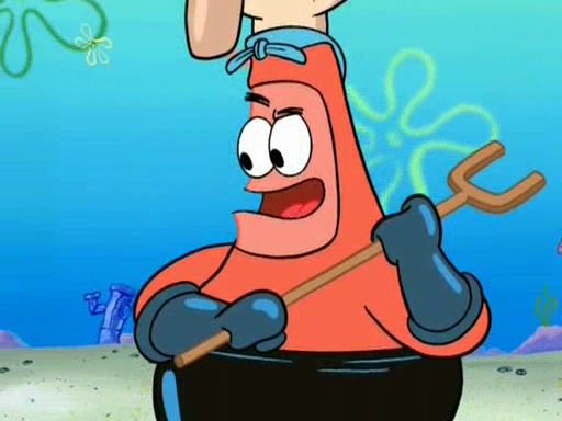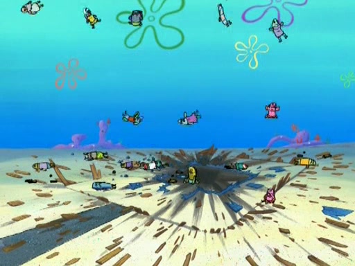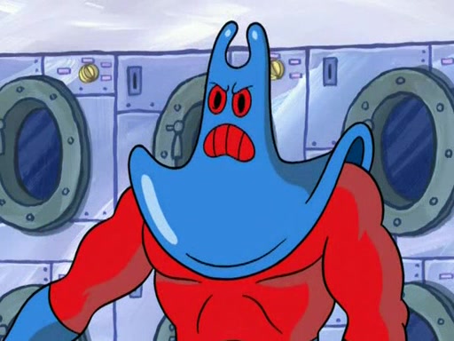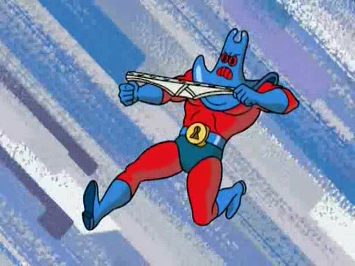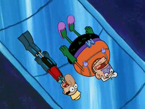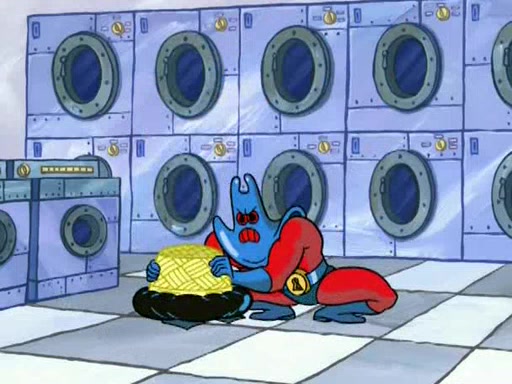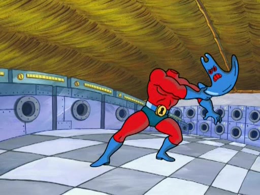 After they win the shuffleboarding contest, they go to return the costumes, but Patrick convinces SpongeBob that if they don't save the town from evil, no one will. They begin throwing everyone they see in jail for completely unjustified reasons (including throwing away a Krabby Patty, chewing gum too loudly, and being "too old"). Eventually, they have arrested nearly everyone in Bikini Bottom, and decide to return the costumes. However, they see Man Ray entering a laundromat, and despite the fact that he is doing absolutely nothing wrong, follow him in and arrest him after a fight scene, involving throwing Man Ray's head in the dryer, causing it to shrink. The jail is now so full of people that it literally explodes, causing people to fall down from the sky.