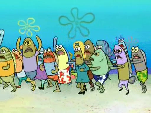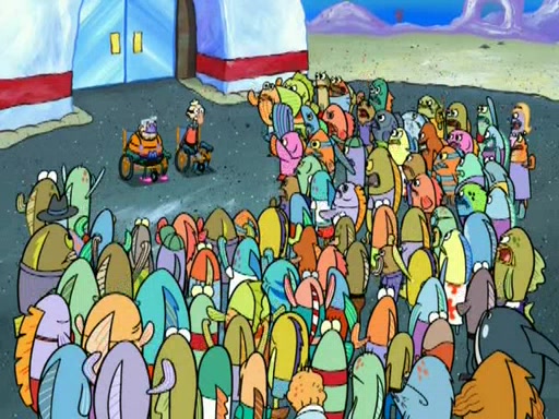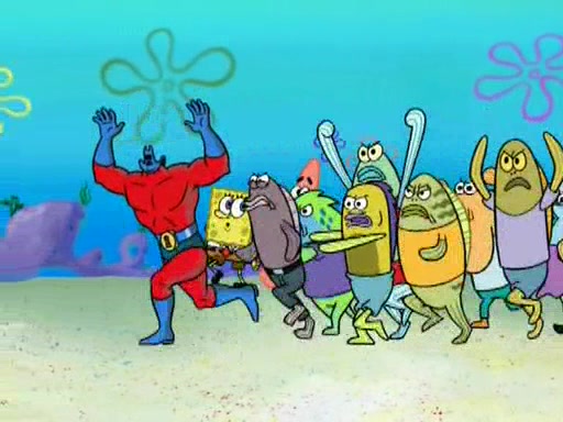 SpongeBob and Patrick return the costumes, and Mermaid Man and Barnacle Boy leave the hospital, but are confronted by an angry mob of the people SpongeBob and Patrick wrongfully arrested, who start chasing them and SpongeBob and Patrick confuse them for fans.