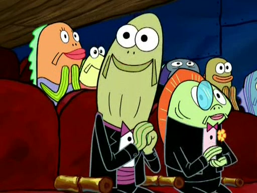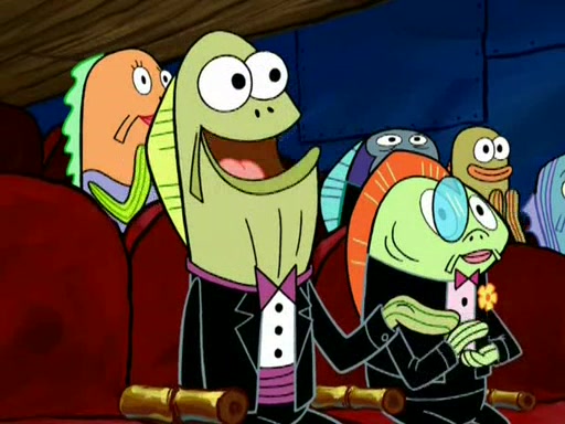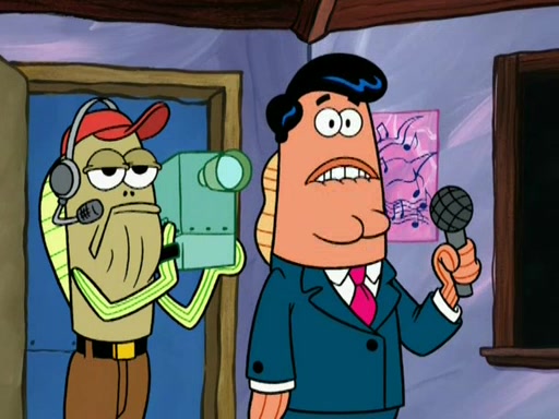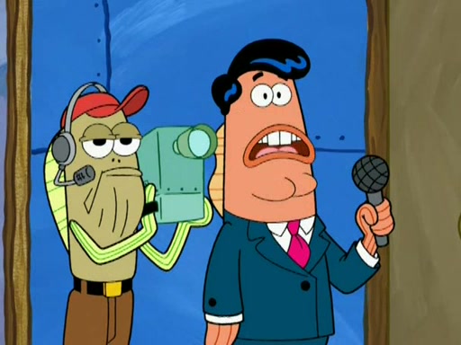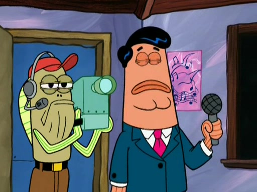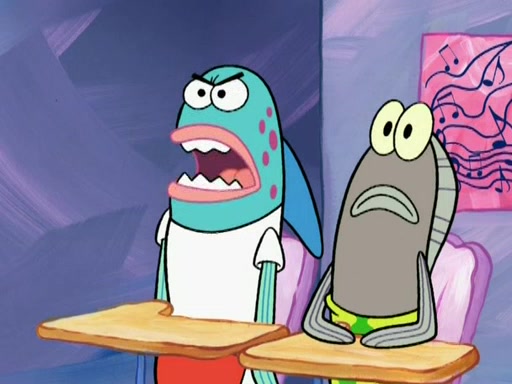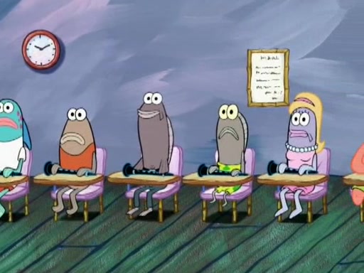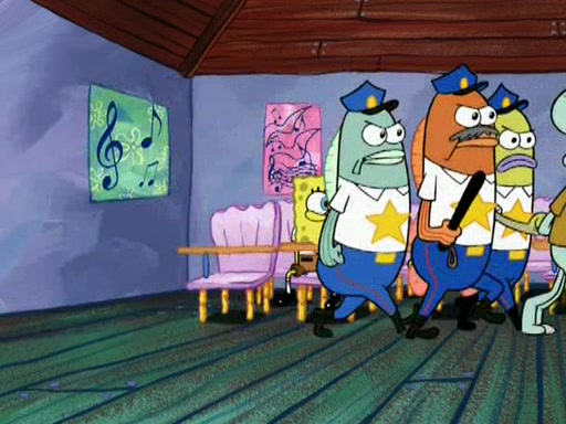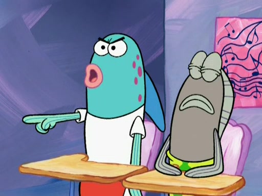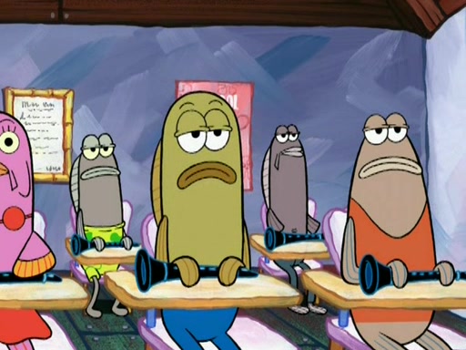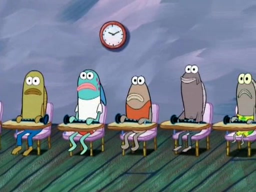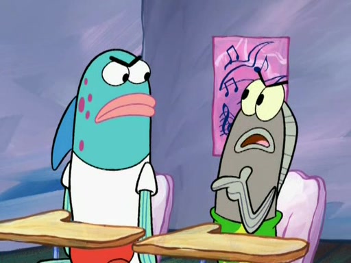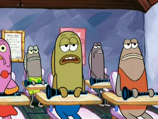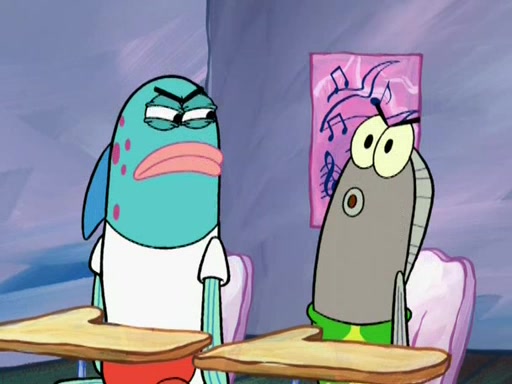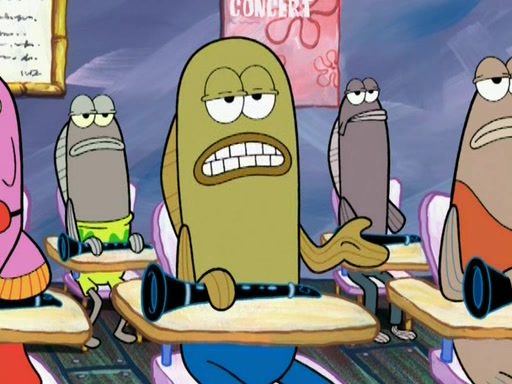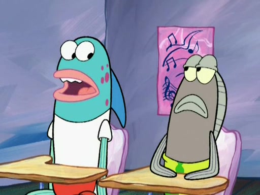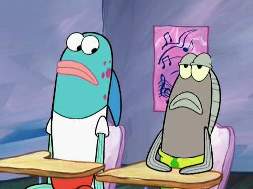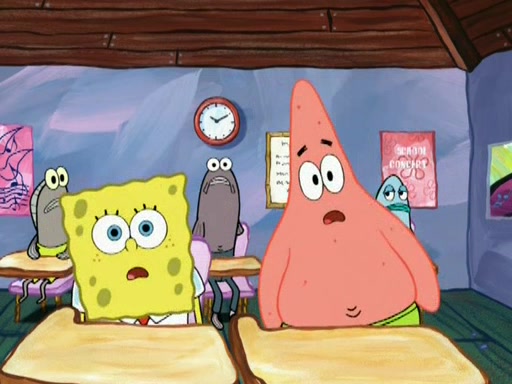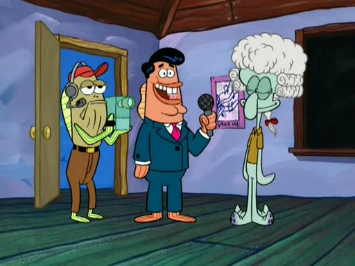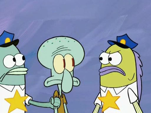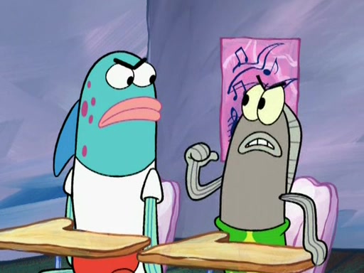 Then, Squidward starts teaching the class about metronomes, much to the interest of SpongeBob and Patrick (though SpongeBob mistook it for a garden gnome). They start making a ticking noise and a news reporter suddenly comes in, wanting to do an interview with "Squilliam Fancyson," although he is soon more interested in SpongeBob and Patrick at how they are in a trance. Squidward then angrily kicks him out after mentioning about possible paranormal activity and SpongeBob and Patrick stop ticking when the bell rings. They forget where they are and they start calling Squidward by his real name, which upsets the rest of the class and they start to leave. Squidward blocks the door with his body and crazily claims that no one is going anywhere. However, the police come in along with the news reporter, the music teacher, and Squilliam Fancyson himself. After noticing that Squidward does not have a unibrow, he is quickly arrested for "impersonating a genius," leaving SpongeBob and Patrick alone with the metronome ticking and them, while in a trance, going "tick tick tick..." along with it.