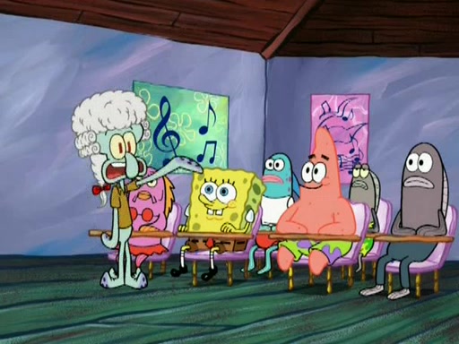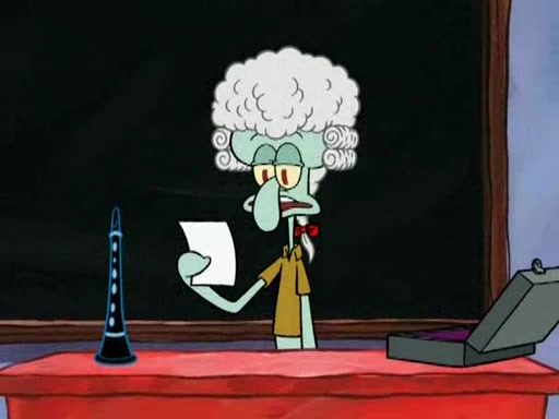 Squidward is disdainfully watching Squilliam play his clarinet at a concert. When Squilliam finishes, Squidward leaves. He also hears someone say "He's so good he doesn't even have to play to be good!" As he walks out of the recital hall, he is mistaken for Squilliam and is then offered to teach a music class, to which he accepts.