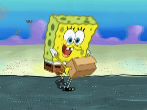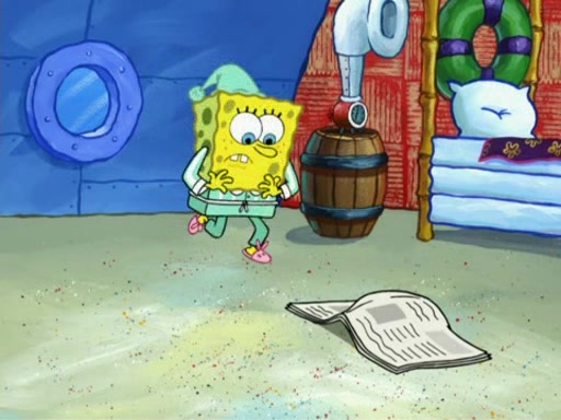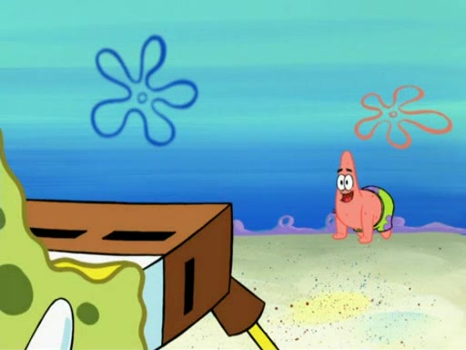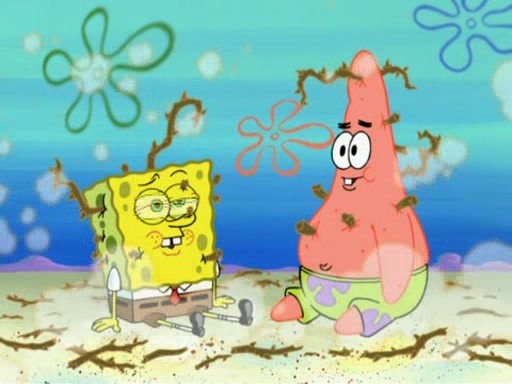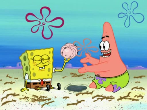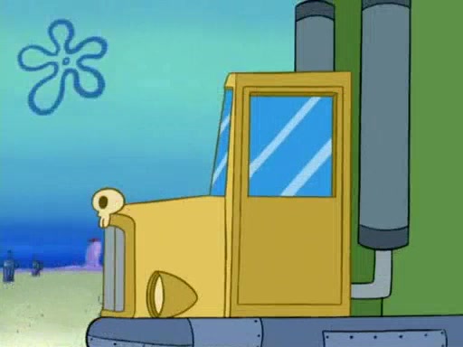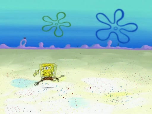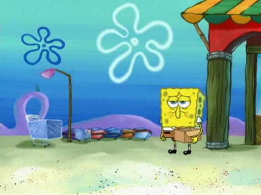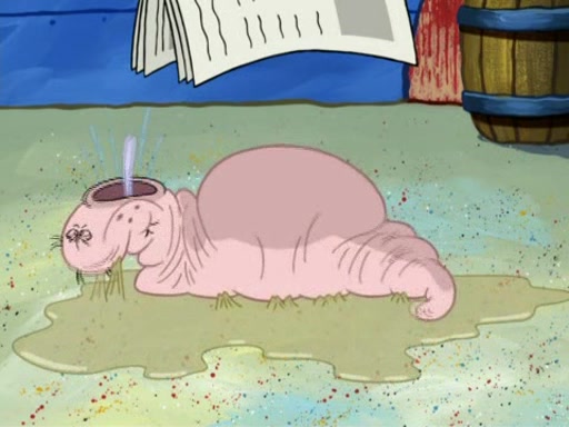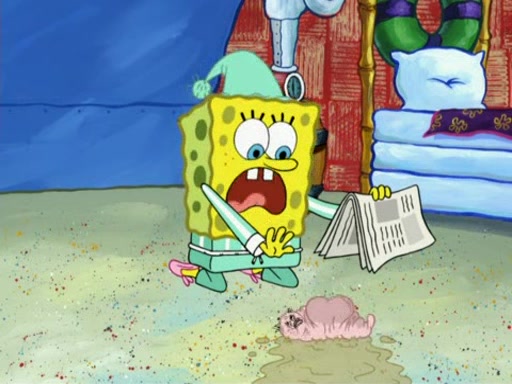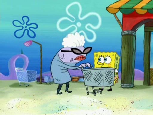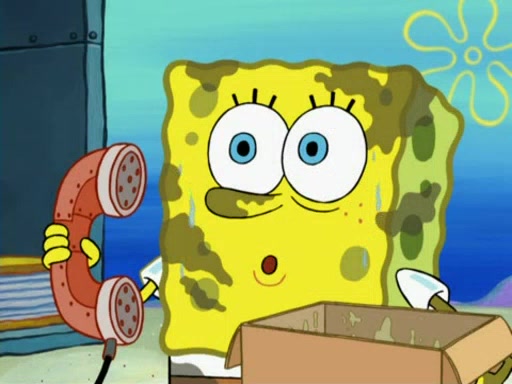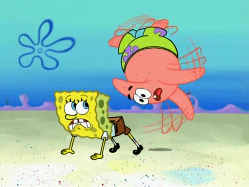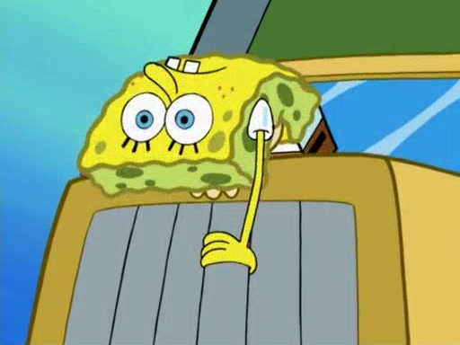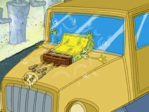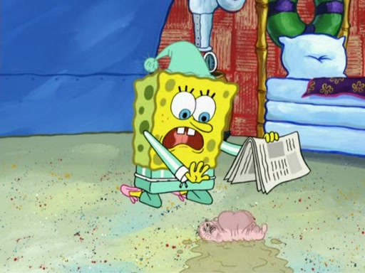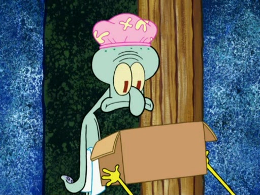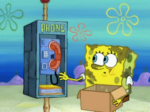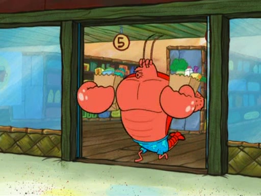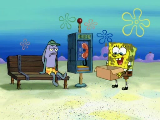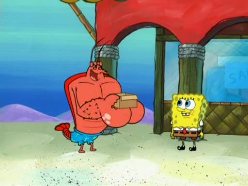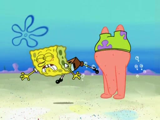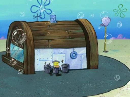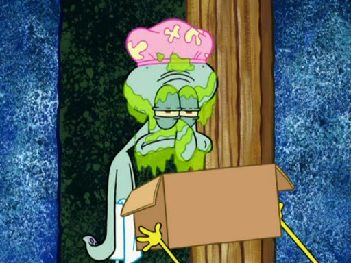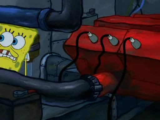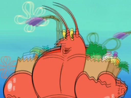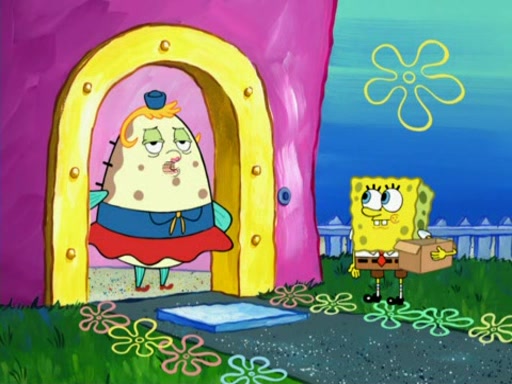 He first takes the worms to Squidward's house, in which Squidward is disgusted by them for vomiting a type of acid at his face. He then takes it to Mrs. Puff, in which she is shocked by them and puffs, damaging her house. SpongeBob then proceeds to go to a grocery store, stumbling upon Larry the Lobster. He decides to take them, but only to eat them alive due to raw protein, in which SpongeBob knocks them out of Larry's hand. The worms land in the middle of the road right in front of a moving truck, in which SpongeBob reacts. He goes inside the truck to pull out the connections to the engine, and unscrews and gets rid of the engine, forcing the truck to halt.