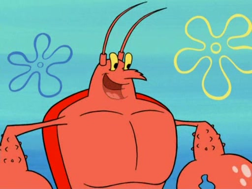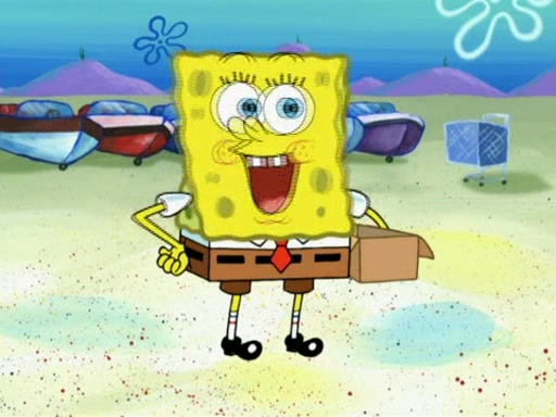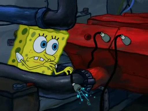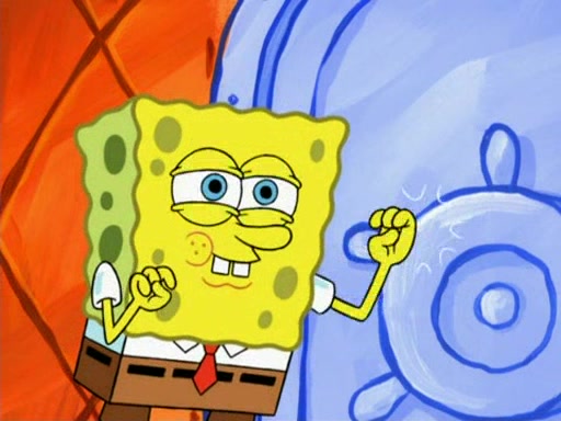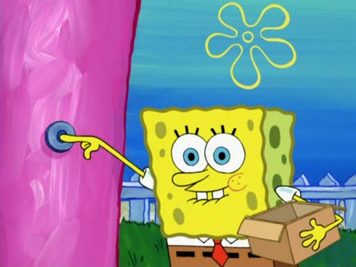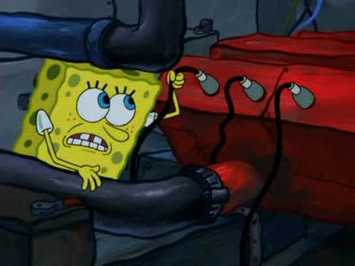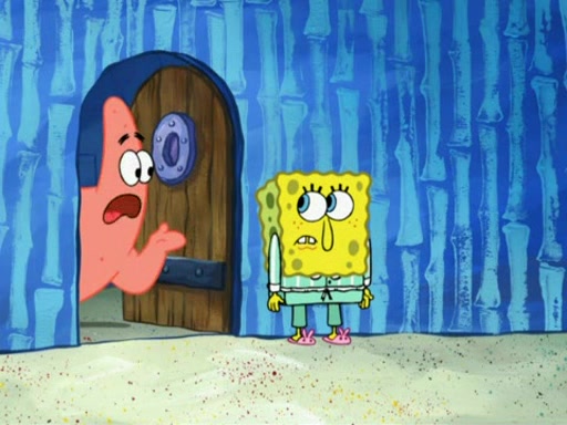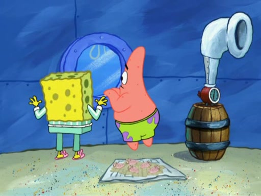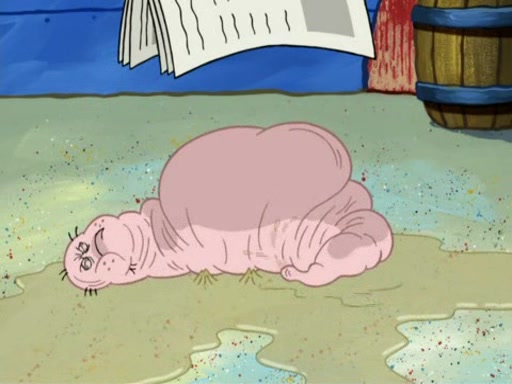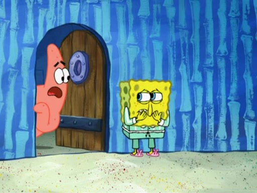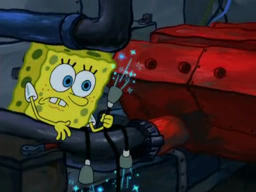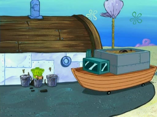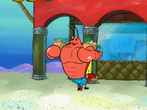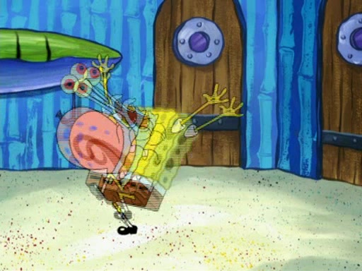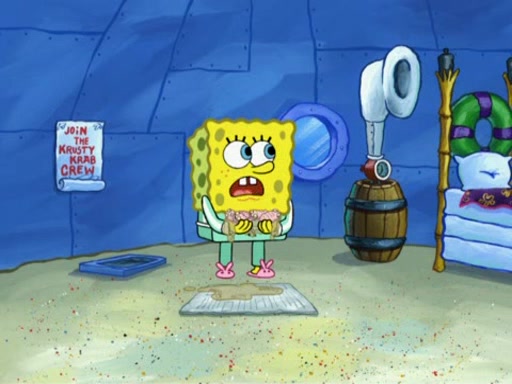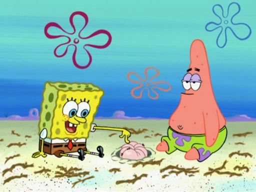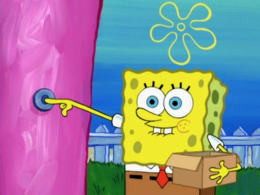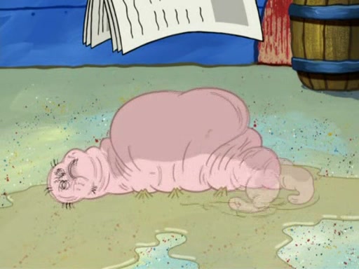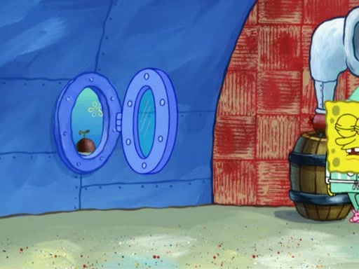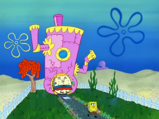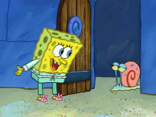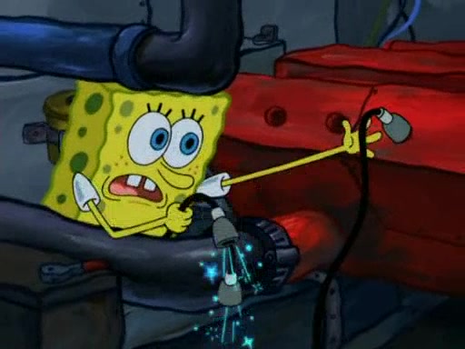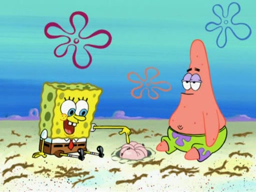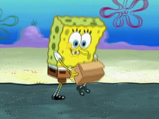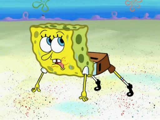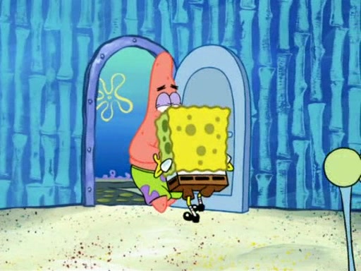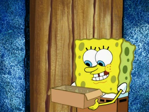 He first takes the worms to Squidward's house, in which Squidward is disgusted by them for vomiting a type of acid at his face. He then takes it to Mrs. Puff, in which she is shocked by them and puffs, damaging her house. SpongeBob then proceeds to go to a grocery store, stumbling upon Larry the Lobster. He decides to take them, but only to eat them alive due to raw protein, in which SpongeBob knocks them out of Larry's hand. The worms land in the middle of the road right in front of a moving truck, in which SpongeBob reacts. He goes inside the truck to pull out the connections to the engine, and unscrews and gets rid of the engine, forcing the truck to halt.