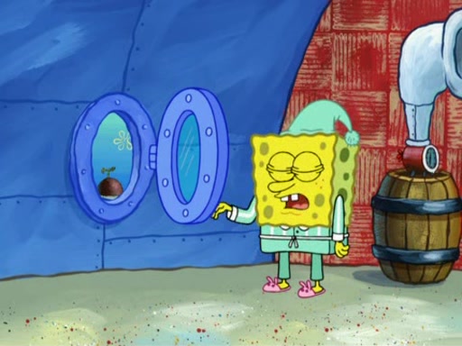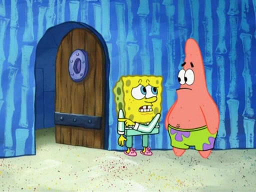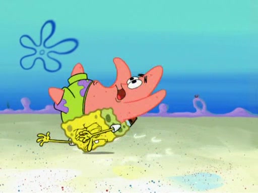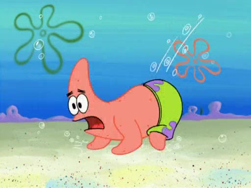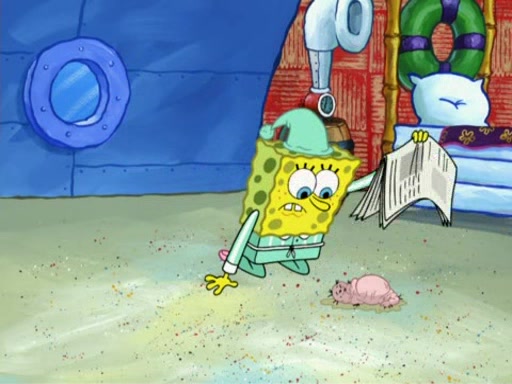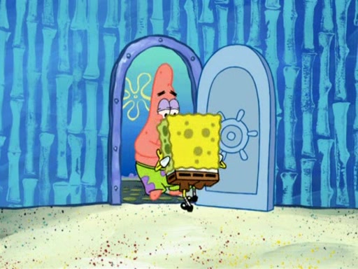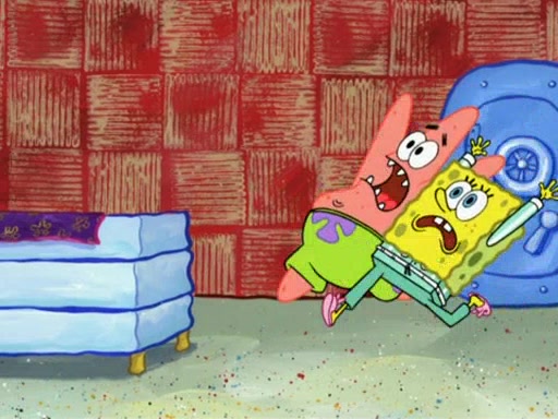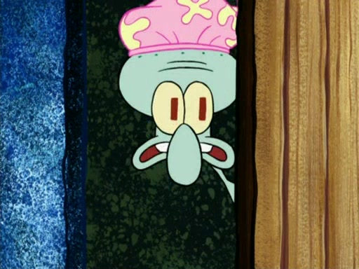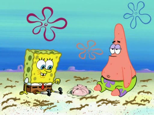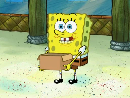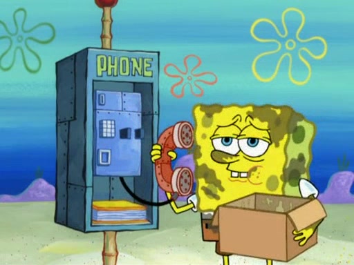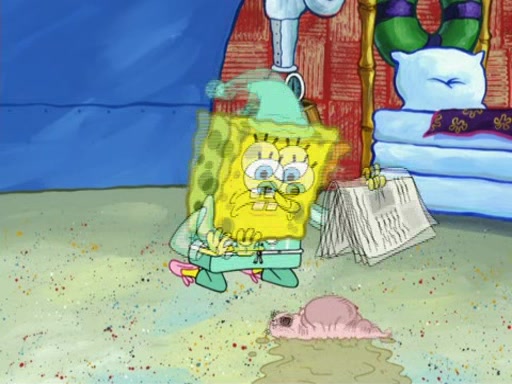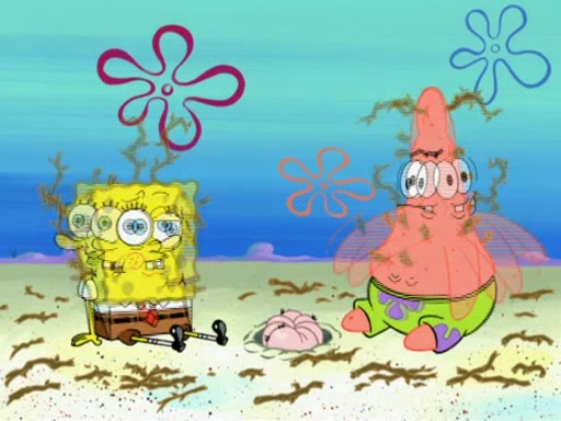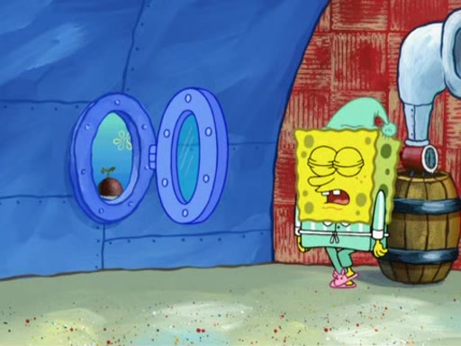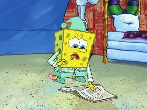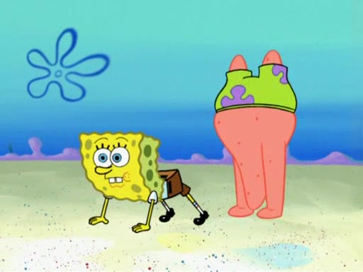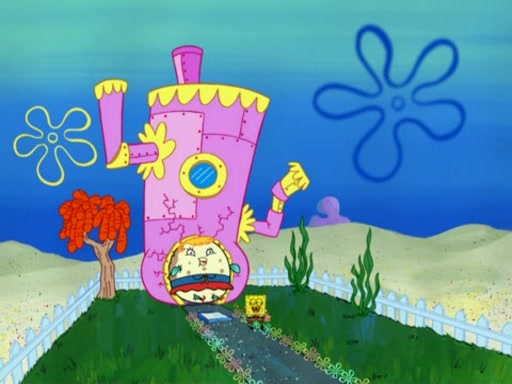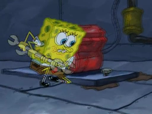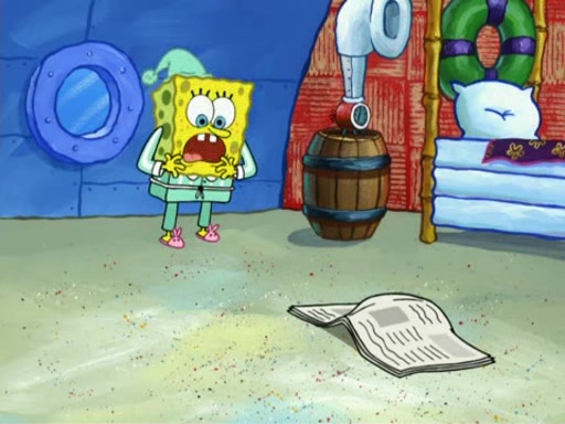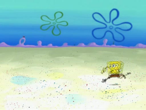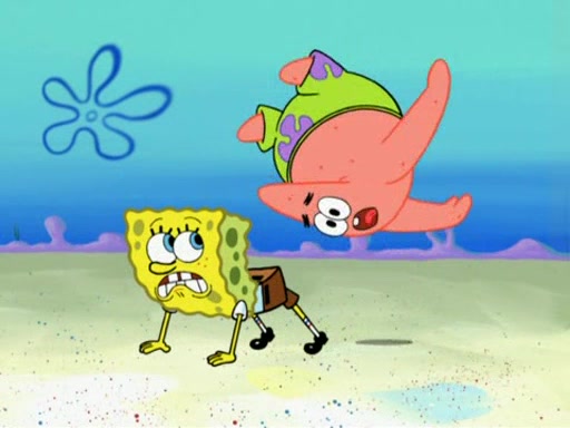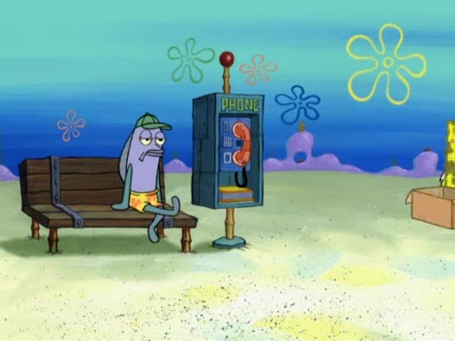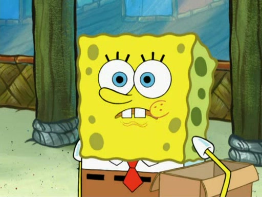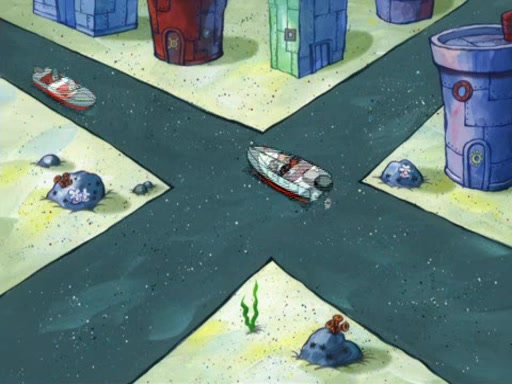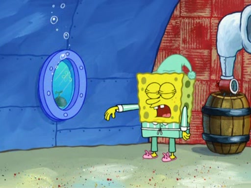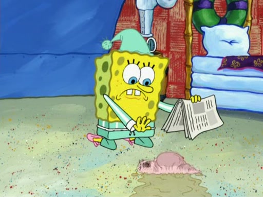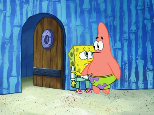 He first takes the worms to Squidward's house, in which Squidward is disgusted by them for vomiting a type of acid at his face. He then takes it to Mrs. Puff, in which she is shocked by them and puffs, damaging her house. SpongeBob then proceeds to go to a grocery store, stumbling upon Larry the Lobster. He decides to take them, but only to eat them alive due to raw protein, in which SpongeBob knocks them out of Larry's hand. The worms land in the middle of the road right in front of a moving truck, in which SpongeBob reacts. He goes inside the truck to pull out the connections to the engine, and unscrews and gets rid of the engine, forcing the truck to halt.