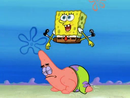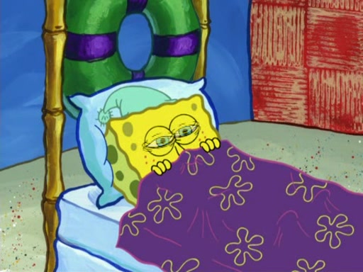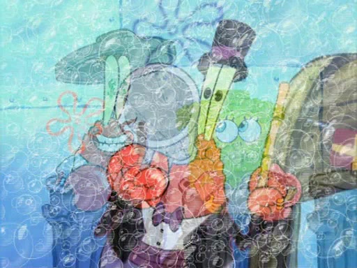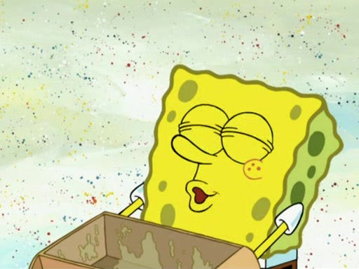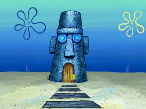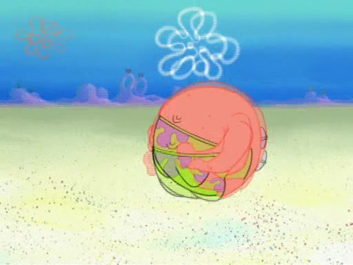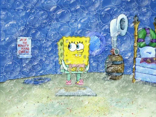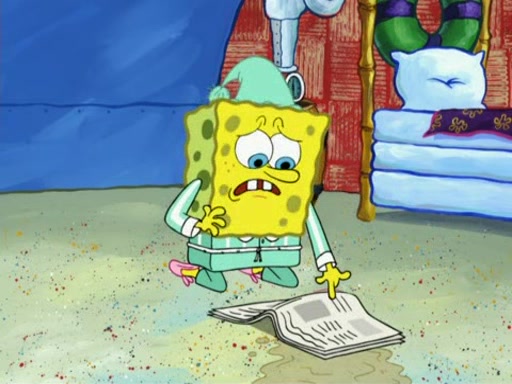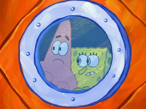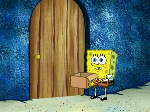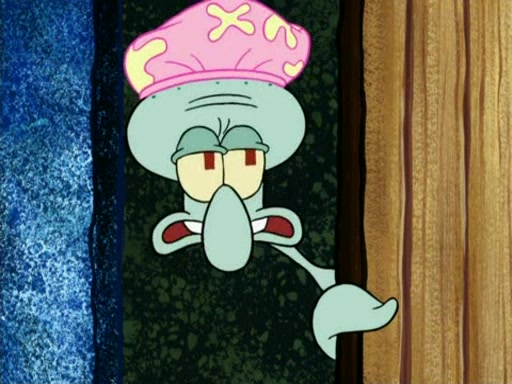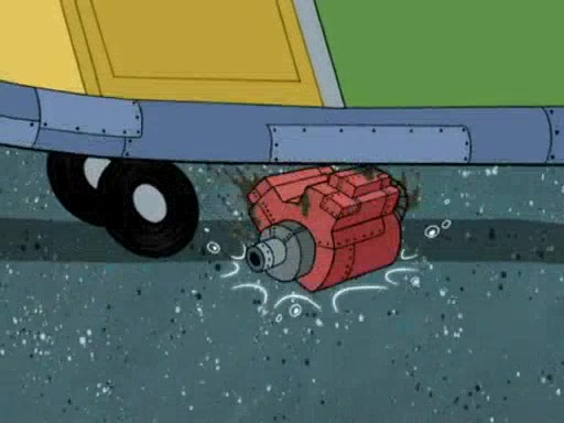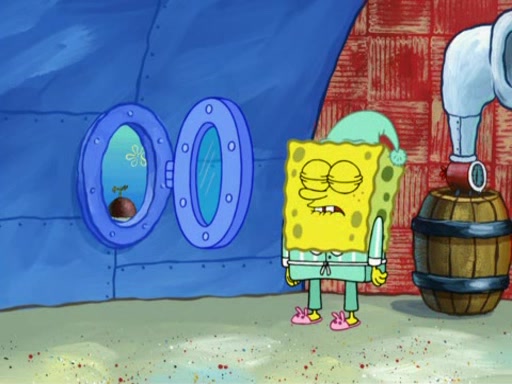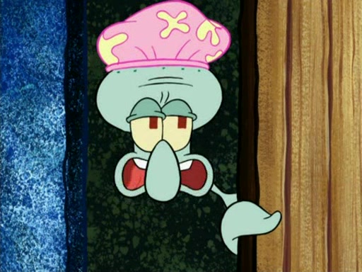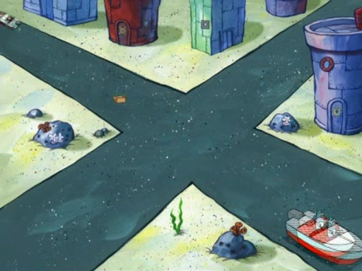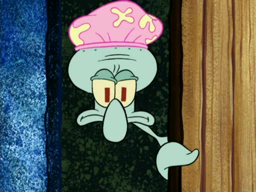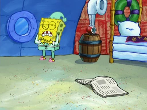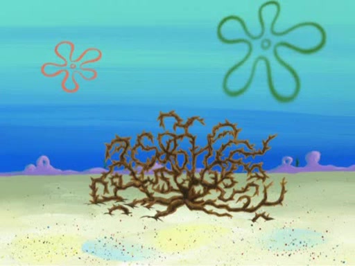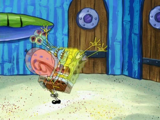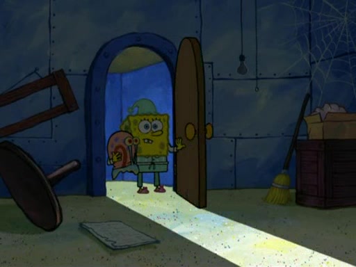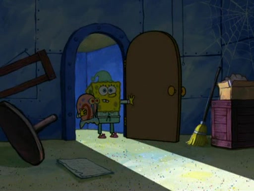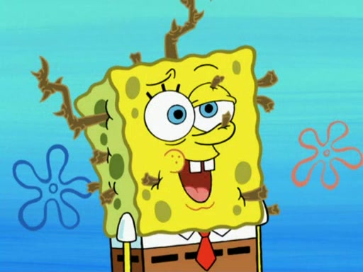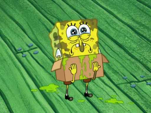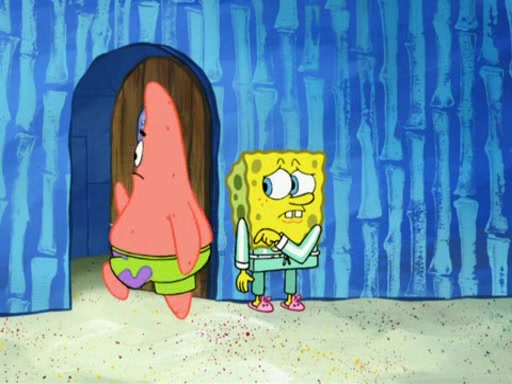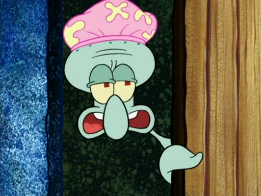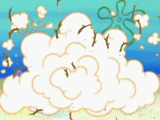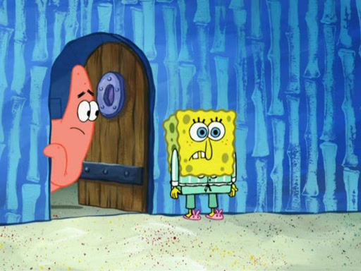 He first takes the worms to Squidward's house, in which Squidward is disgusted by them for vomiting a type of acid at his face. He then takes it to Mrs. Puff, in which she is shocked by them and puffs, damaging her house. SpongeBob then proceeds to go to a grocery store, stumbling upon Larry the Lobster. He decides to take them, but only to eat them alive due to raw protein, in which SpongeBob knocks them out of Larry's hand. The worms land in the middle of the road right in front of a moving truck, in which SpongeBob reacts. He goes inside the truck to pull out the connections to the engine, and unscrews and gets rid of the engine, forcing the truck to halt.