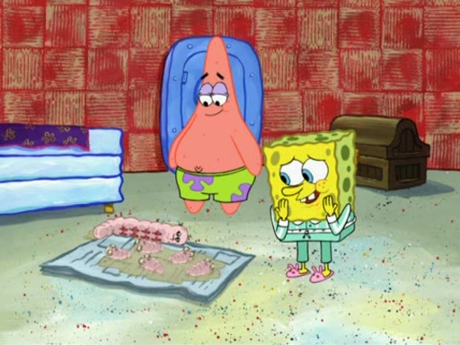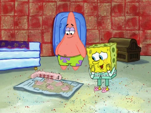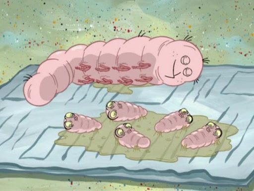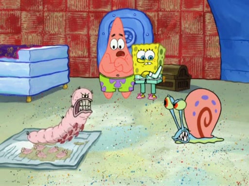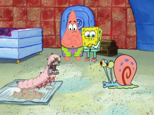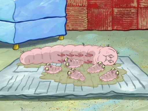 The next morning, SpongeBob wakes up and sees the worm in a type of pain. He runs to Patrick because he doesn't know what to do. They go back to SpongeBob's house and see that the worm has given birth to baby worms. SpongeBob and Patrick try and put Gary and Mrs. Wormsley together, but she attacks Gary again, and Gary chases Mrs. Wormsley out of town on a bus, so SpongeBob is left to take care of the worm babies. Because Patrick isn't willing to help with this situation, SpongeBob tries to find a person who will adopt the baby worms.