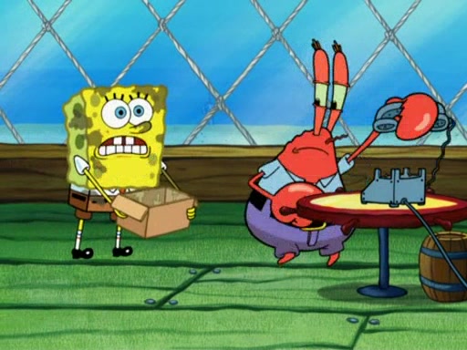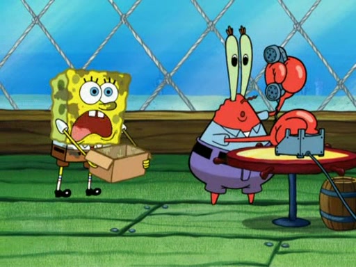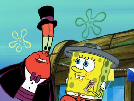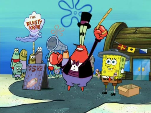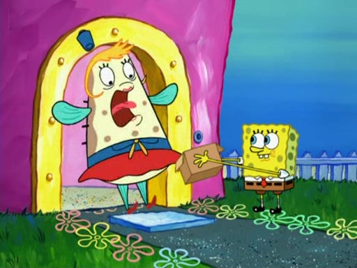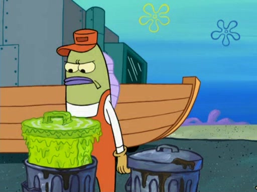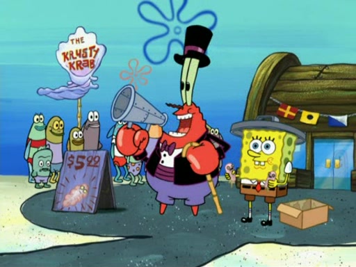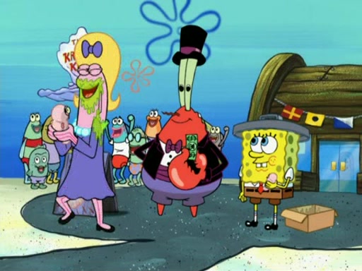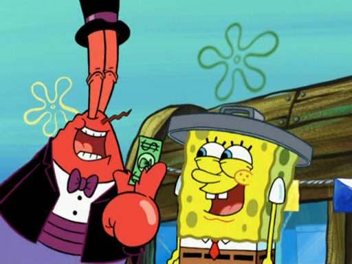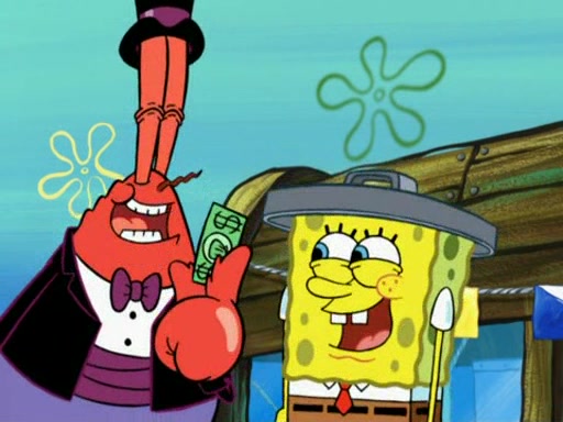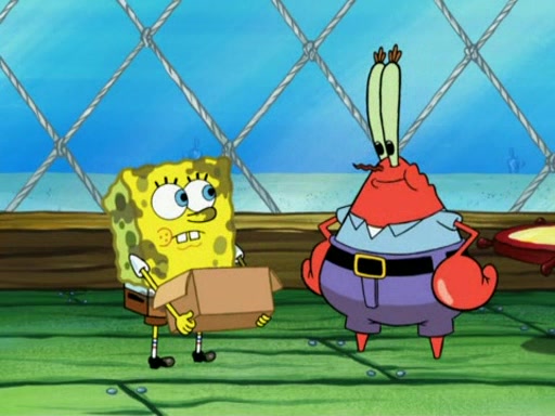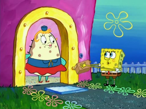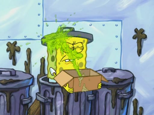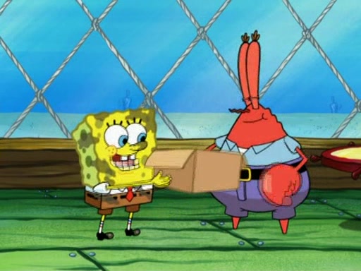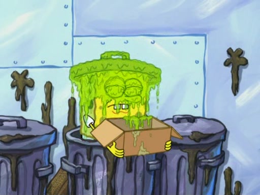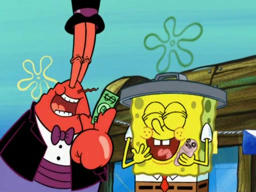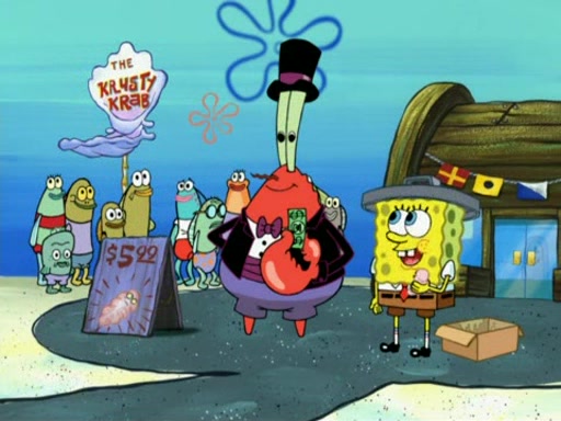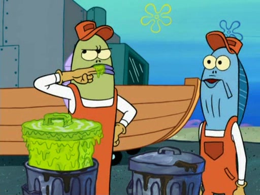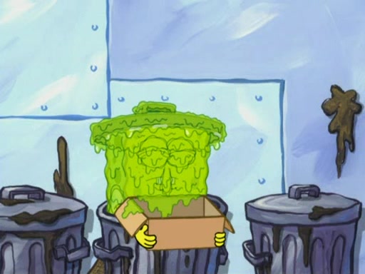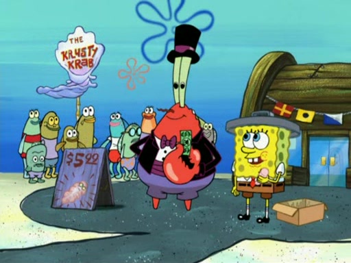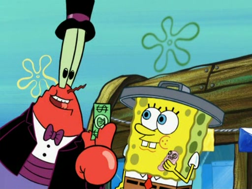 SpongeBob then scoops up the meadow worms and puts them in the box that they were in. After this, SpongeBob tries to sell them to Mr. Krabs, in which he declines because the worms spit up on his face as well, and forces him to take the worms out of his restaurant. SpongeBob puts them by the garbage, but the babies spit on him too. Garbage men come up and they are about to take the garbage away when they see the acid on SpongeBob's face. They see that it is a very rare type of worm, and Mr. Krabs comes out, hearing how it is rare and they would bring a lot of money. So, SpongeBob and Mr. Krabs sell the worms to the people of Bikini Bottom.