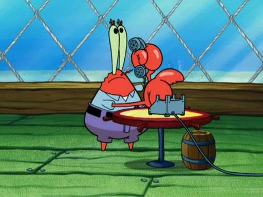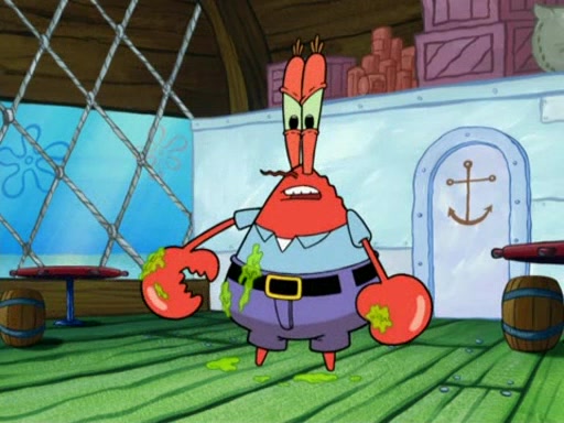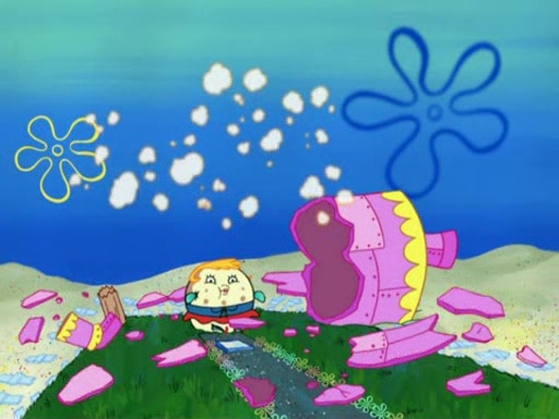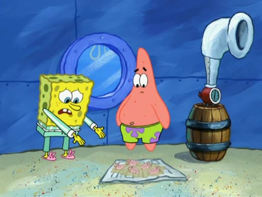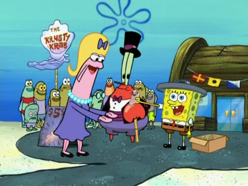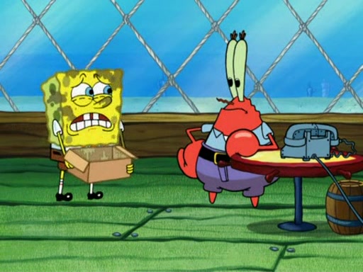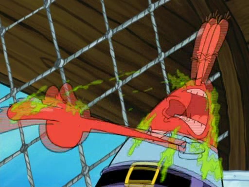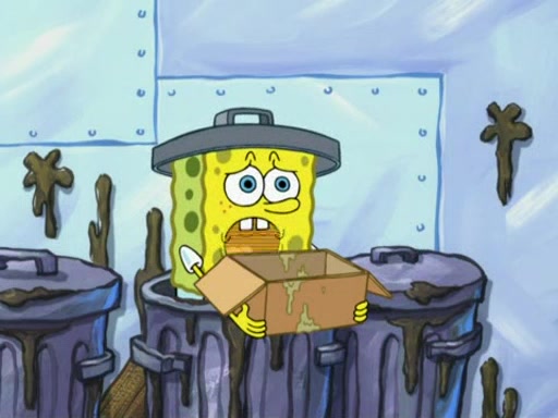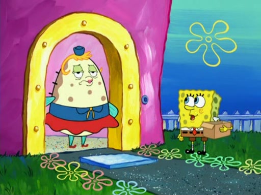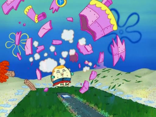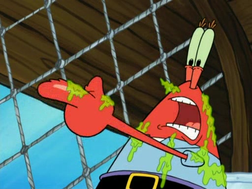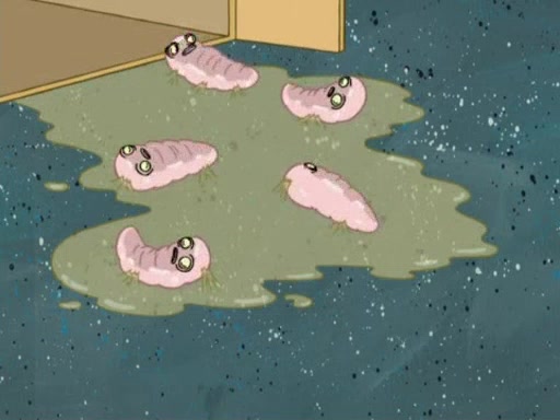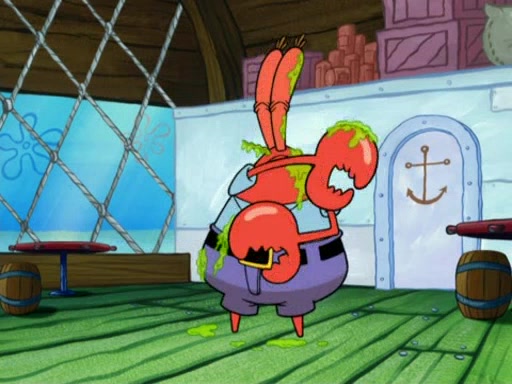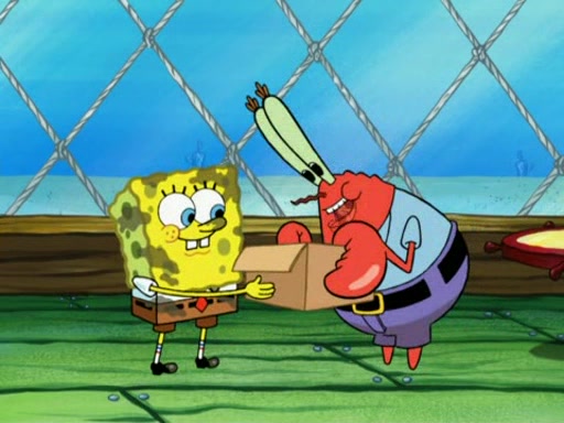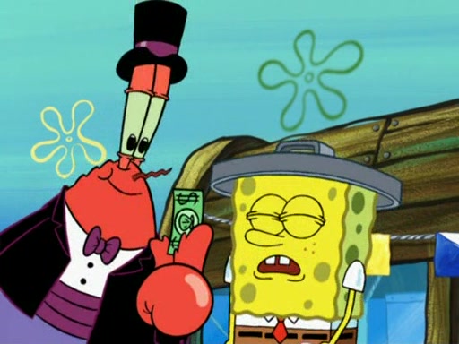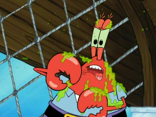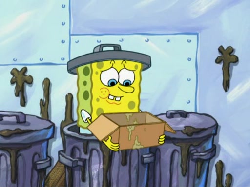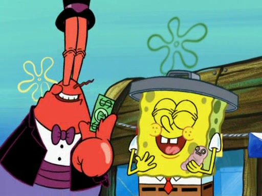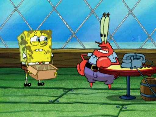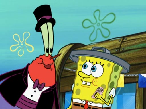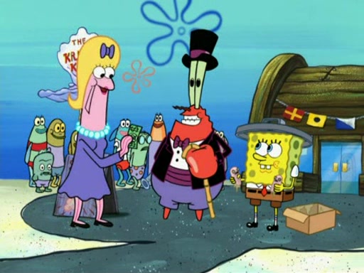 SpongeBob then scoops up the meadow worms and puts them in the box that they were in. After this, SpongeBob tries to sell them to Mr. Krabs, in which he declines because the worms spit up on his face as well, and forces him to take the worms out of his restaurant. SpongeBob puts them by the garbage, but the babies spit on him too. Garbage men come up and they are about to take the garbage away when they see the acid on SpongeBob's face. They see that it is a very rare type of worm, and Mr. Krabs comes out, hearing how it is rare and they would bring a lot of money. So, SpongeBob and Mr. Krabs sell the worms to the people of Bikini Bottom.