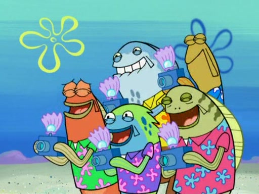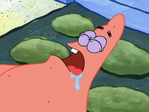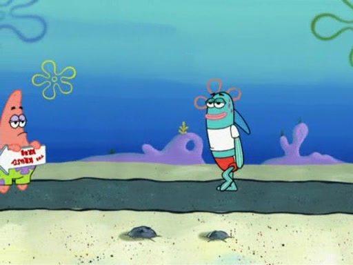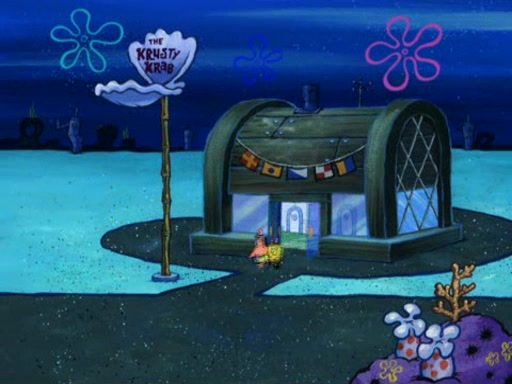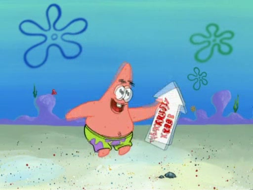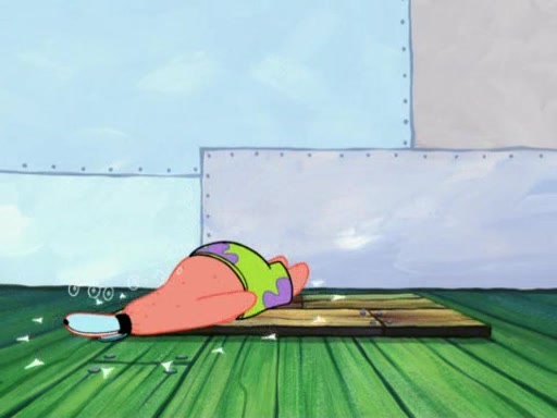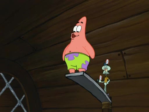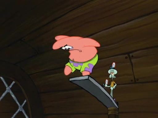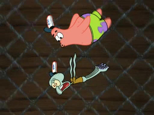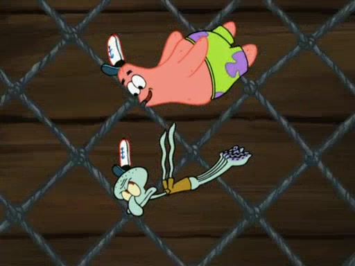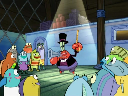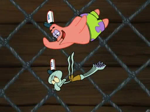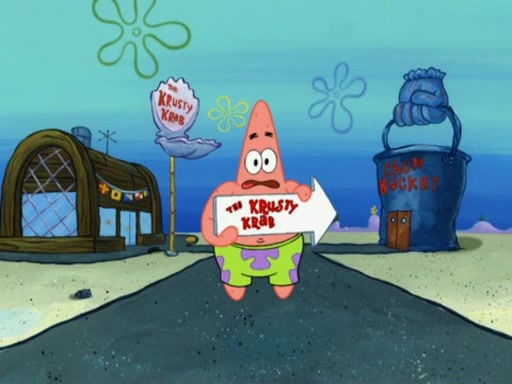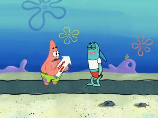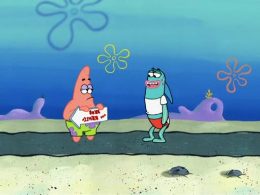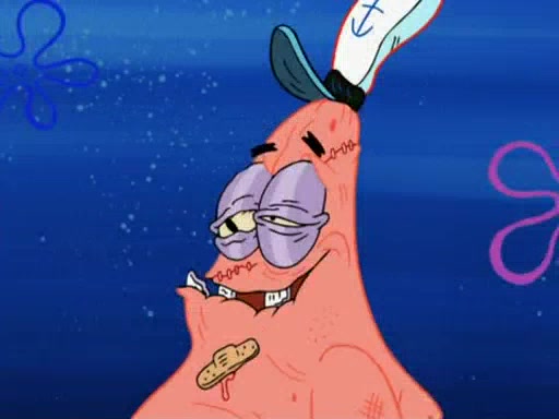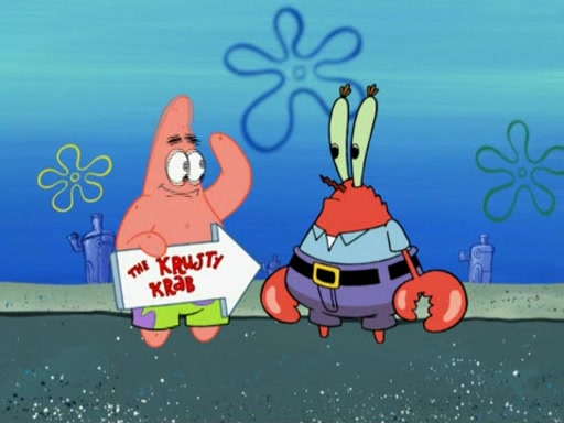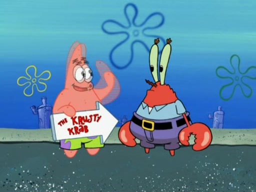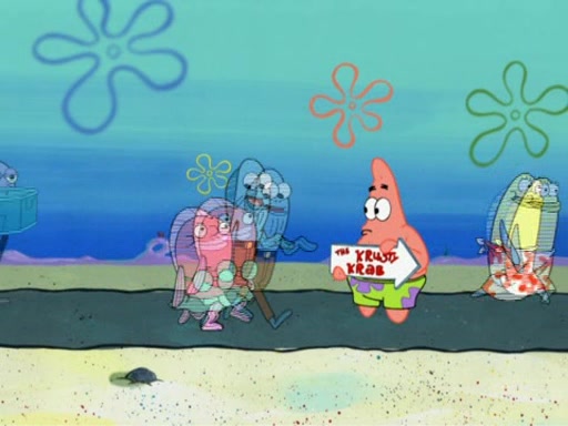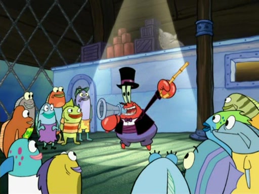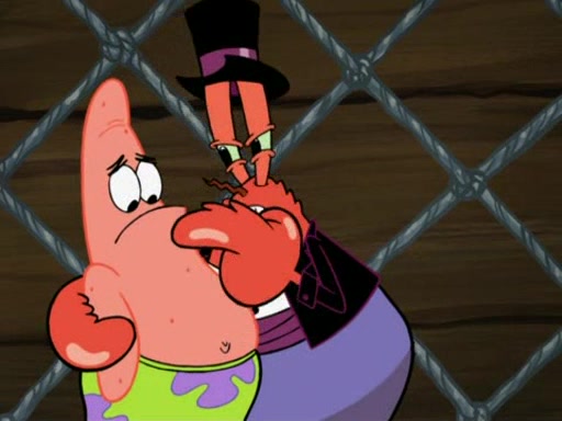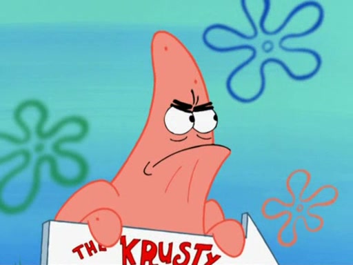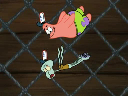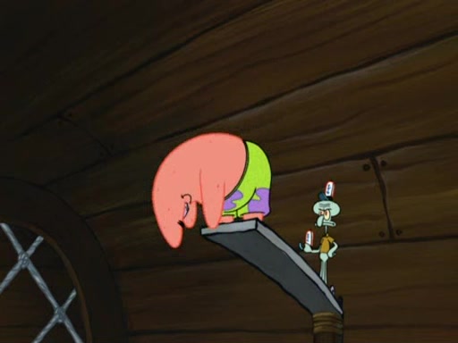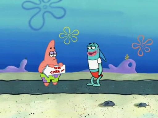 One day, Patrick is sleeping outside of SpongeBob's house. He wakes up to go jellyfishing, only to discover that SpongeBob is wearing his Krusty Krab hat. He knows that means he has to work. He next discovers that Squidward had a hat too. In displeasure, he promises that he was going to get a job, and a hat, so he goes off. SpongeBob arrives at work, while Mr. Krabs is watching for customers, he then spots a group of tourists which he wants to serve some Krabby Patties, but he could not catch them, so he thinks of ideas to catch them next time they come around, he then bumps into Patrick, who he hires to stand outside and lure in tourists. He is also promised to have a hat afterwards. SpongeBob watches as Patrick directs customers the wrong way, and sometimes pays no attention, Mr. Krabs goes out to show him the proper way to lure in customers, but he fails too, but in the end he receives his hat, only to fall down for anonymous reasons. SpongeBob asks him what is wrong, and he supposed that he is nervous, he falls and falls, he lures in customers, and the tourists by doing this, and they say, THAT'S THE KIND OF MINDLESSNESS THEY PAY MONEY TO SEE, so Mr. Krabs decides to make Patrick the main attraction at the Krusty Krab, and hosts a show with Patrick as the star, but the customers soon are ran off by Squidward, trying to entertain them, of course thinking that they are uncultured, as he plays the clarinet and roams around the Krusty Krab, so the customers got out of there. The customers continue to watch Patrick, but it gets old, but then Mr. Krabs starts to think of more painful ways to make Patrick fall, and it brings them back. SpongeBob tries to convince Patrick to stop falling for enjoyment but Patrick says the hat promotes him and he wants to keep doing his job, so SpongeBob agrees.