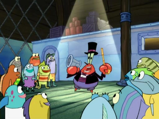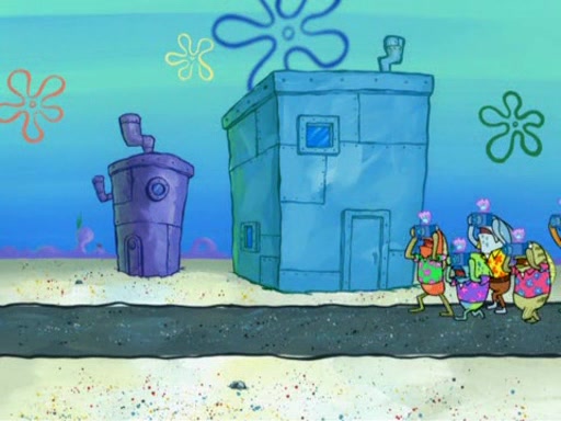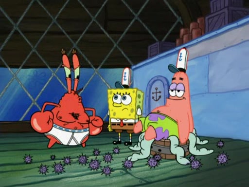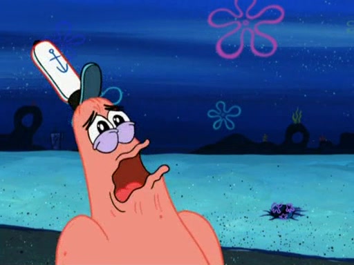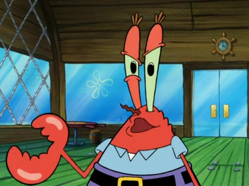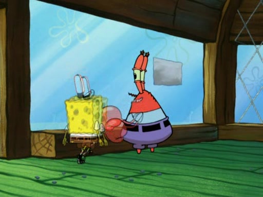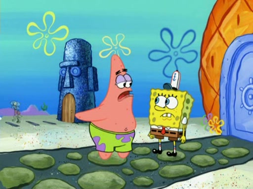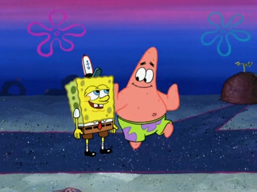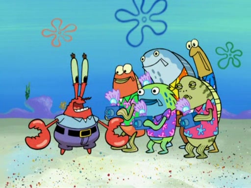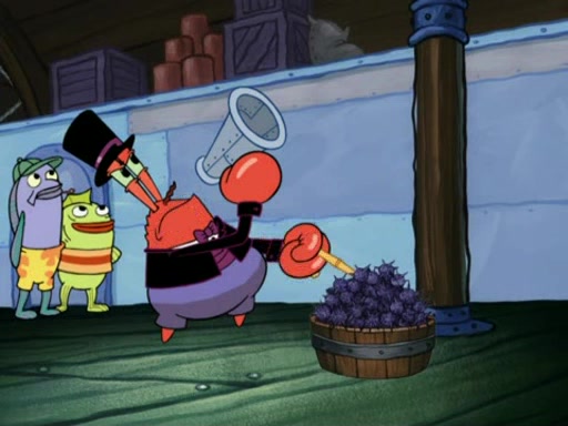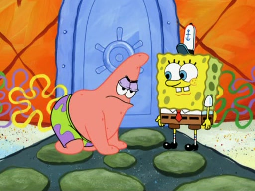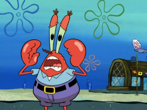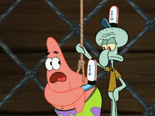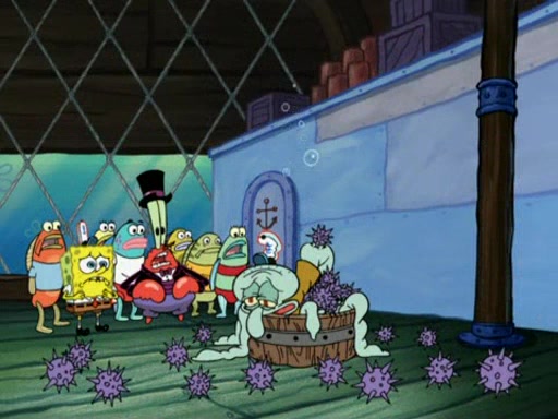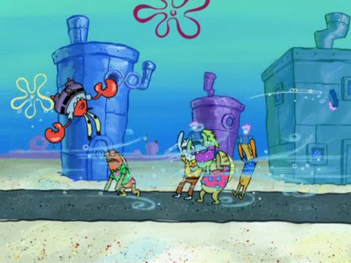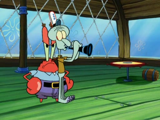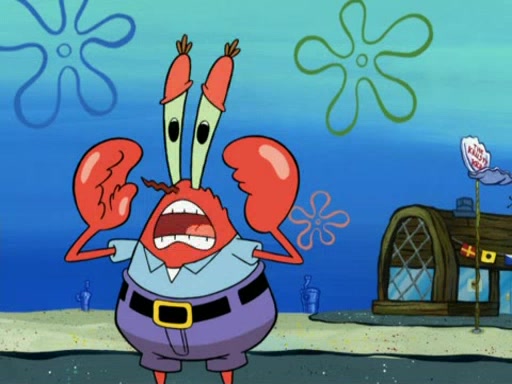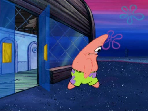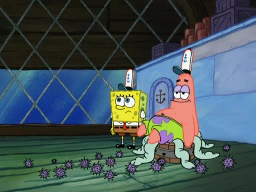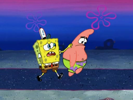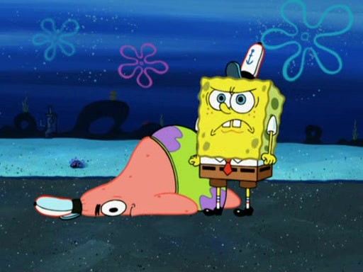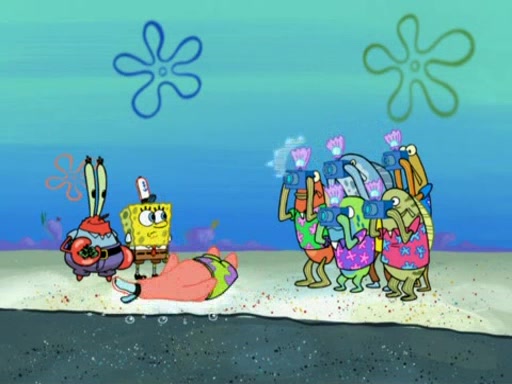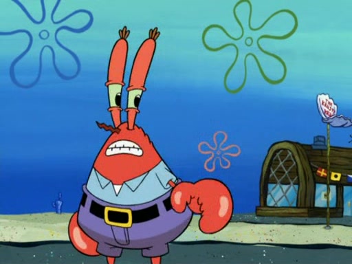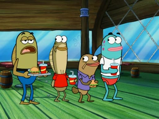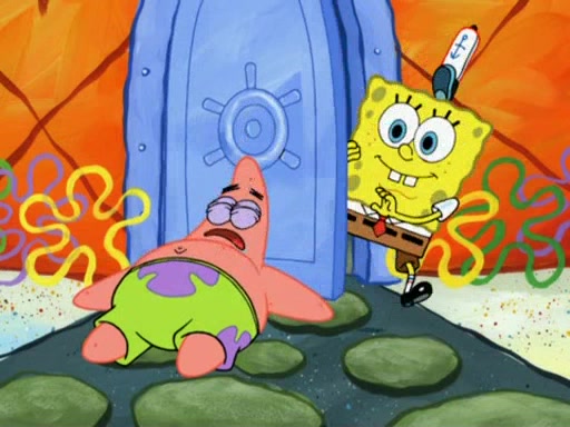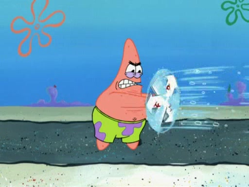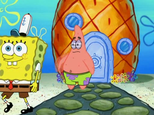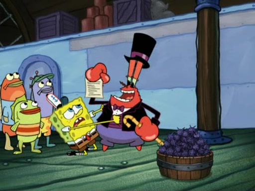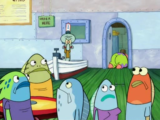 The next day, he is going to fall into a bucket of spiky sea urchins, and he takes his hat off so it will not get damaged, but he then finds himself stuck on the edge. SpongeBob tries to stop him but he falls, right on top of Squidward, who tries to push him, the customers attack Mr. Krabs and steal all of their money back because no-one was hurt. Mr. Krabs then takes the hat back from Patrick, blaming him for it, saying that as long as he stands, he will never wear the hat again. Patrick then leaves the Krusty Krab and goes home sad. In the epilogue, SpongeBob cheers Patrick up, and tells him he can wear his hat anytime he pleases, and so they go back to their normal lives.