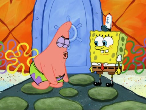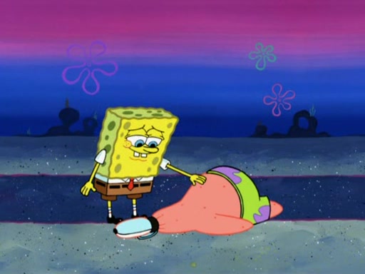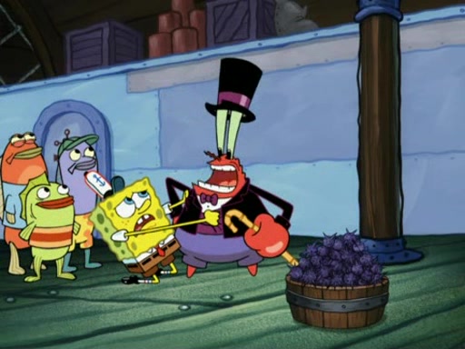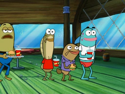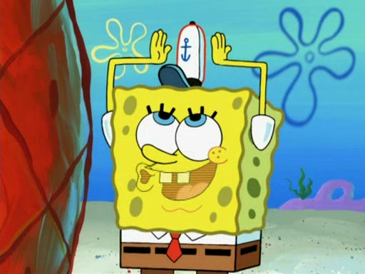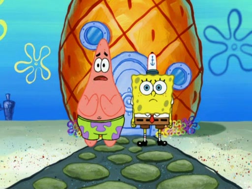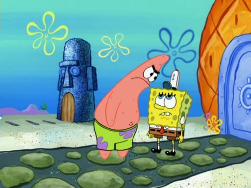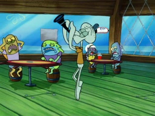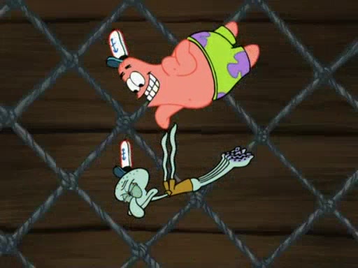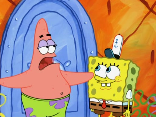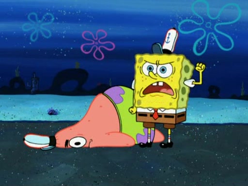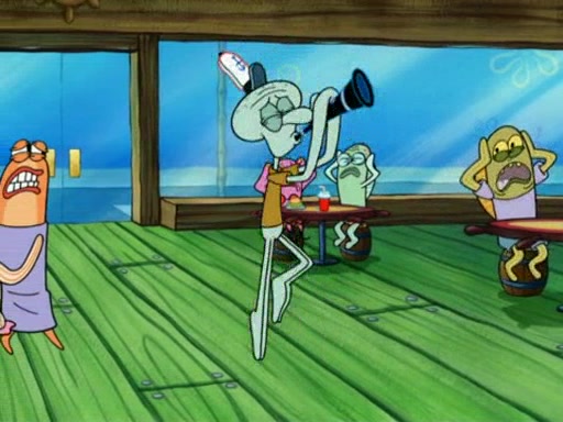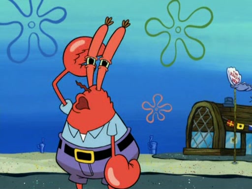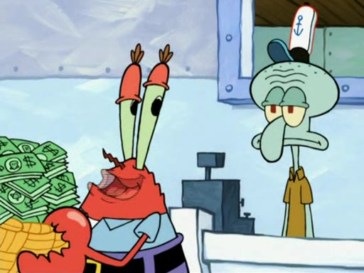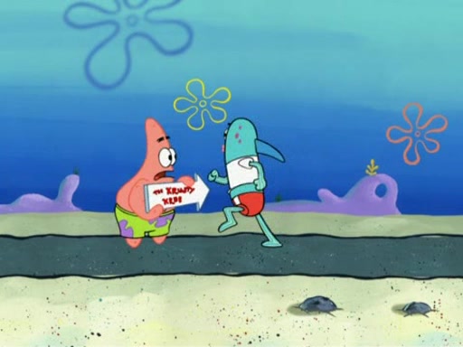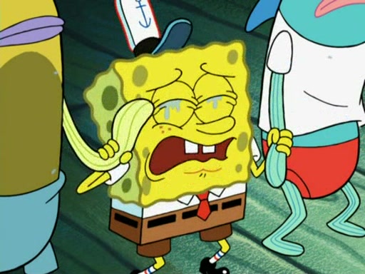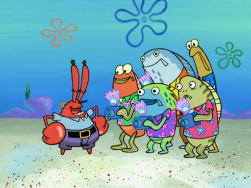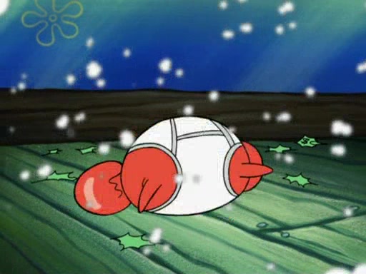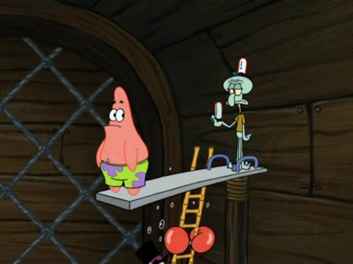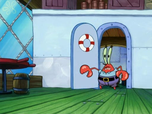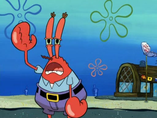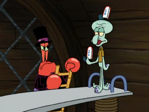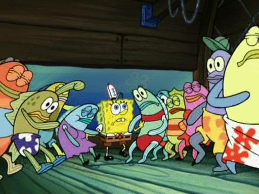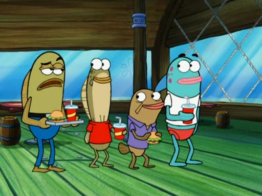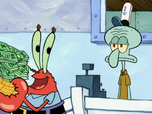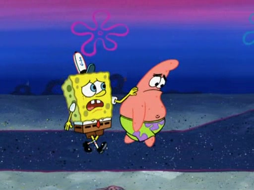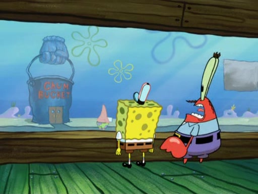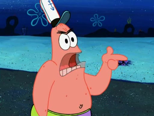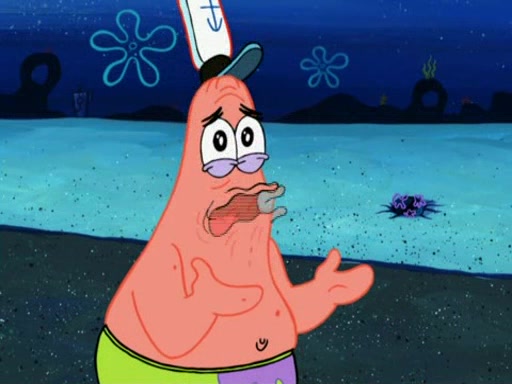The next day, he is going to fall into a bucket of spiky sea urchins, and he takes his hat off so it will not get damaged, but he then finds himself stuck on the edge. SpongeBob tries to stop him but he falls, right on top of Squidward, who tries to push him, the customers attack Mr. Krabs and steal all of their money back because no-one was hurt. Mr. Krabs then takes the hat back from Patrick, blaming him for it, saying that as long as he stands, he will never wear the hat again. Patrick then leaves the Krusty Krab and goes home sad. In the epilogue, SpongeBob cheers Patrick up, and tells him he can wear his hat anytime he pleases, and so they go back to their normal lives.
