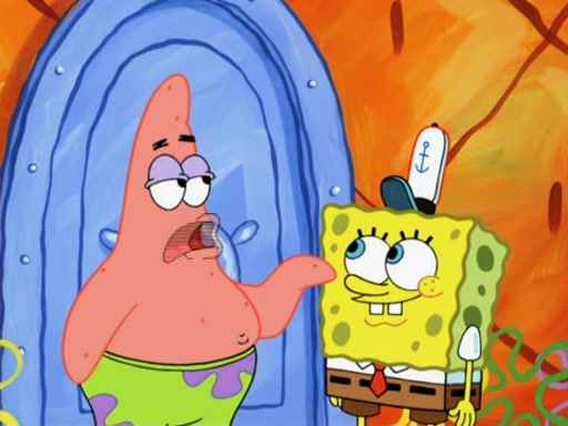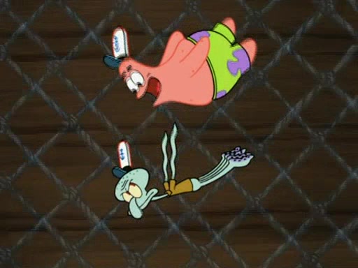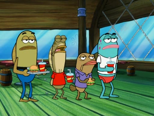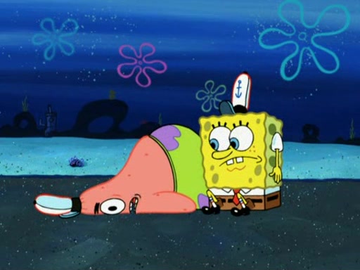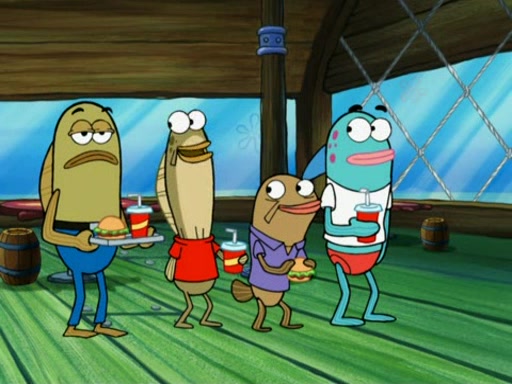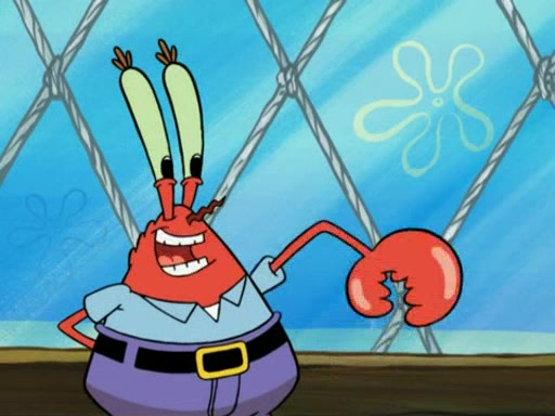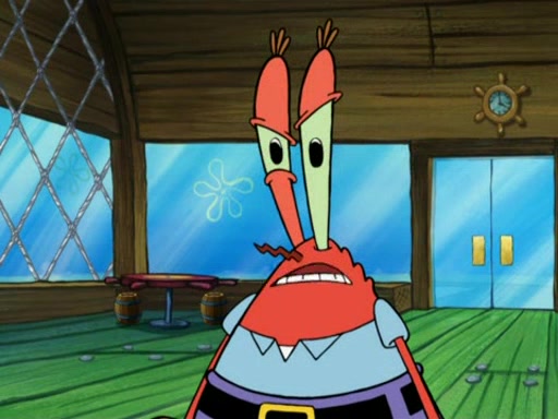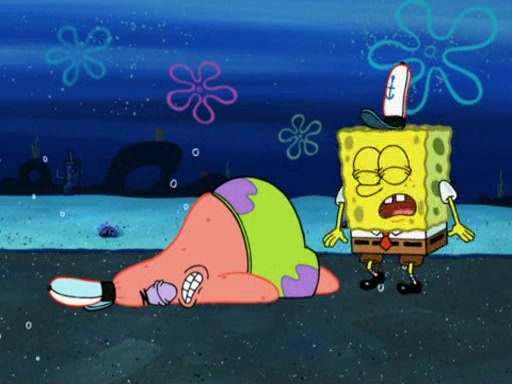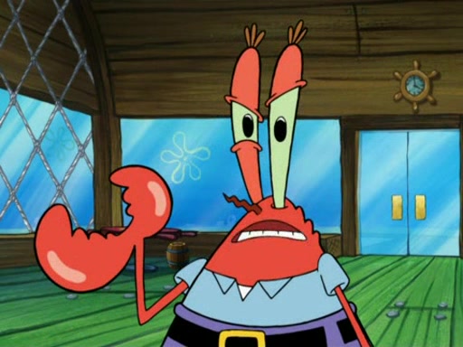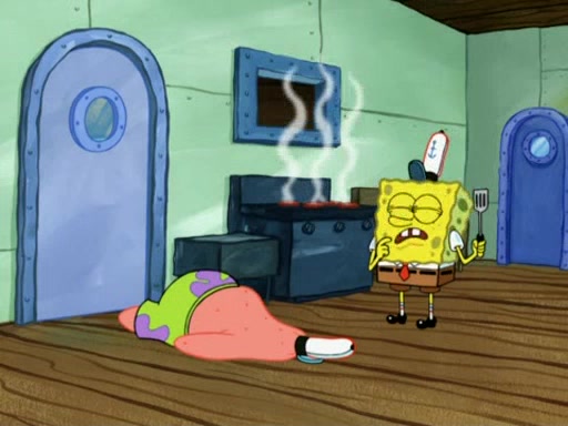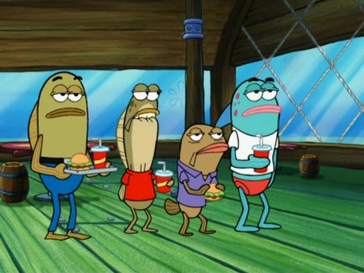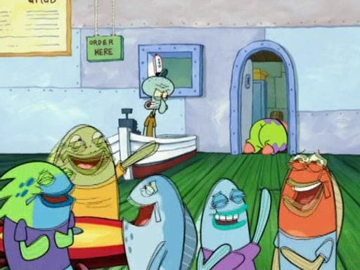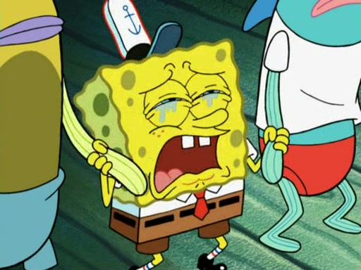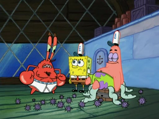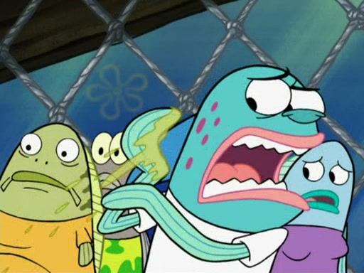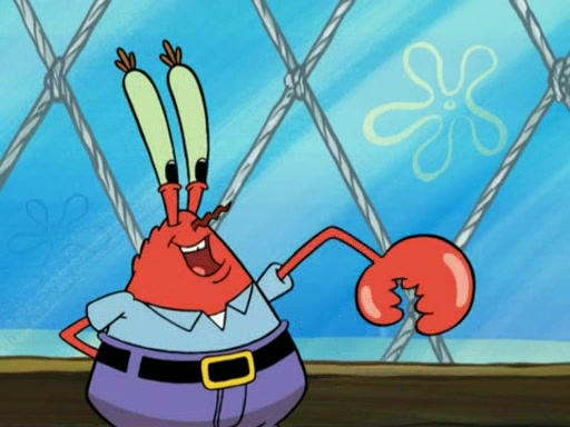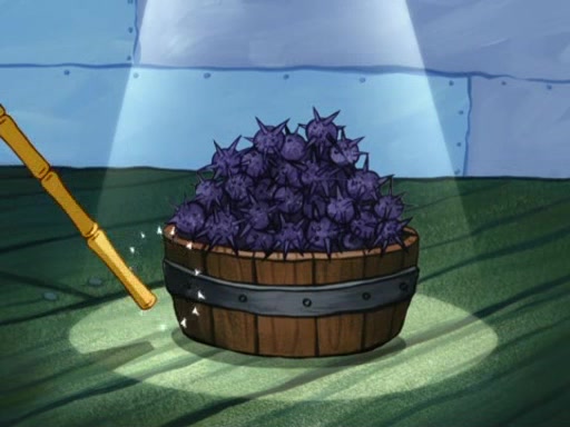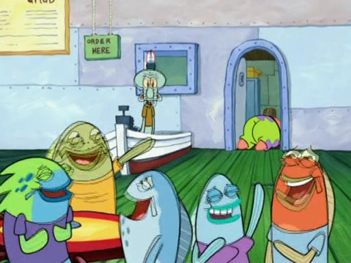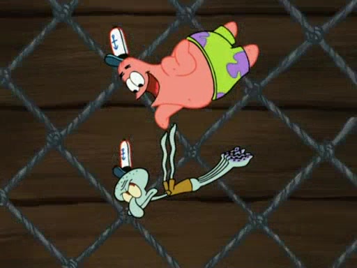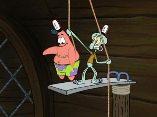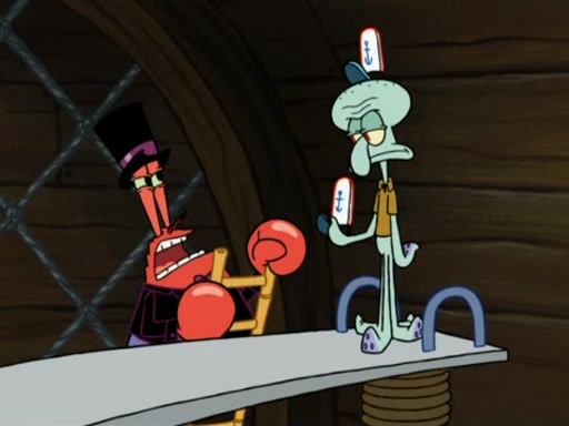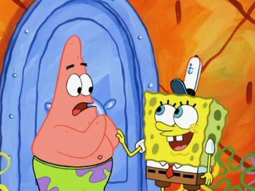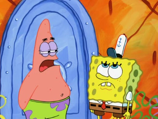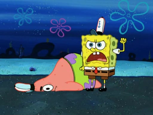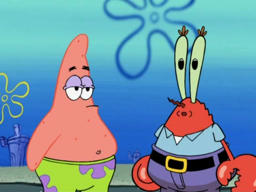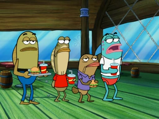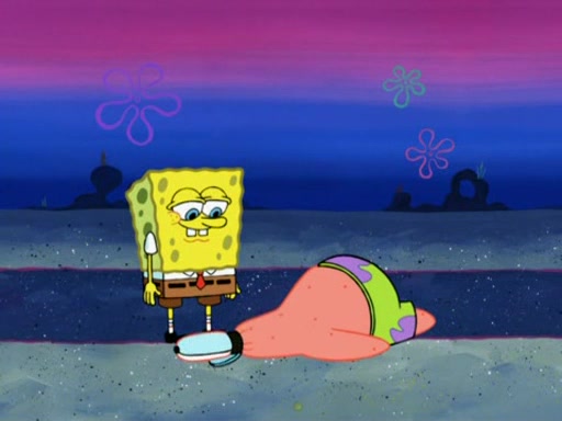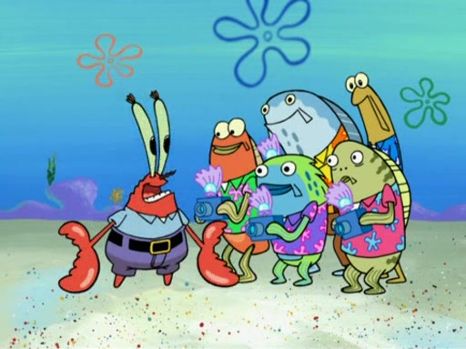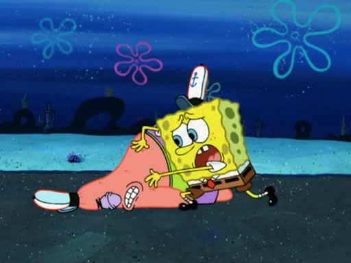 The next day, he is going to fall into a bucket of spiky sea urchins, and he takes his hat off so it will not get damaged, but he then finds himself stuck on the edge. SpongeBob tries to stop him but he falls, right on top of Squidward, who tries to push him, the customers attack Mr. Krabs and steal all of their money back because no-one was hurt. Mr. Krabs then takes the hat back from Patrick, blaming him for it, saying that as long as he stands, he will never wear the hat again. Patrick then leaves the Krusty Krab and goes home sad. In the epilogue, SpongeBob cheers Patrick up, and tells him he can wear his hat anytime he pleases, and so they go back to their normal lives.
