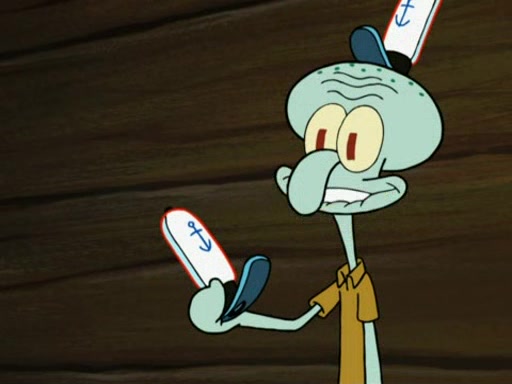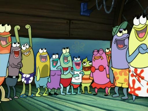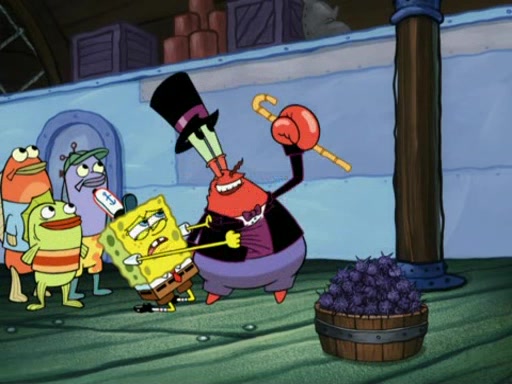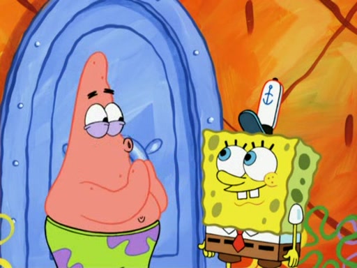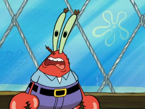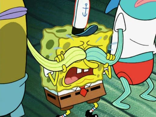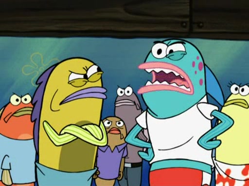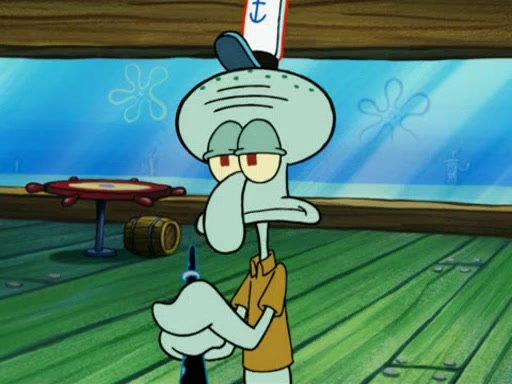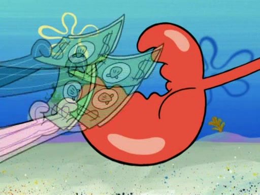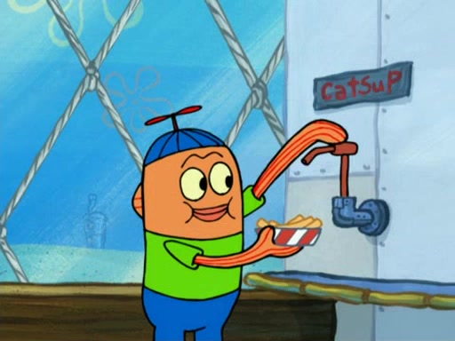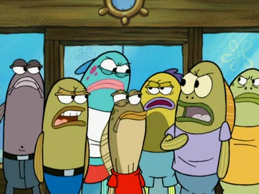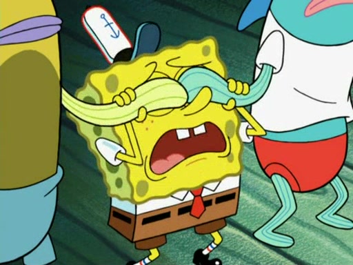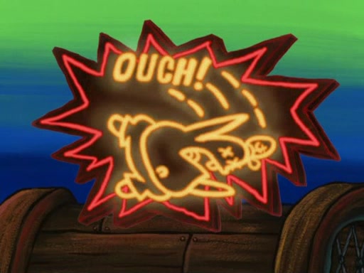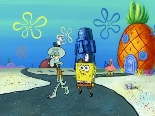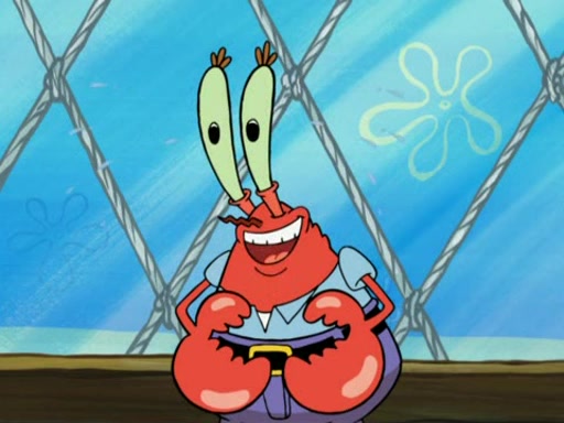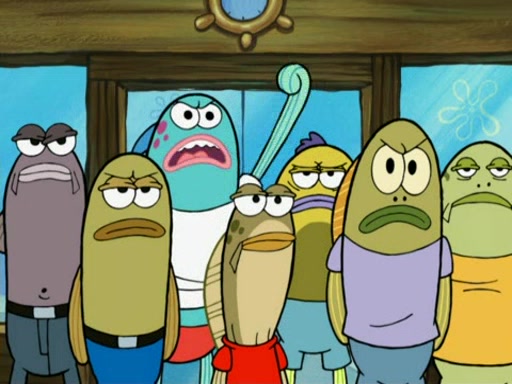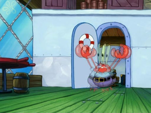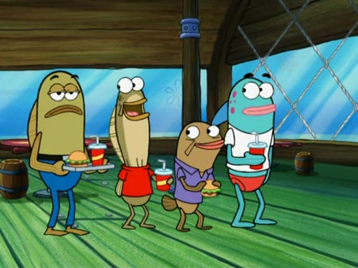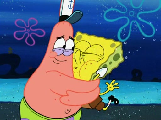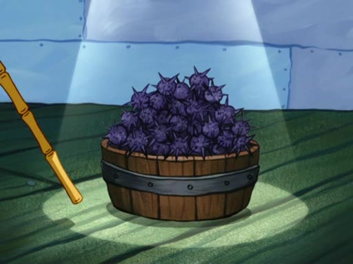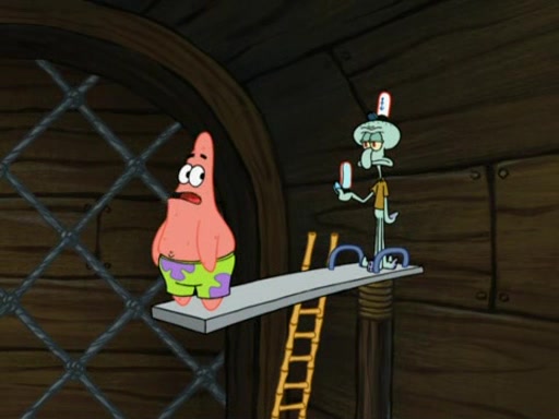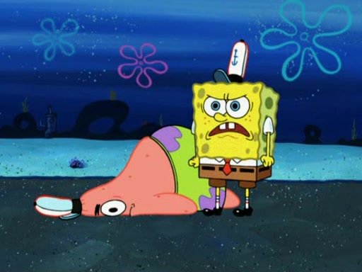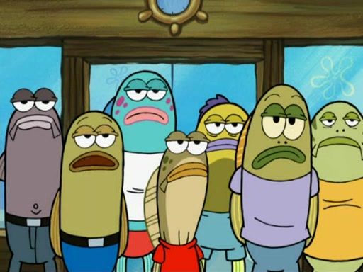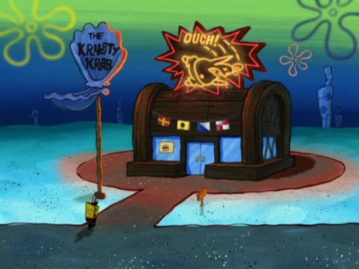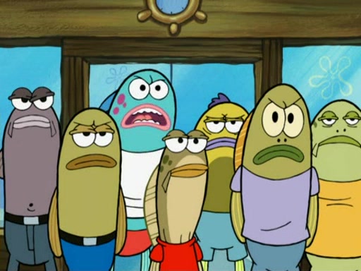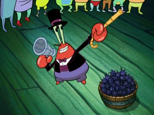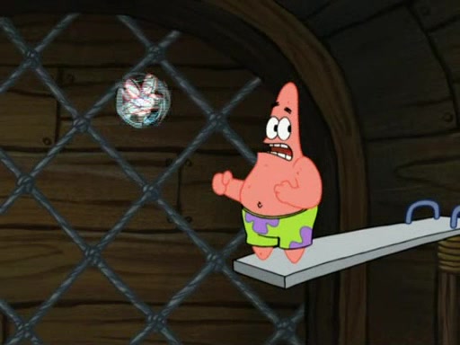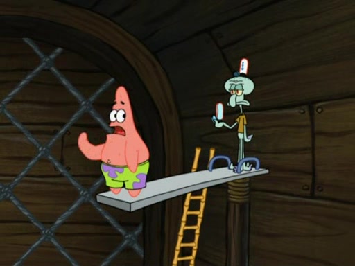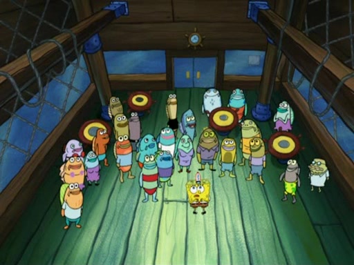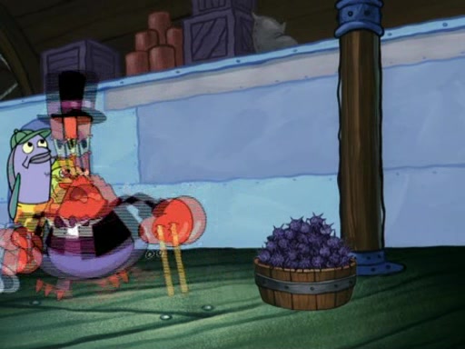 The next day, he is going to fall into a bucket of spiky sea urchins, and he takes his hat off so it will not get damaged, but he then finds himself stuck on the edge. SpongeBob tries to stop him but he falls, right on top of Squidward, who tries to push him, the customers attack Mr. Krabs and steal all of their money back because no-one was hurt. Mr. Krabs then takes the hat back from Patrick, blaming him for it, saying that as long as he stands, he will never wear the hat again. Patrick then leaves the Krusty Krab and goes home sad. In the epilogue, SpongeBob cheers Patrick up, and tells him he can wear his hat anytime he pleases, and so they go back to their normal lives.