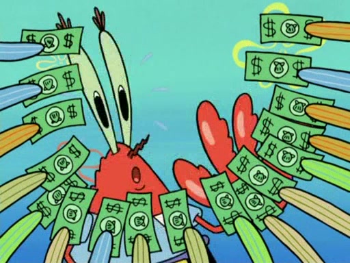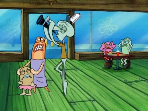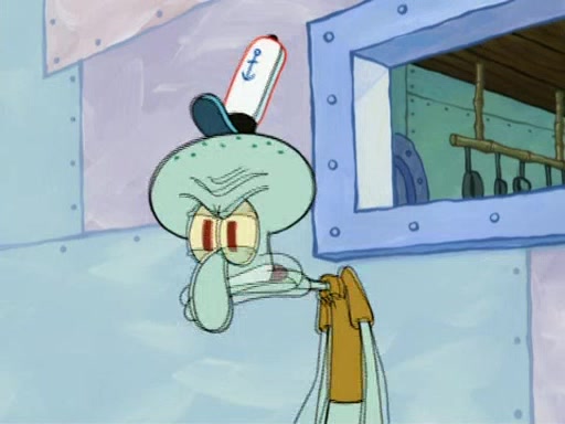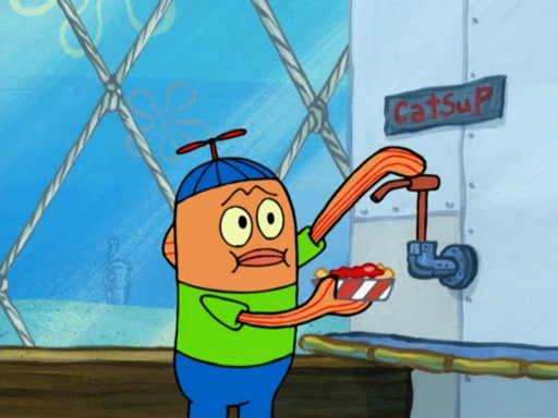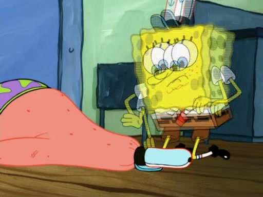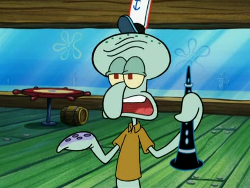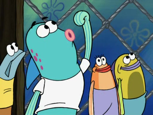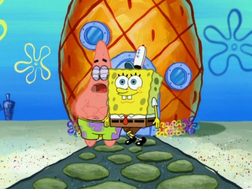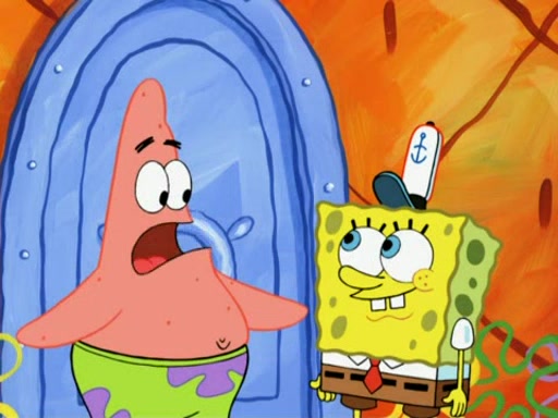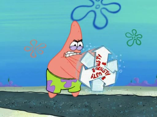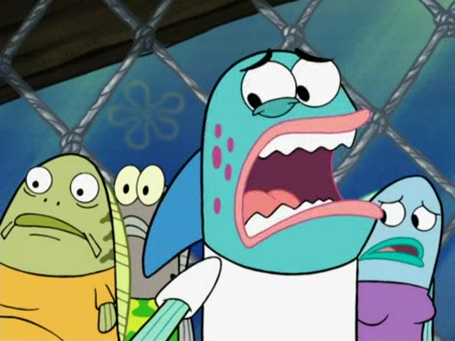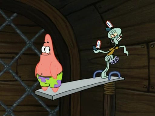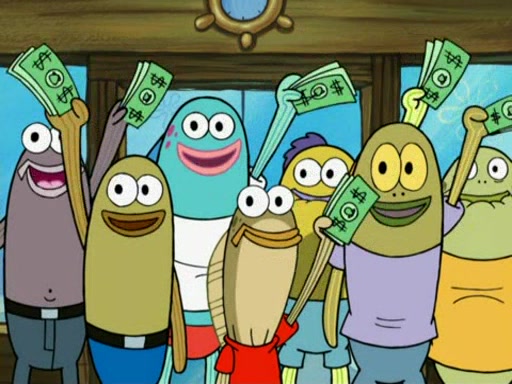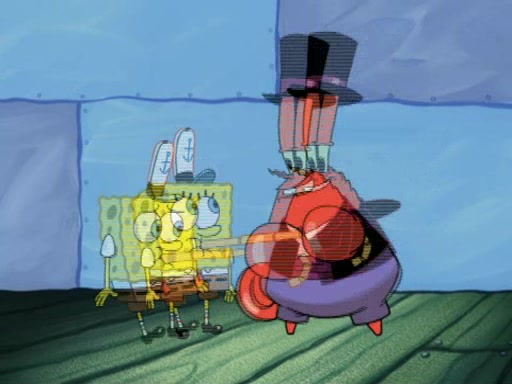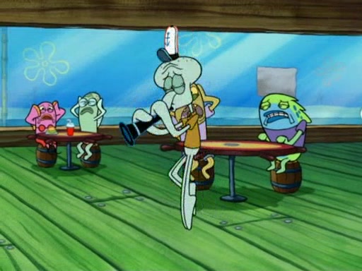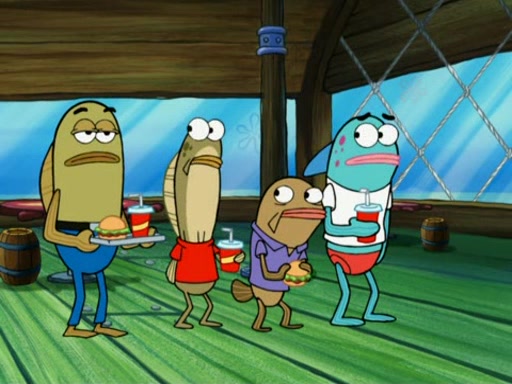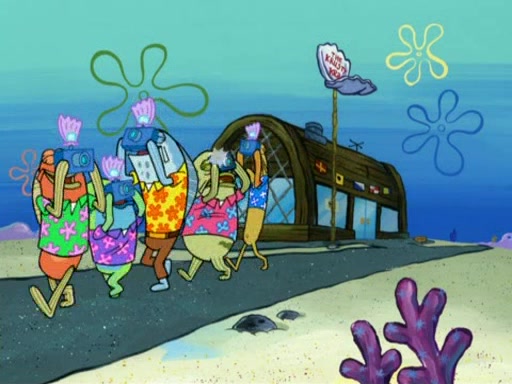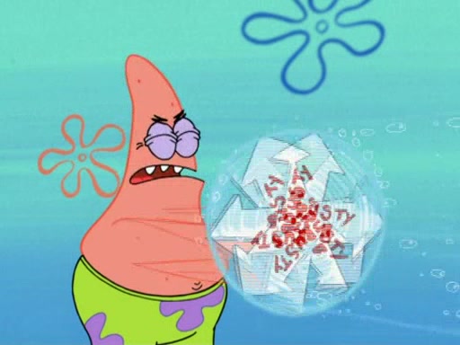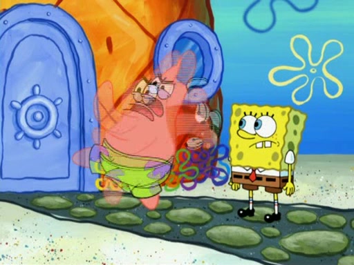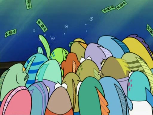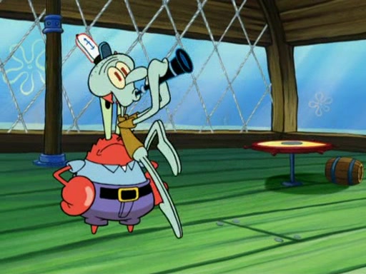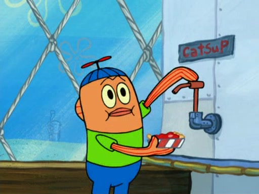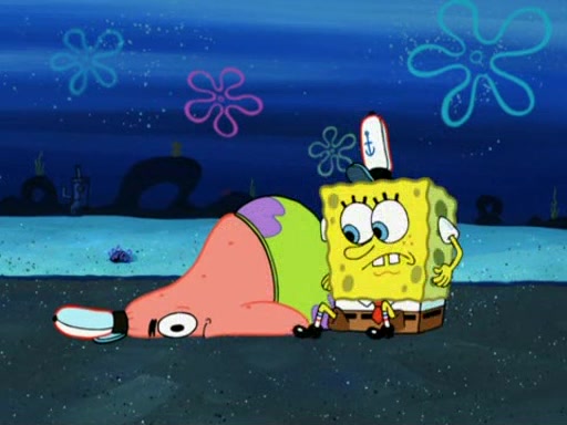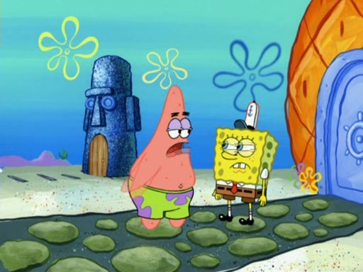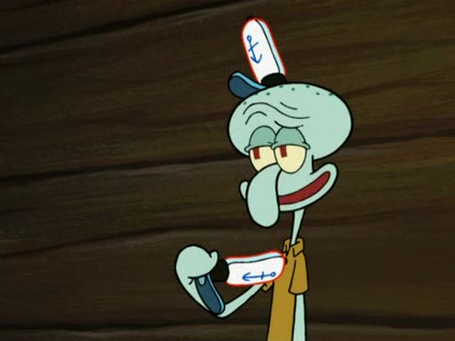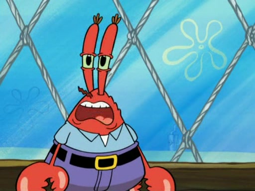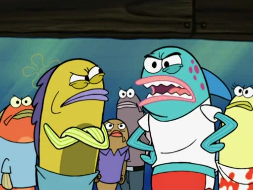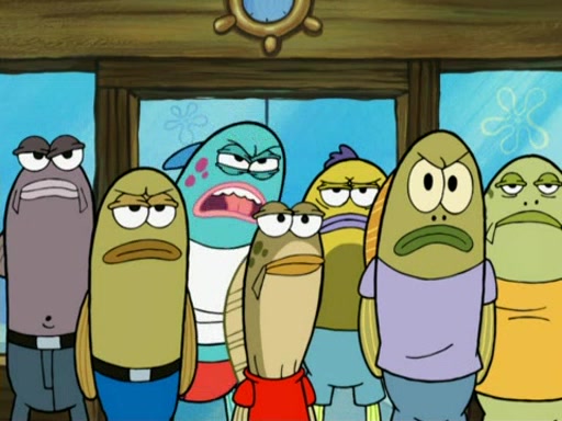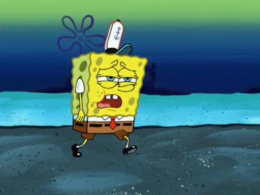 The next day, he is going to fall into a bucket of spiky sea urchins, and he takes his hat off so it will not get damaged, but he then finds himself stuck on the edge. SpongeBob tries to stop him but he falls, right on top of Squidward, who tries to push him, the customers attack Mr. Krabs and steal all of their money back because no-one was hurt. Mr. Krabs then takes the hat back from Patrick, blaming him for it, saying that as long as he stands, he will never wear the hat again. Patrick then leaves the Krusty Krab and goes home sad. In the epilogue, SpongeBob cheers Patrick up, and tells him he can wear his hat anytime he pleases, and so they go back to their normal lives.