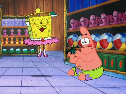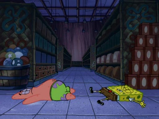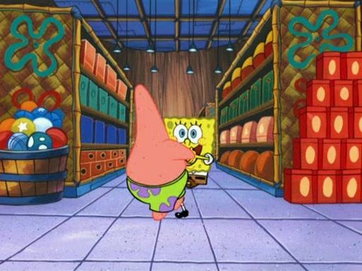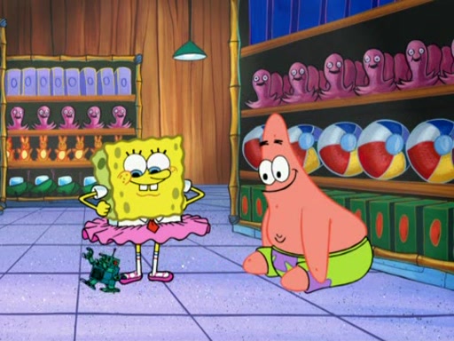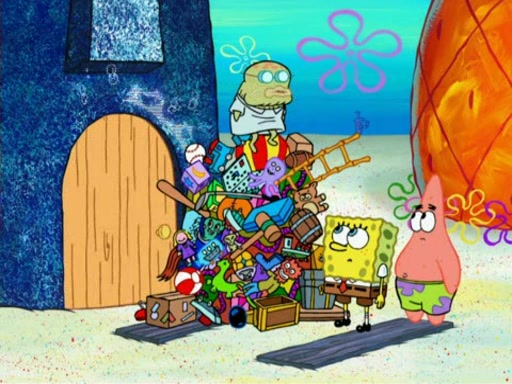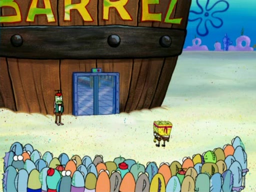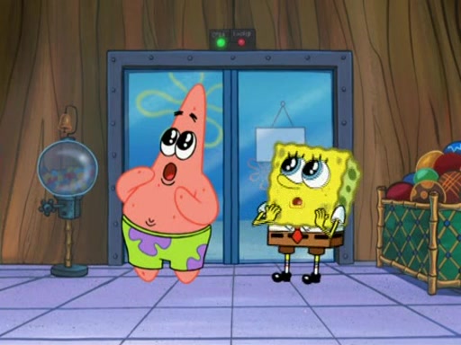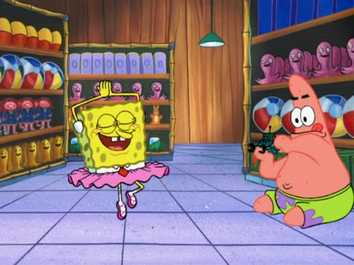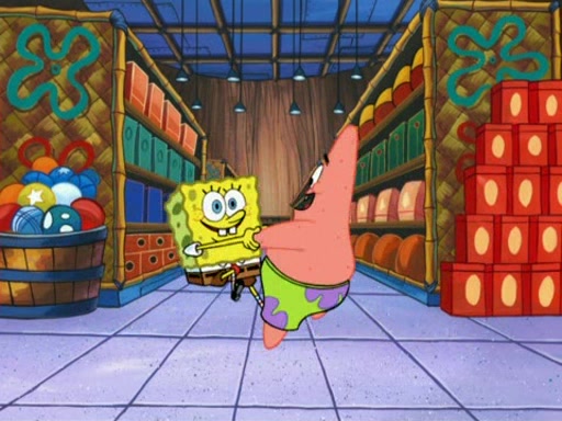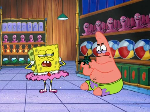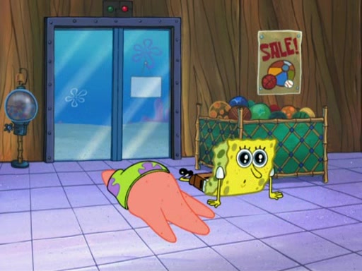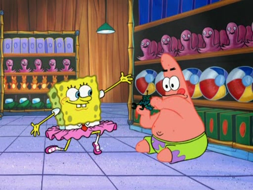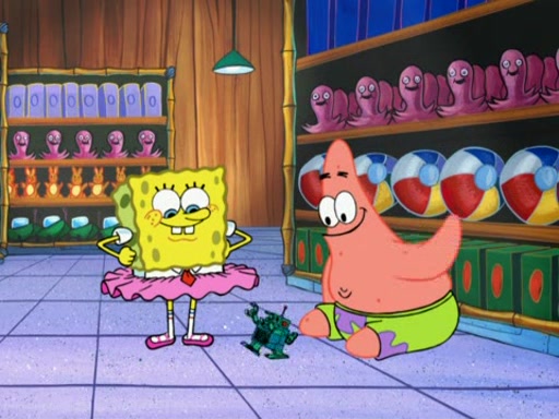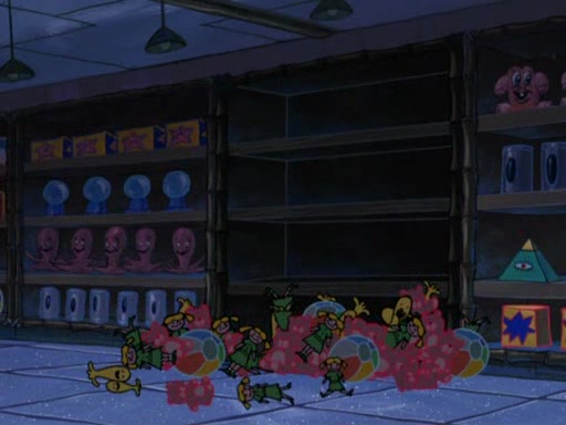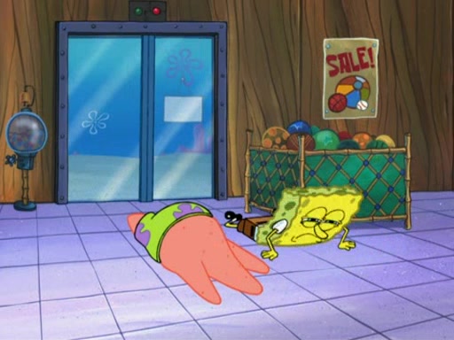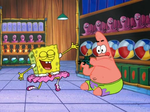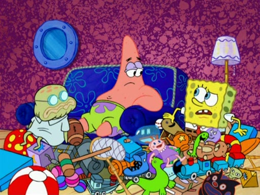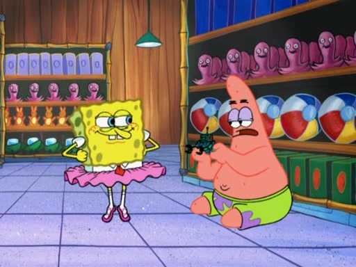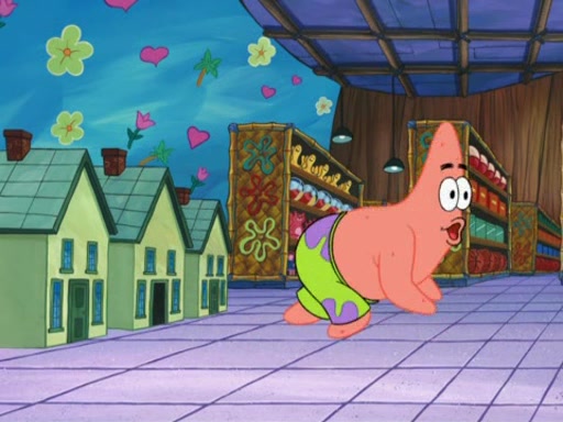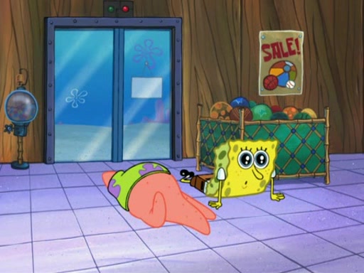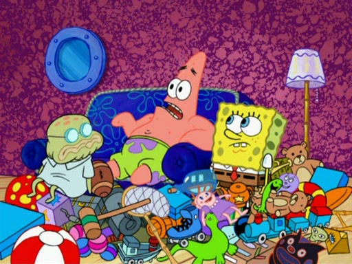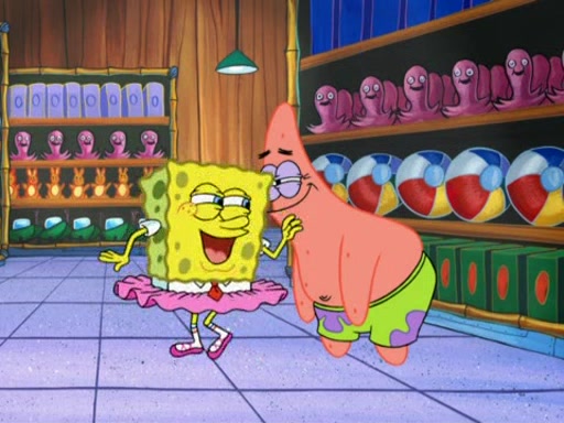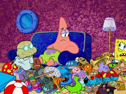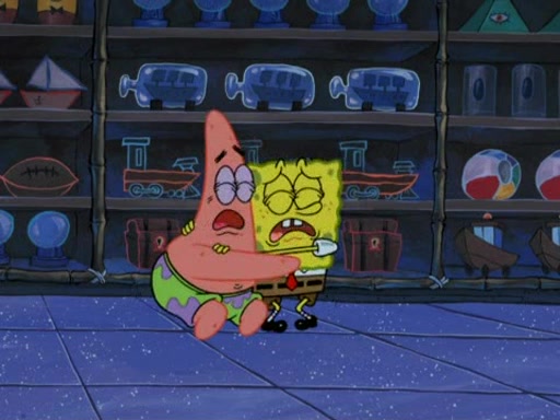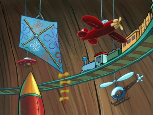 SpongeBob and Patrick are very bored and have nothing to do. SpongeBob walks over to a toy chest and starts rummaging through it, but doesn't find anything that interests him or Patrick. SpongeBob finds a Mermaid-Man toy, but it is unfortunately chewed up. It then reveals that they were in Squidward's house, and he kicks them out. Then they start walking, trying to find something to do. While they are walking, they find some signs introducing something. They follow the signs to a newly opened Toy Barrel. At first, it isn't there, which makes the two cry. It appears soon afterward, courtesy of a crane. The construction worker throws Patrick inside, and SpongeBob throws himself. They spend the entire day singing songs. To their disappointment, the Toy Barrel closes just after they finish singing. Patrick formulates a plan to hide in the dollhouses when the police check the toy store so they can have the Toy Barrel all to themselves. They become jolly until the lights turn off, which scares the duo. Soon, they see a shadow coming, so SpongeBob decides to fight back. They dress up like soldiers, preparing to fight the shadow. This does them no good. It was just Patrick's old wind-up robot. Just as the store is about to open, the two rush outside. The episode ends with Patrick saying “Hey! It’s open! I love toys!"
