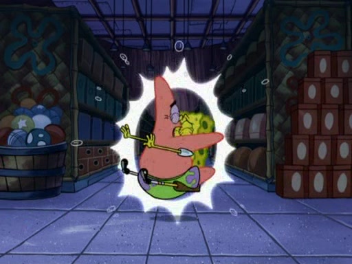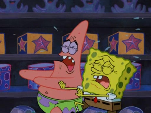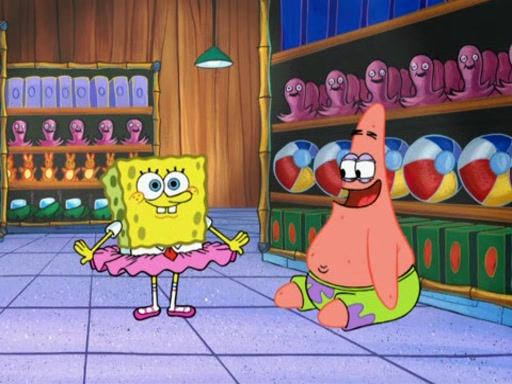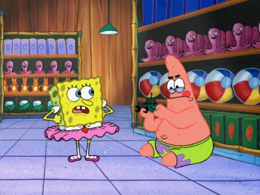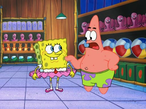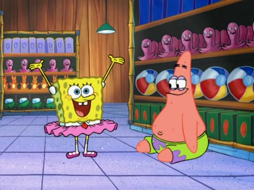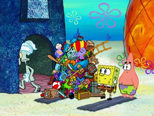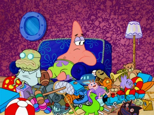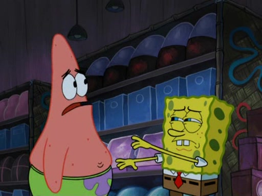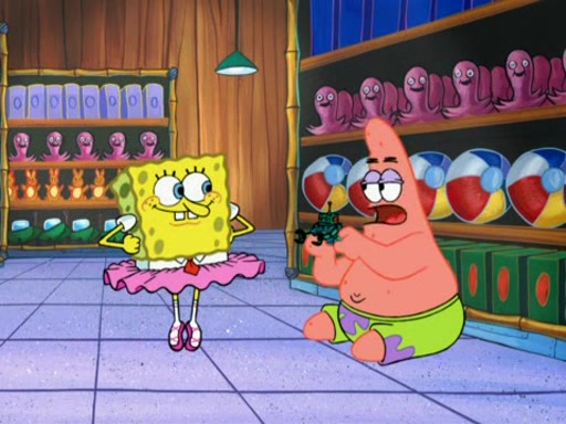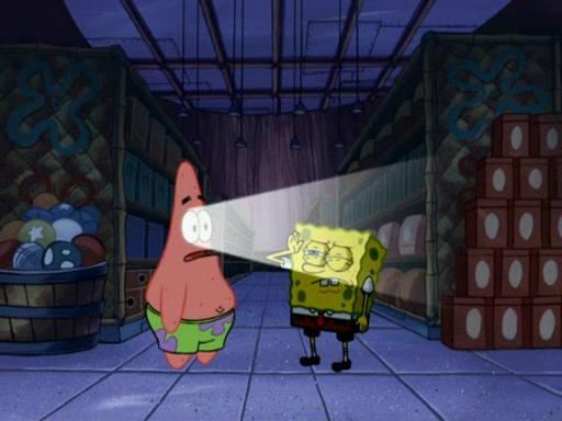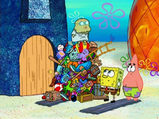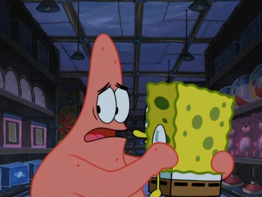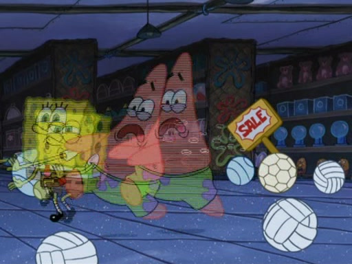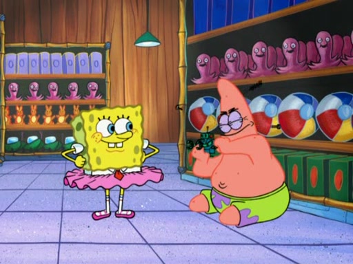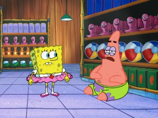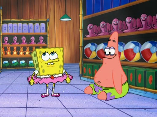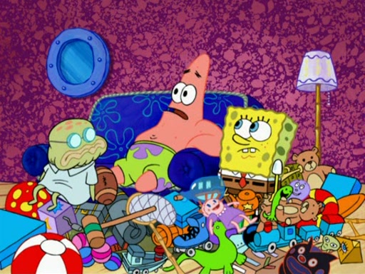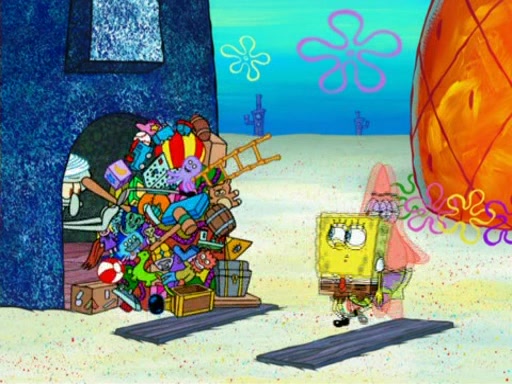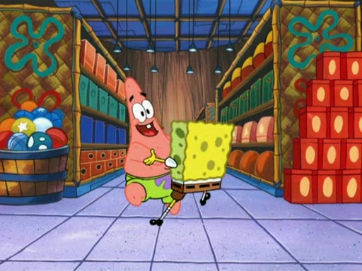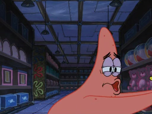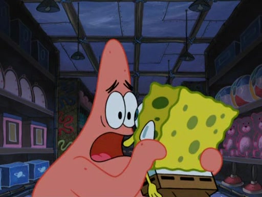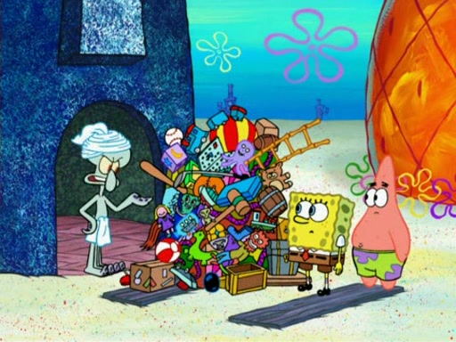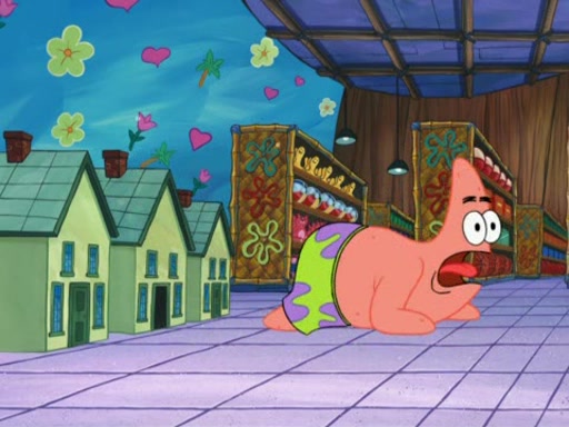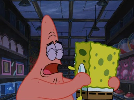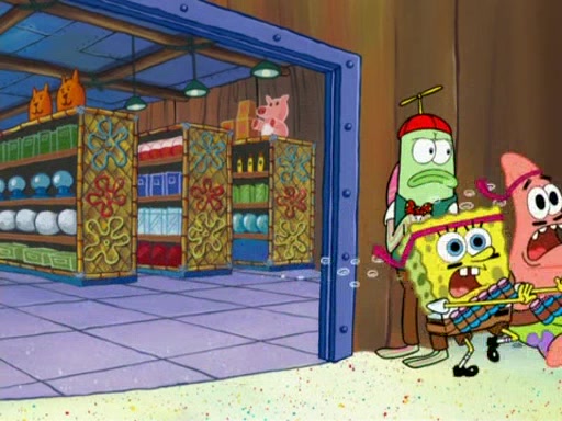 SpongeBob and Patrick are very bored and have nothing to do. SpongeBob walks over to a toy chest and starts rummaging through it, but doesn't find anything that interests him or Patrick. SpongeBob finds a Mermaid-Man toy, but it is unfortunately chewed up. It then reveals that they were in Squidward's house, and he kicks them out. Then they start walking, trying to find something to do. While they are walking, they find some signs introducing something. They follow the signs to a newly opened Toy Barrel. At first, it isn't there, which makes the two cry. It appears soon afterward, courtesy of a crane. The construction worker throws Patrick inside, and SpongeBob throws himself. They spend the entire day singing songs. To their disappointment, the Toy Barrel closes just after they finish singing. Patrick formulates a plan to hide in the dollhouses when the police check the toy store so they can have the Toy Barrel all to themselves. They become jolly until the lights turn off, which scares the duo. Soon, they see a shadow coming, so SpongeBob decides to fight back. They dress up like soldiers, preparing to fight the shadow. This does them no good. It was just Patrick's old wind-up robot. Just as the store is about to open, the two rush outside. The episode ends with Patrick saying “Hey! It’s open! I love toys!"