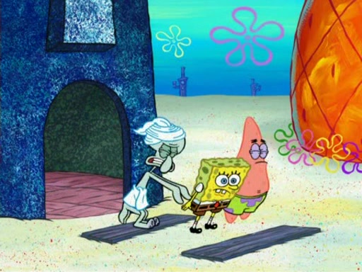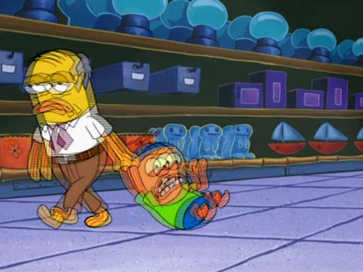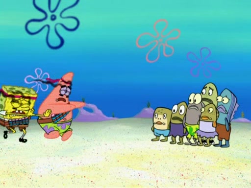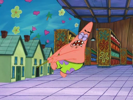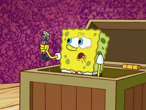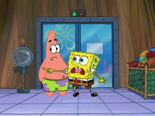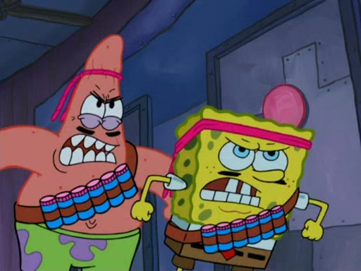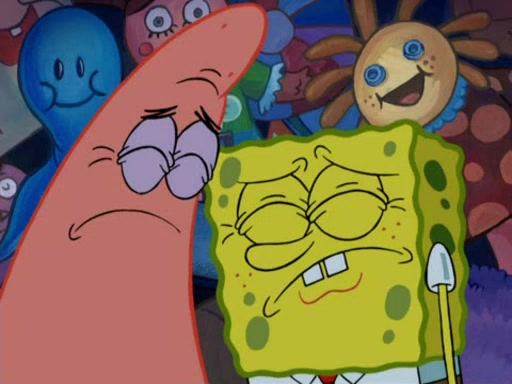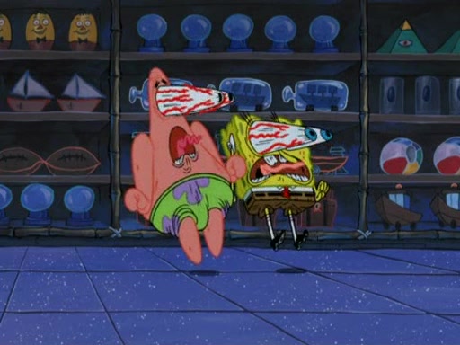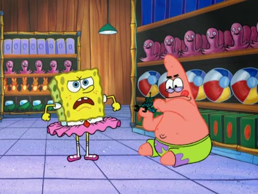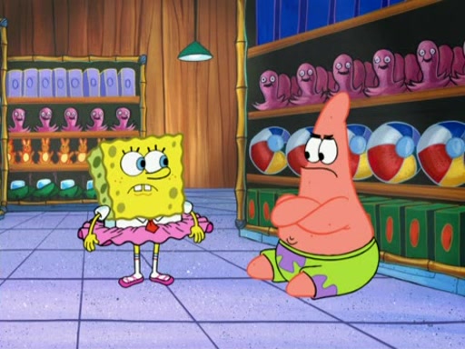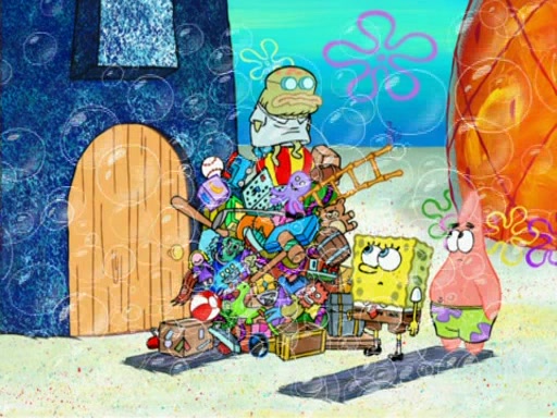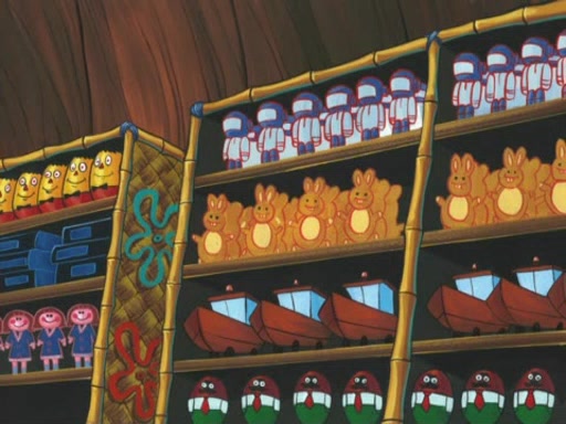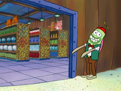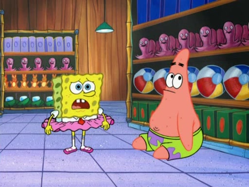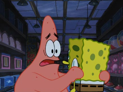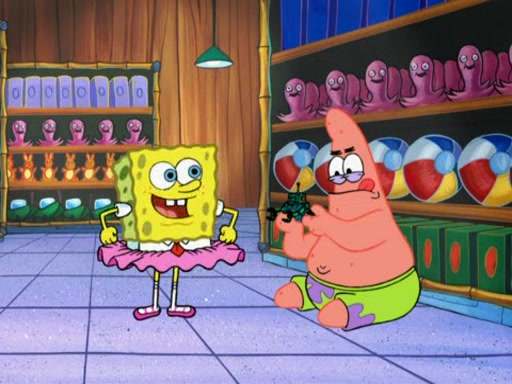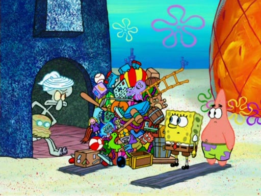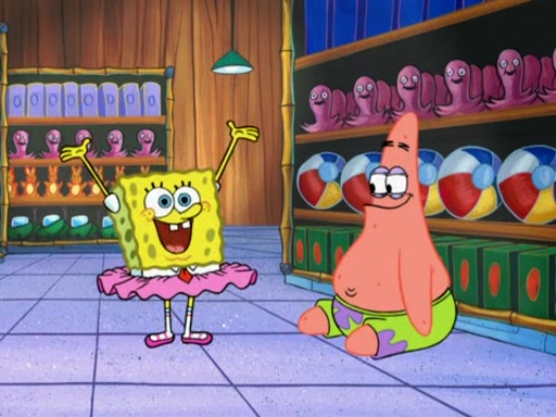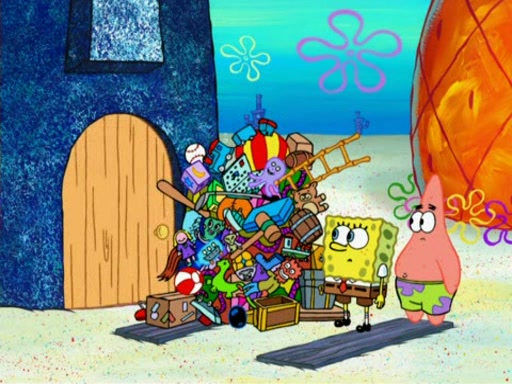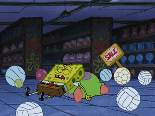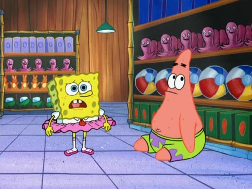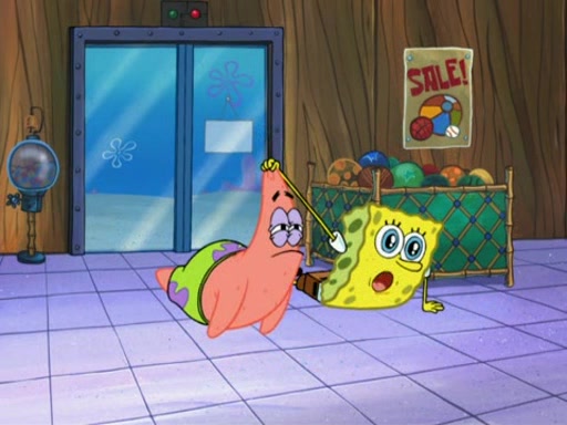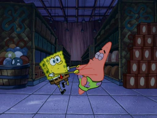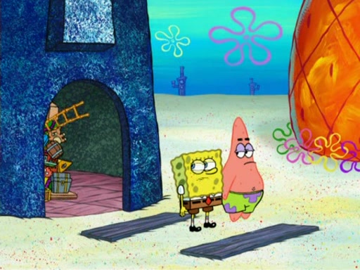 SpongeBob and Patrick are very bored and have nothing to do. SpongeBob walks over to a toy chest and starts rummaging through it, but doesn't find anything that interests him or Patrick. SpongeBob finds a Mermaid-Man toy, but it is unfortunately chewed up. It then reveals that they were in Squidward's house, and he kicks them out. Then they start walking, trying to find something to do. While they are walking, they find some signs introducing something. They follow the signs to a newly opened Toy Barrel. At first, it isn't there, which makes the two cry. It appears soon afterward, courtesy of a crane. The construction worker throws Patrick inside, and SpongeBob throws himself. They spend the entire day singing songs. To their disappointment, the Toy Barrel closes just after they finish singing. Patrick formulates a plan to hide in the dollhouses when the police check the toy store so they can have the Toy Barrel all to themselves. They become jolly until the lights turn off, which scares the duo. Soon, they see a shadow coming, so SpongeBob decides to fight back. They dress up like soldiers, preparing to fight the shadow. This does them no good. It was just Patrick's old wind-up robot. Just as the store is about to open, the two rush outside. The episode ends with Patrick saying “Hey! It’s open! I love toys!"