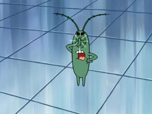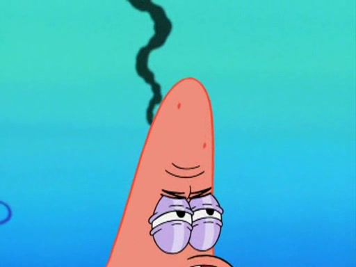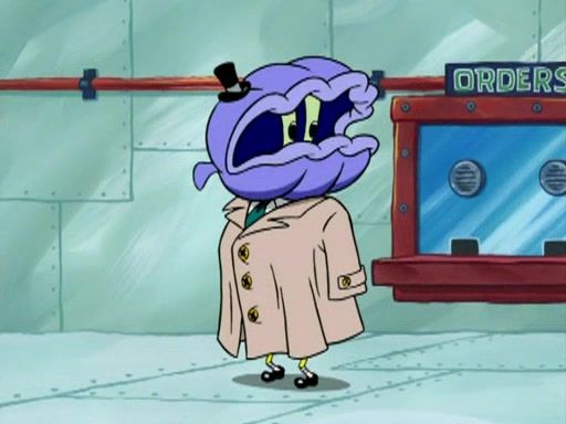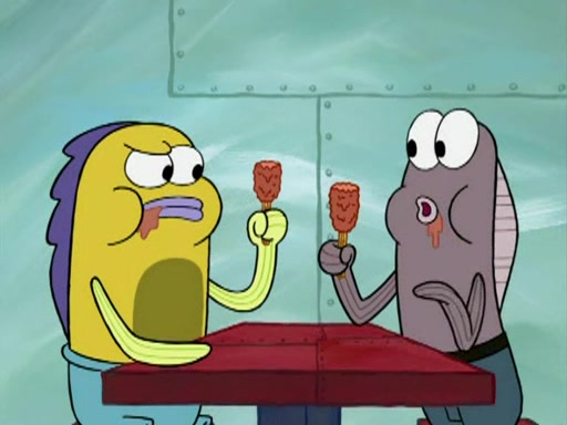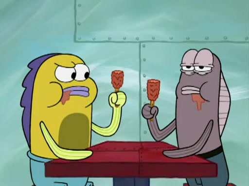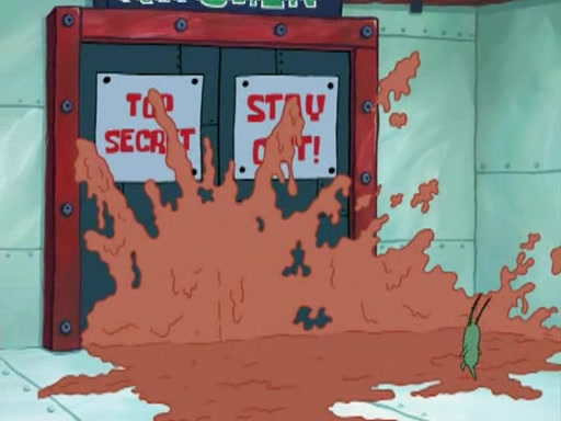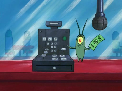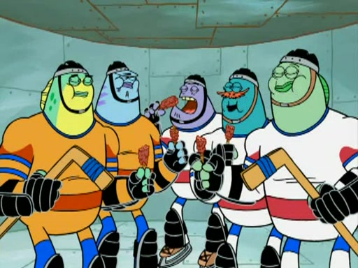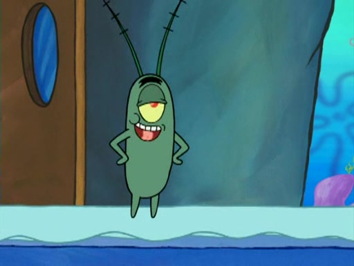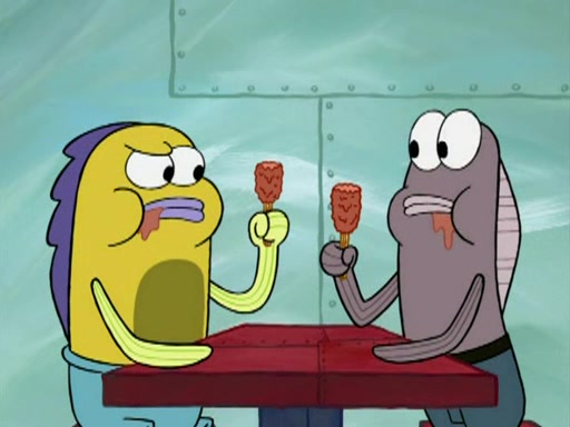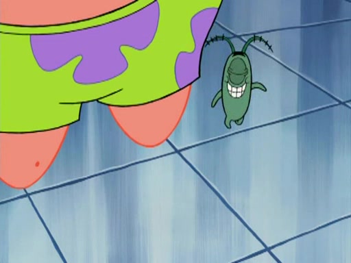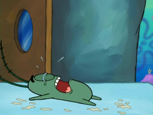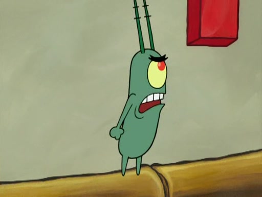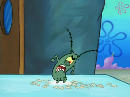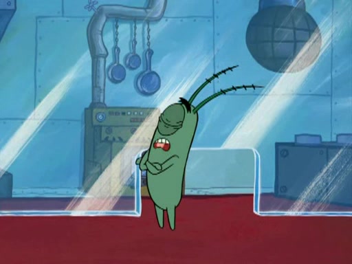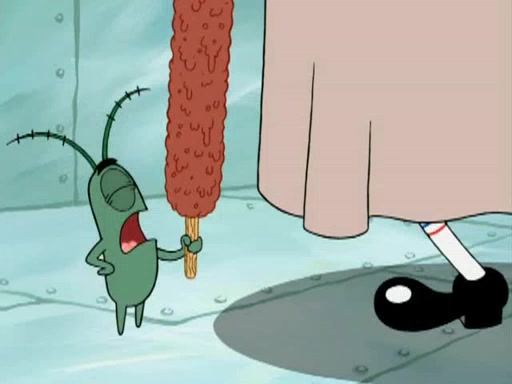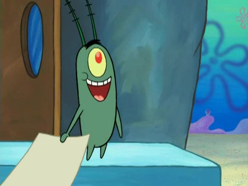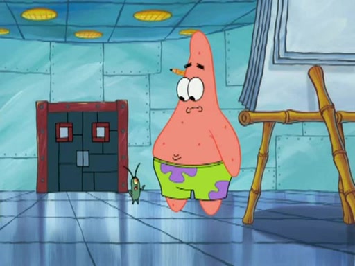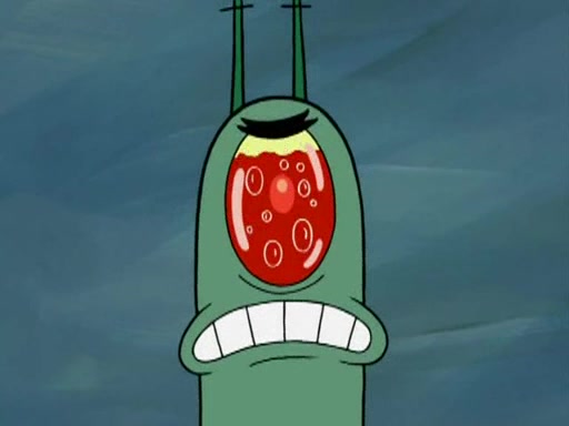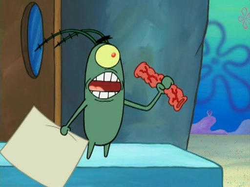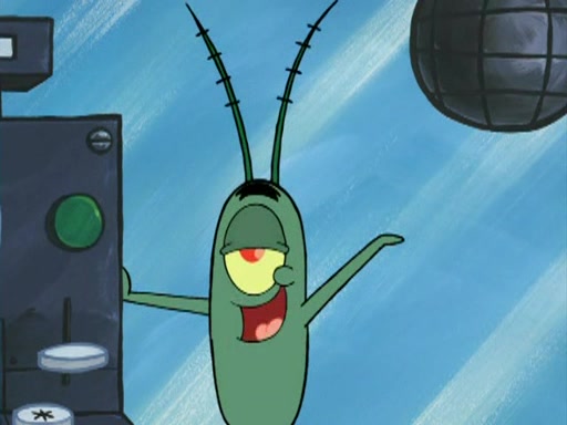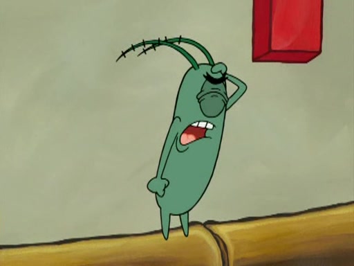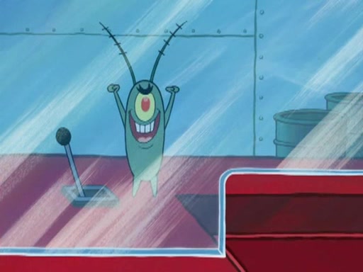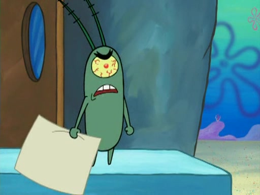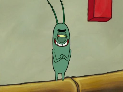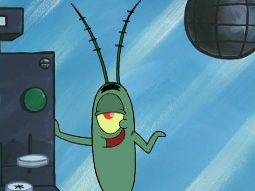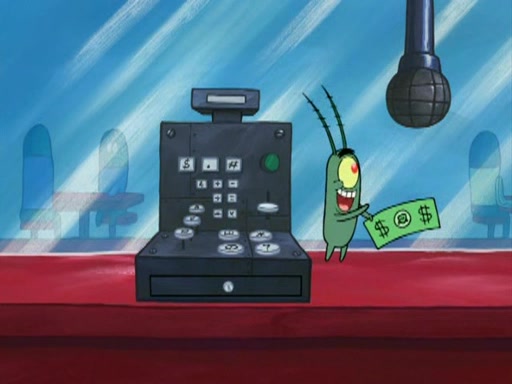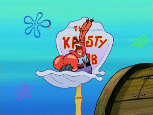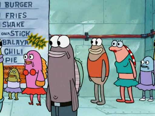 A few days later, people are getting bored of the slogan, so Plankton and Patrick hold a board meeting. Patrick comes up with a new slogan three days later, changing it to "FUM IS CHUM!" This brings back Plankton's customers, much to the chagrin of Mr. Krabs. Business is so large that Plankton gets into the restaurant magazines and even a Canadian hockey team shows up to eat. Patrick then decides the resign from his position as advertising director because he is "burnt out" - there is literally a hole burned into the back of his head. Plankton protests, but then bluffs to make Patrick believe that he is disposable, and not necessarily to keep customers eating at the Chum Bucket. During his rant, Plankton accidentally insults his customers over the intercom that he had installed by the cash register earlier to taunt Mr. Krabs. His customers hear him calling them "buffoons, morons, the dumbest of the dumb" among other things, which causes all his customers to abandon their chum in anger. Plankton then gets beaten up by the hockey team. At the end, everyone sees Patrick finishing a sign with the Krusty Krab's new slogan, "KRABBY PATTIES ARE FUM!" and everyone returns to the Krusty Krab.