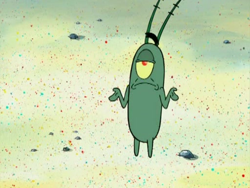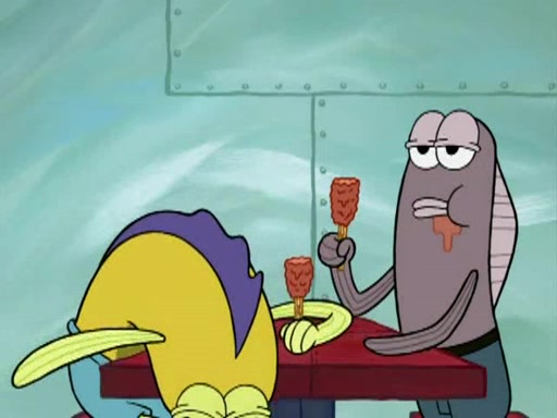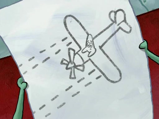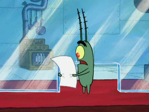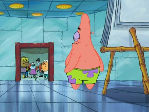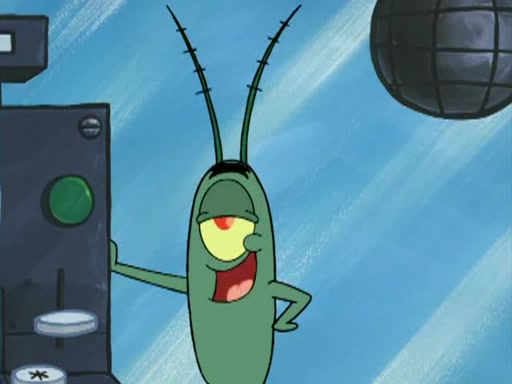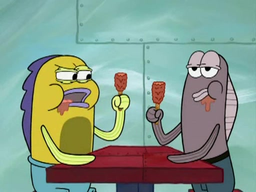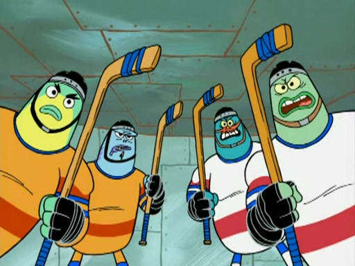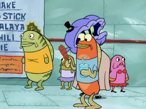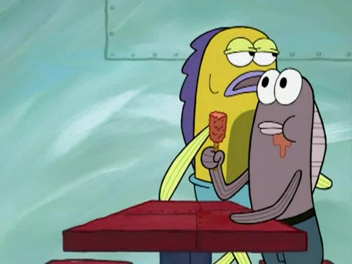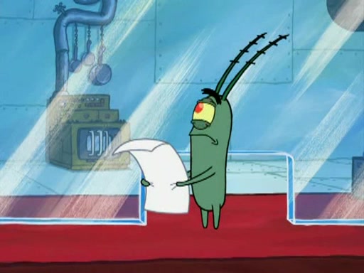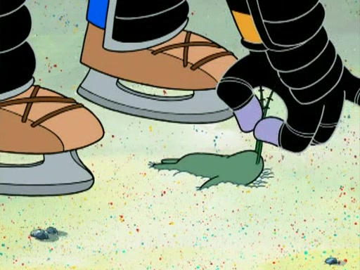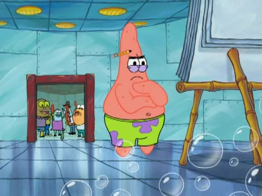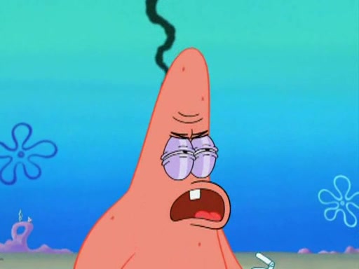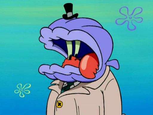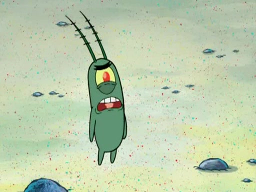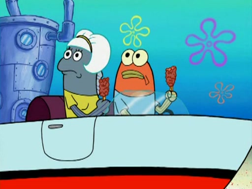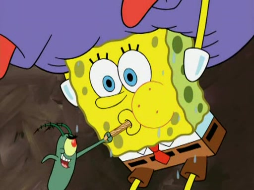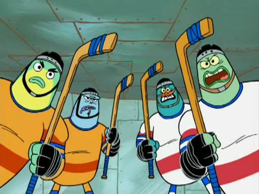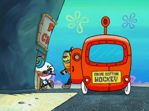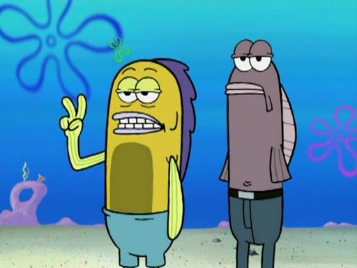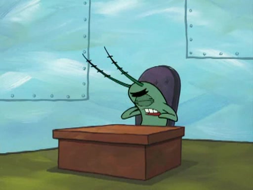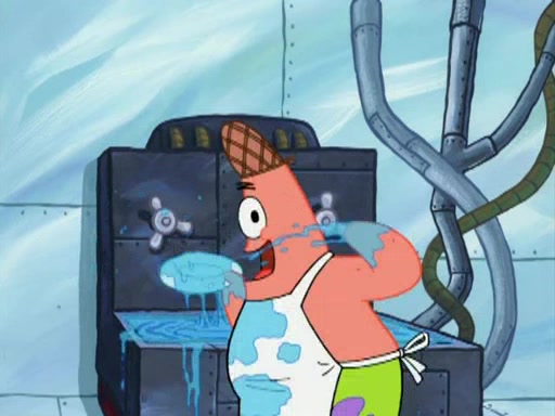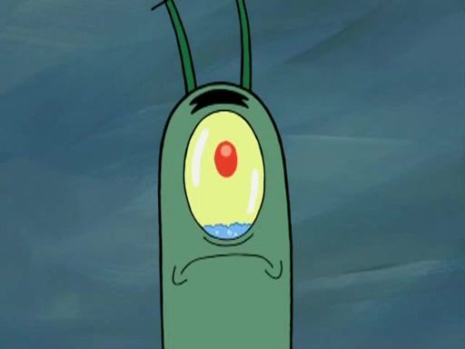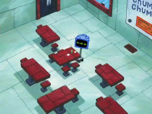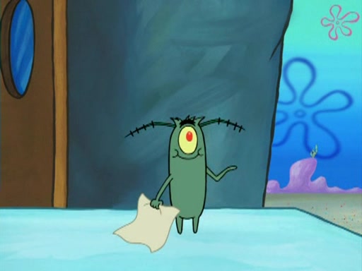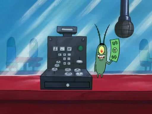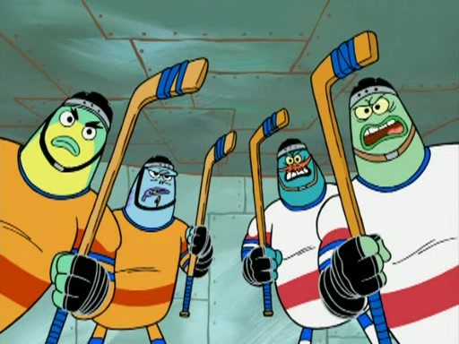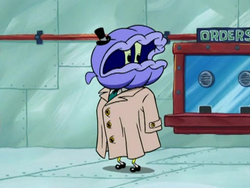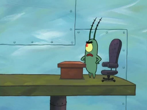 A few days later, people are getting bored of the slogan, so Plankton and Patrick hold a board meeting. Patrick comes up with a new slogan three days later, changing it to "FUM IS CHUM!" This brings back Plankton's customers, much to the chagrin of Mr. Krabs. Business is so large that Plankton gets into the restaurant magazines and even a Canadian hockey team shows up to eat. Patrick then decides the resign from his position as advertising director because he is "burnt out" - there is literally a hole burned into the back of his head. Plankton protests, but then bluffs to make Patrick believe that he is disposable, and not necessarily to keep customers eating at the Chum Bucket. During his rant, Plankton accidentally insults his customers over the intercom that he had installed by the cash register earlier to taunt Mr. Krabs. His customers hear him calling them "buffoons, morons, the dumbest of the dumb" among other things, which causes all his customers to abandon their chum in anger. Plankton then gets beaten up by the hockey team. At the end, everyone sees Patrick finishing a sign with the Krusty Krab's new slogan, "KRABBY PATTIES ARE FUM!" and everyone returns to the Krusty Krab.