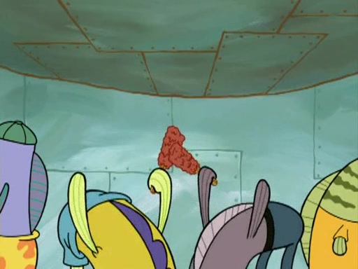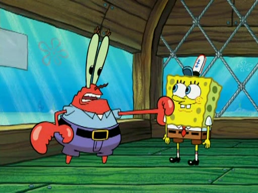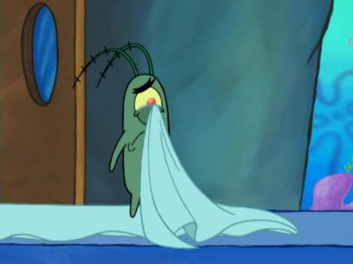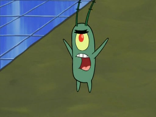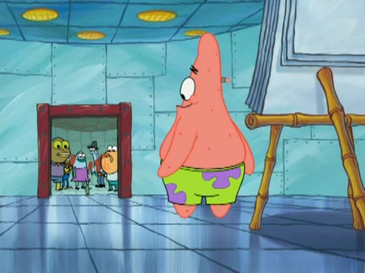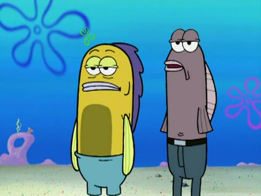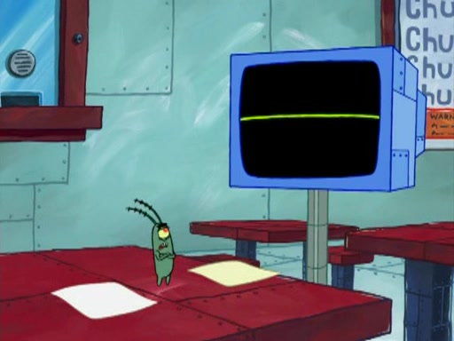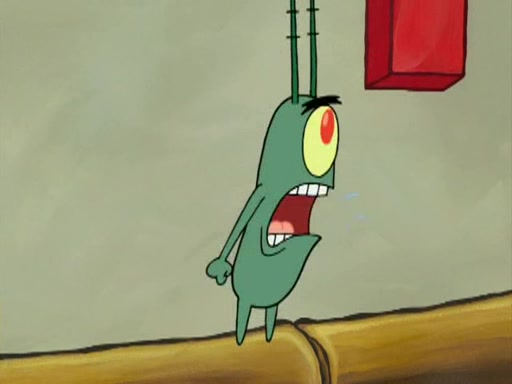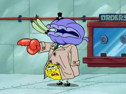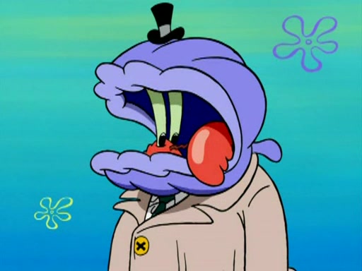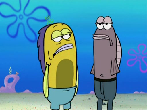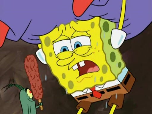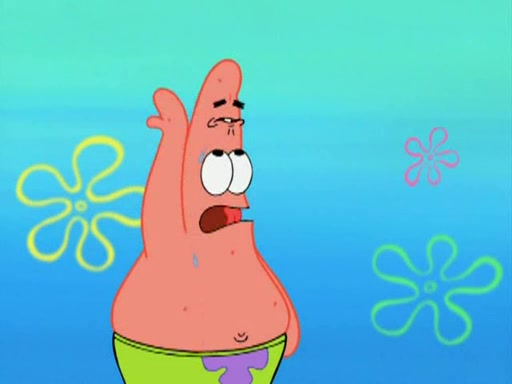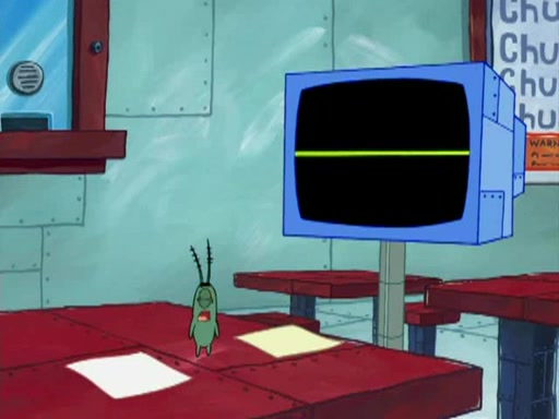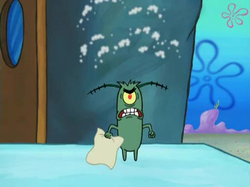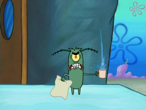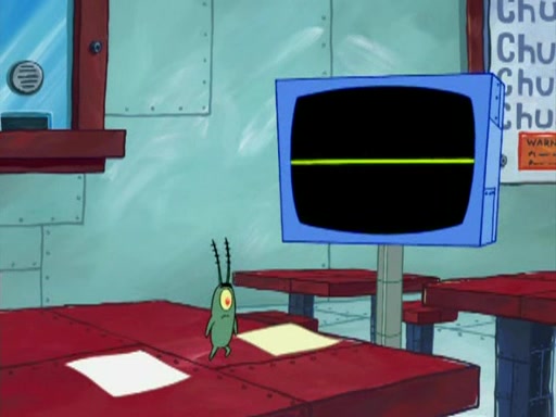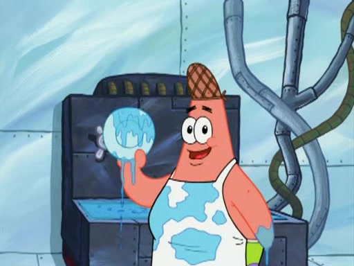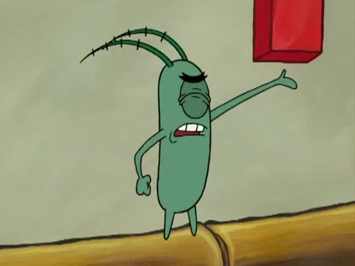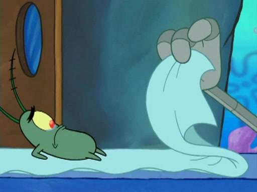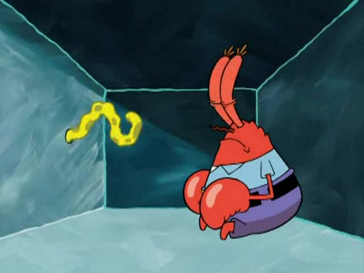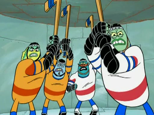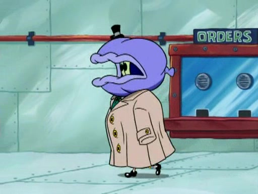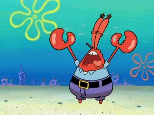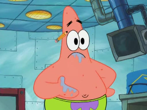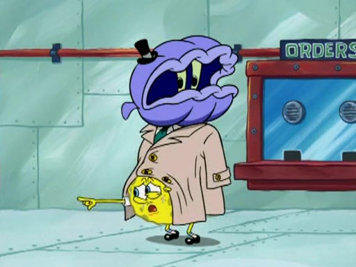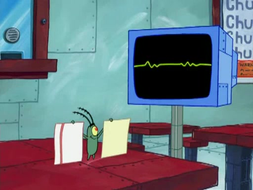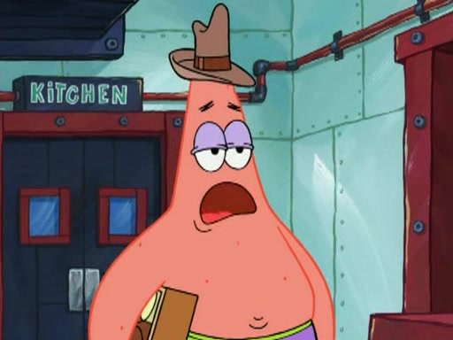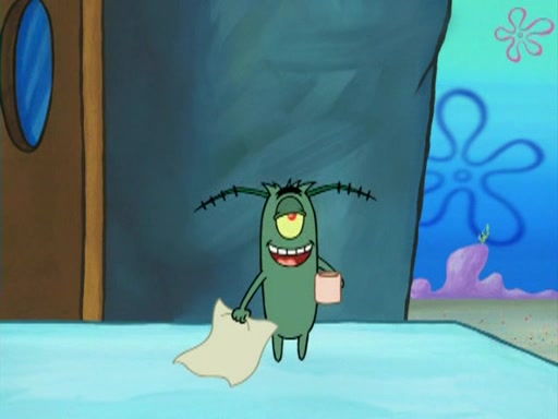 A few days later, people are getting bored of the slogan, so Plankton and Patrick hold a board meeting. Patrick comes up with a new slogan three days later, changing it to "FUM IS CHUM!" This brings back Plankton's customers, much to the chagrin of Mr. Krabs. Business is so large that Plankton gets into the restaurant magazines and even a Canadian hockey team shows up to eat. Patrick then decides the resign from his position as advertising director because he is "burnt out" - there is literally a hole burned into the back of his head. Plankton protests, but then bluffs to make Patrick believe that he is disposable, and not necessarily to keep customers eating at the Chum Bucket. During his rant, Plankton accidentally insults his customers over the intercom that he had installed by the cash register earlier to taunt Mr. Krabs. His customers hear him calling them "buffoons, morons, the dumbest of the dumb" among other things, which causes all his customers to abandon their chum in anger. Plankton then gets beaten up by the hockey team. At the end, everyone sees Patrick finishing a sign with the Krusty Krab's new slogan, "KRABBY PATTIES ARE FUM!" and everyone returns to the Krusty Krab.