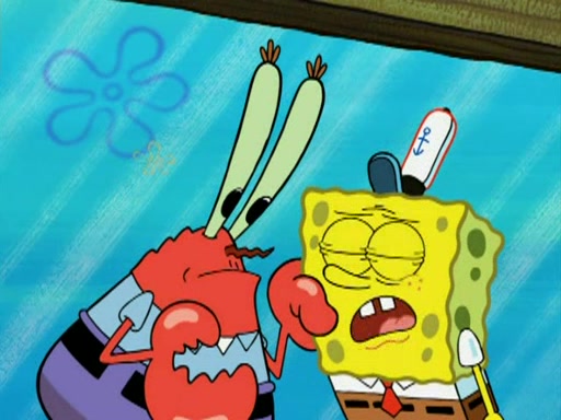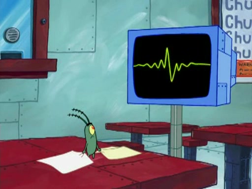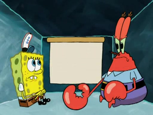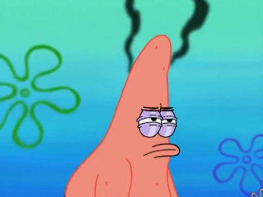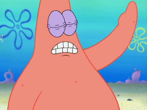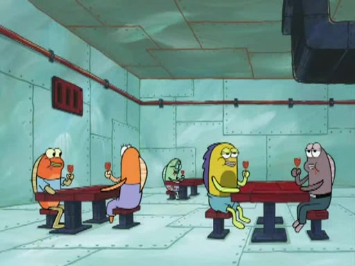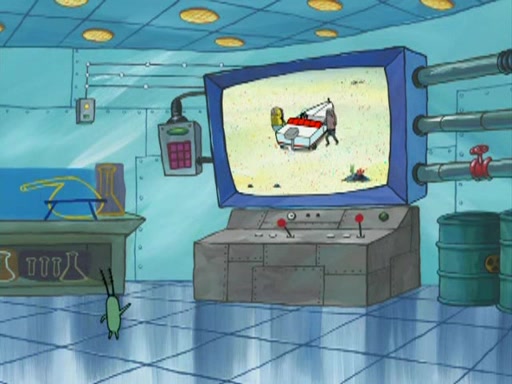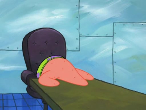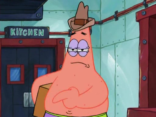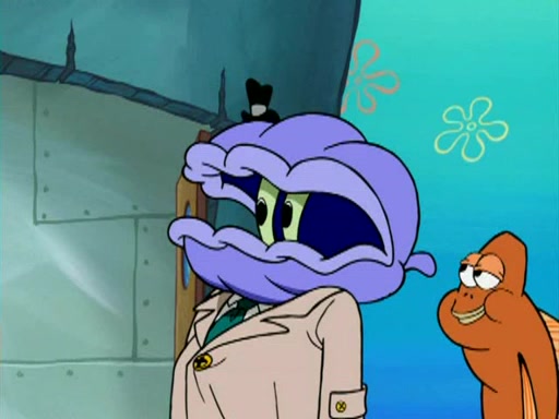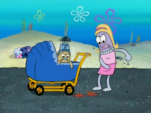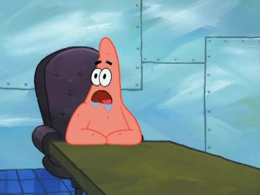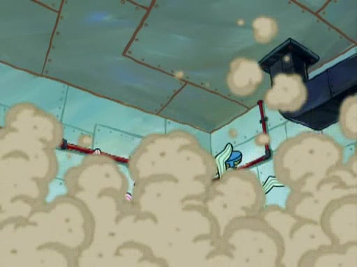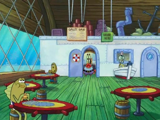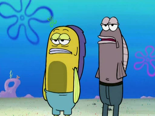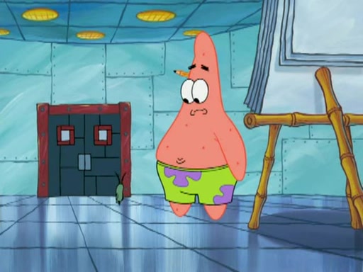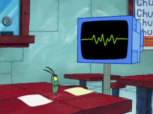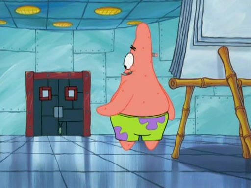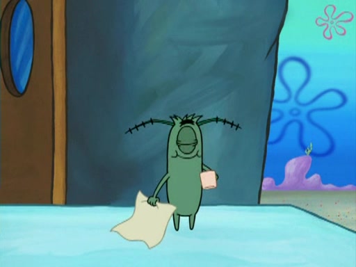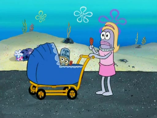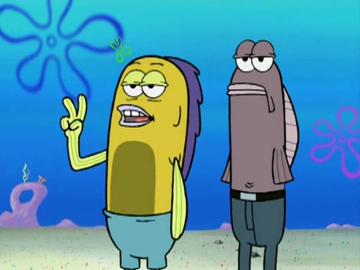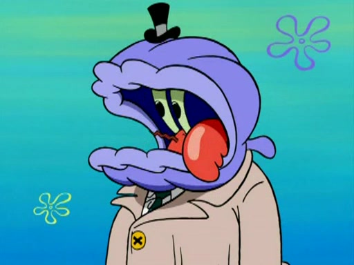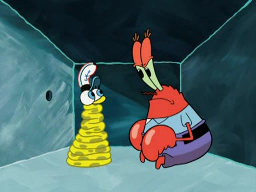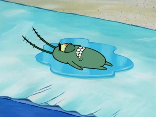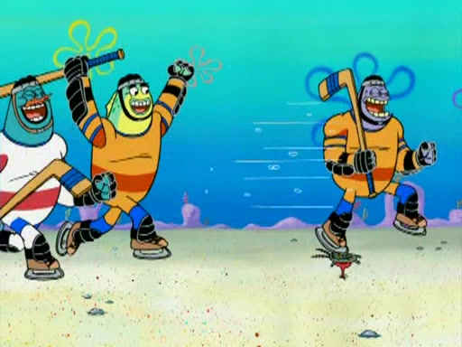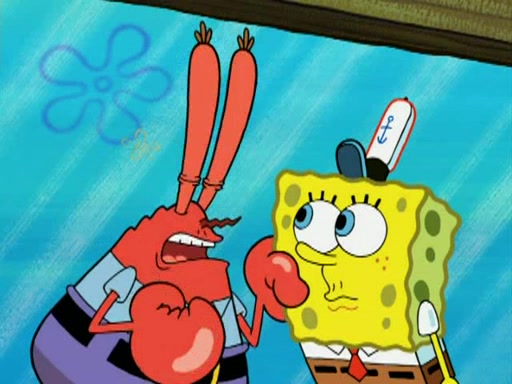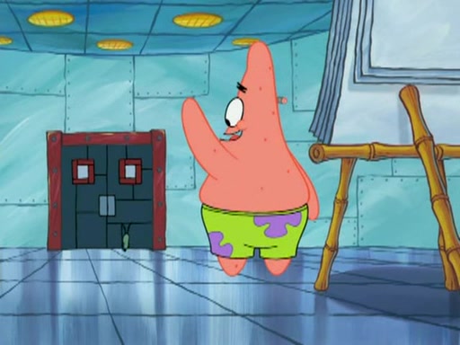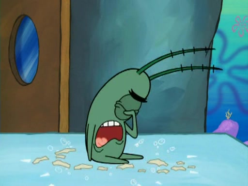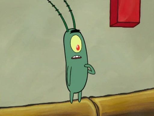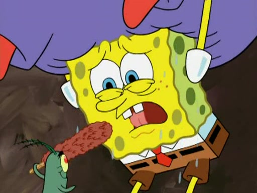 A few days later, people are getting bored of the slogan, so Plankton and Patrick hold a board meeting. Patrick comes up with a new slogan three days later, changing it to "FUM IS CHUM!" This brings back Plankton's customers, much to the chagrin of Mr. Krabs. Business is so large that Plankton gets into the restaurant magazines and even a Canadian hockey team shows up to eat. Patrick then decides the resign from his position as advertising director because he is "burnt out" - there is literally a hole burned into the back of his head. Plankton protests, but then bluffs to make Patrick believe that he is disposable, and not necessarily to keep customers eating at the Chum Bucket. During his rant, Plankton accidentally insults his customers over the intercom that he had installed by the cash register earlier to taunt Mr. Krabs. His customers hear him calling them "buffoons, morons, the dumbest of the dumb" among other things, which causes all his customers to abandon their chum in anger. Plankton then gets beaten up by the hockey team. At the end, everyone sees Patrick finishing a sign with the Krusty Krab's new slogan, "KRABBY PATTIES ARE FUM!" and everyone returns to the Krusty Krab.