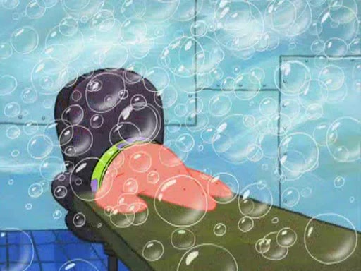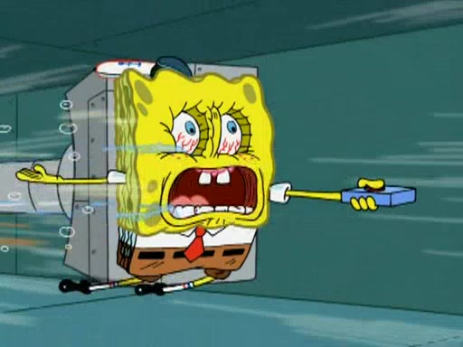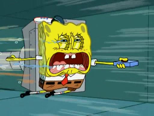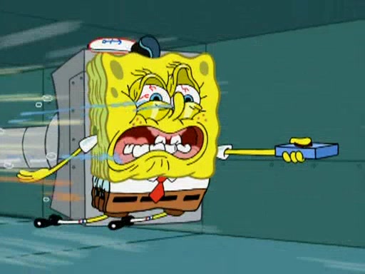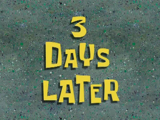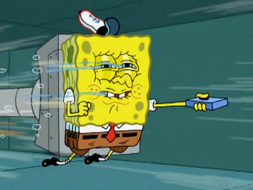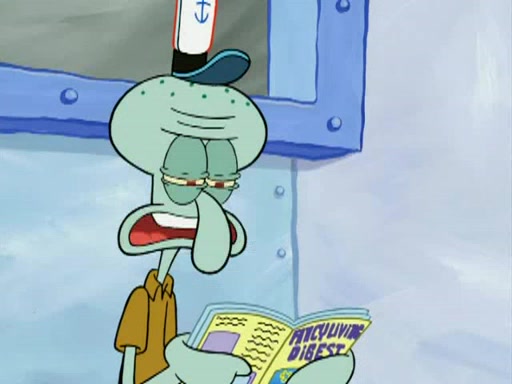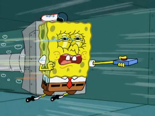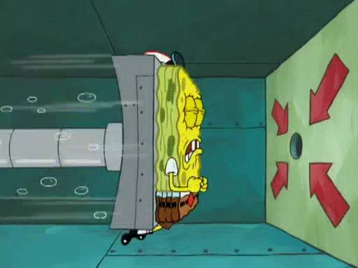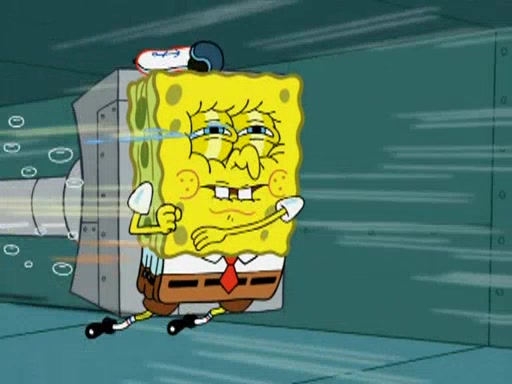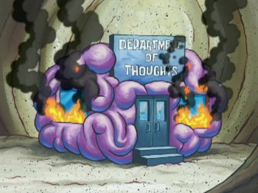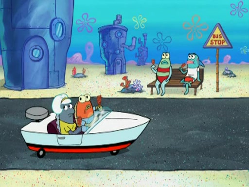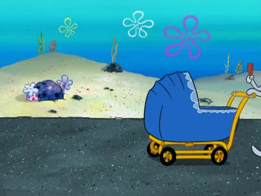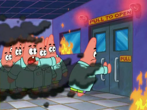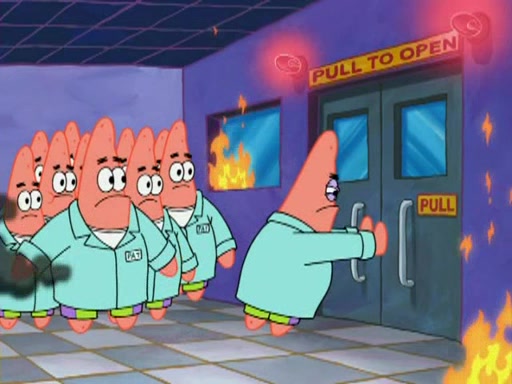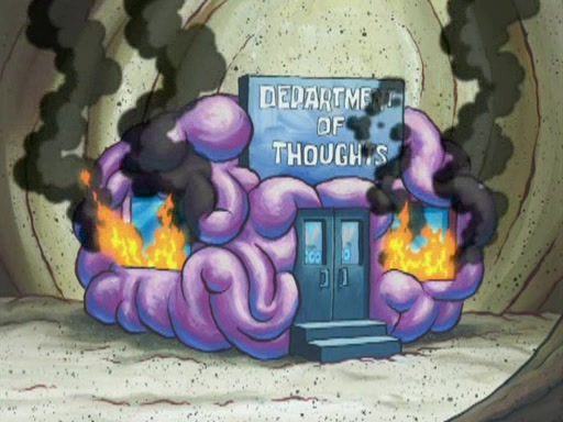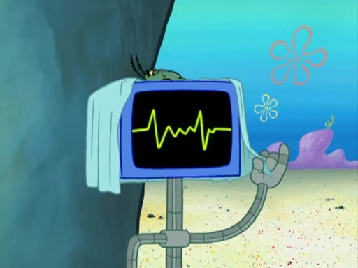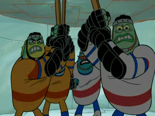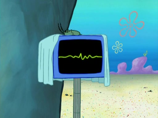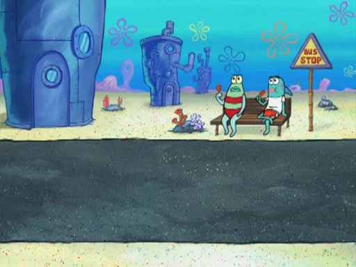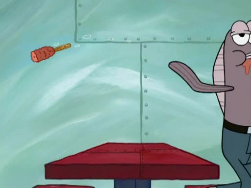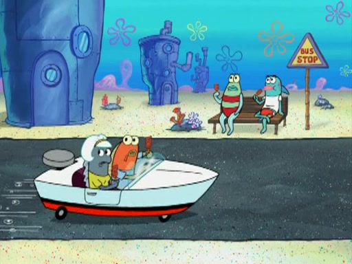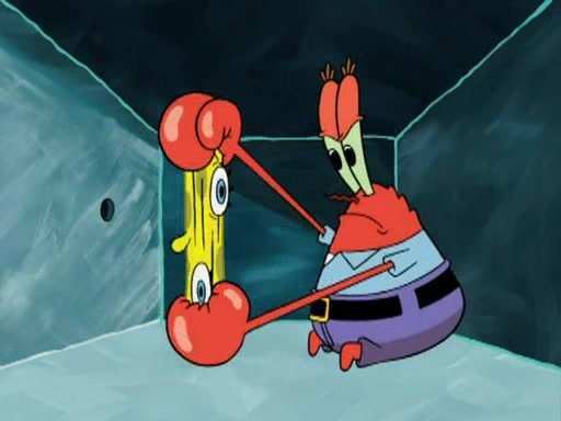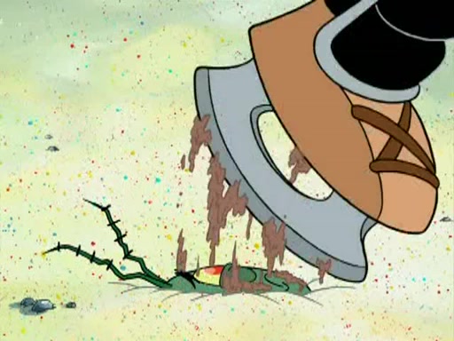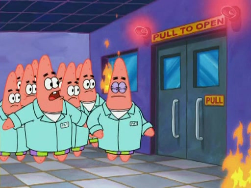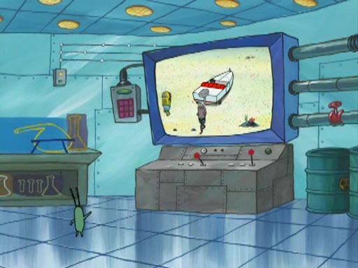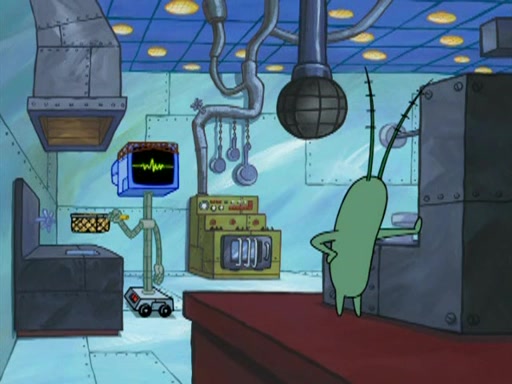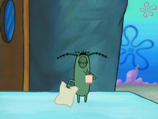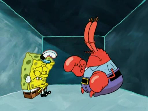 A few days later, people are getting bored of the slogan, so Plankton and Patrick hold a board meeting. Patrick comes up with a new slogan three days later, changing it to "FUM IS CHUM!" This brings back Plankton's customers, much to the chagrin of Mr. Krabs. Business is so large that Plankton gets into the restaurant magazines and even a Canadian hockey team shows up to eat. Patrick then decides the resign from his position as advertising director because he is "burnt out" - there is literally a hole burned into the back of his head. Plankton protests, but then bluffs to make Patrick believe that he is disposable, and not necessarily to keep customers eating at the Chum Bucket. During his rant, Plankton accidentally insults his customers over the intercom that he had installed by the cash register earlier to taunt Mr. Krabs. His customers hear him calling them "buffoons, morons, the dumbest of the dumb" among other things, which causes all his customers to abandon their chum in anger. Plankton then gets beaten up by the hockey team. At the end, everyone sees Patrick finishing a sign with the Krusty Krab's new slogan, "KRABBY PATTIES ARE FUM!" and everyone returns to the Krusty Krab.