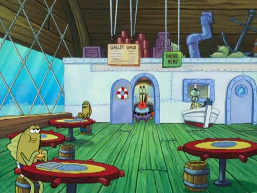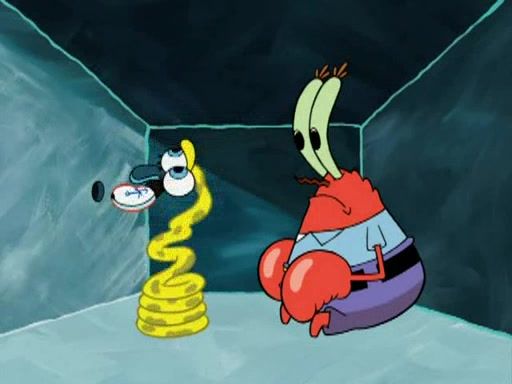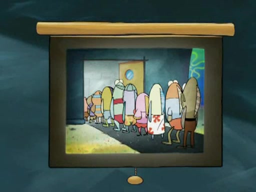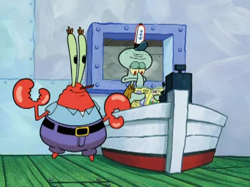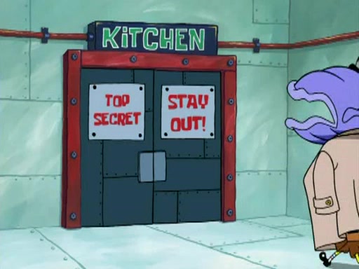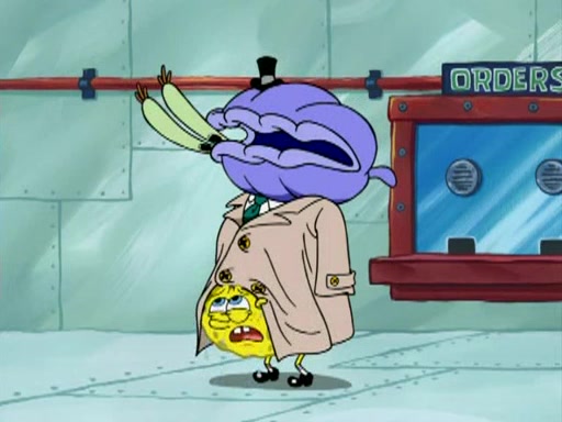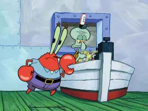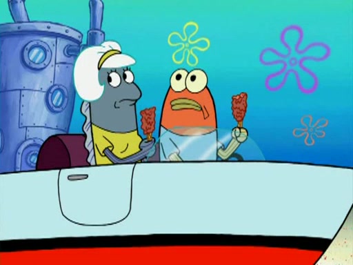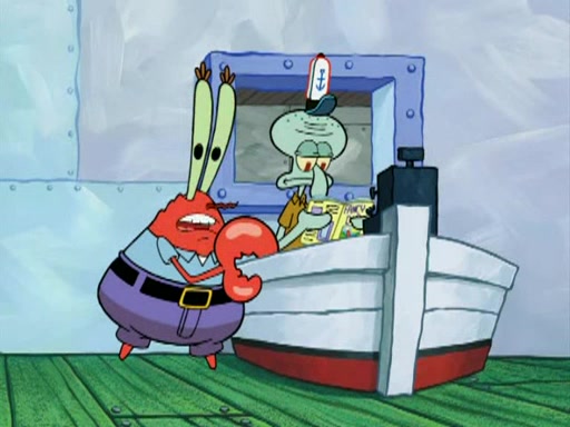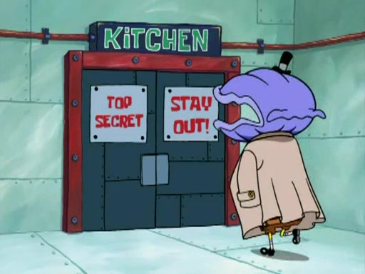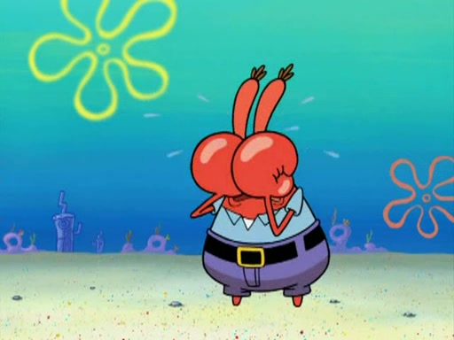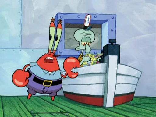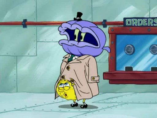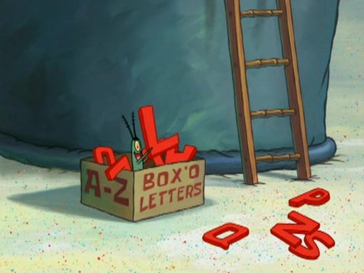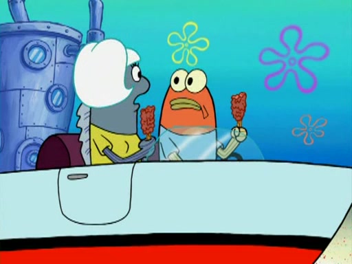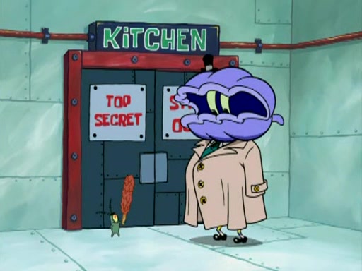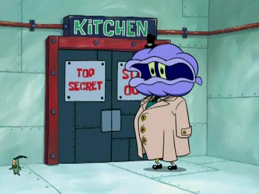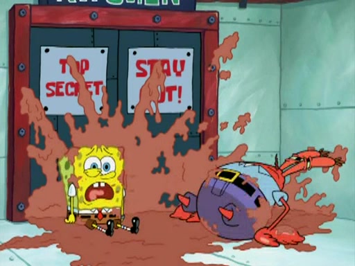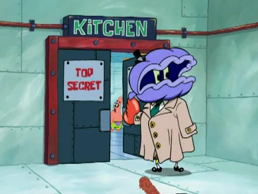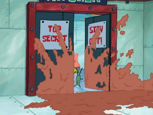 Meanwhile, back at the Krusty Krab, Mr. Krabs believes Plankton has stolen the secret formula, so he comes up with a plan to steal the formula back. Plankton sees through SpongeBob and Mr. Krabs' disguise and they realize that it was the slogan that brought in the customers, despite the fact the chum tastes awful. To combat the disgusting taste of the chum, the customers simply say "Chum is Fum" over and over. Then Plankton goes to Patrick to check on how his assignment to come up with new slogan ideas is going. However, all Patrick does is write Chum is Fum in a thousand different ways. Plankton then gets mad at Patrick, but cools down because Patrick's slogan is still attracting customers.
