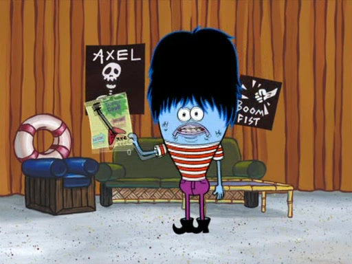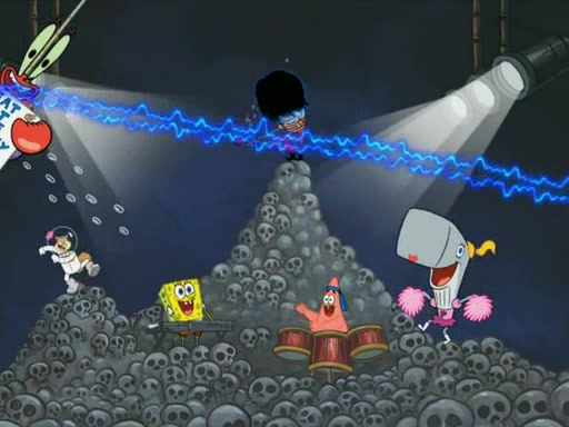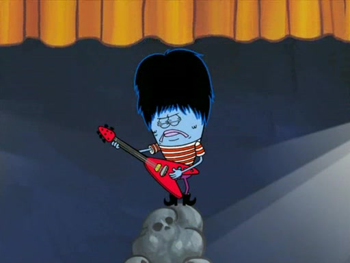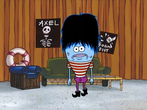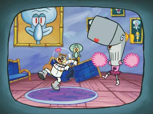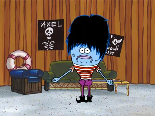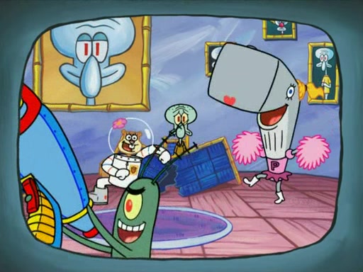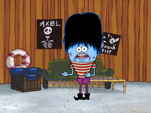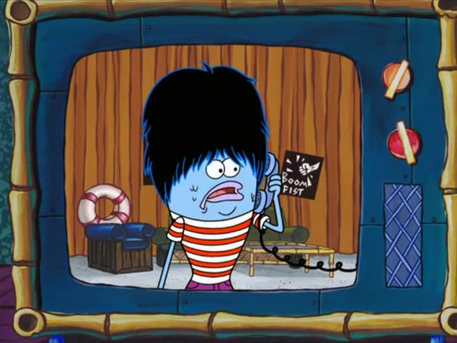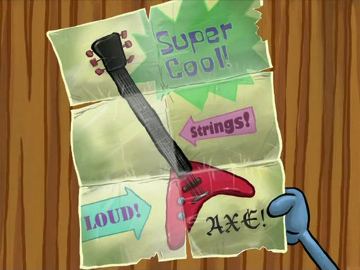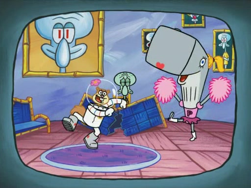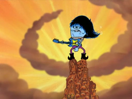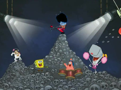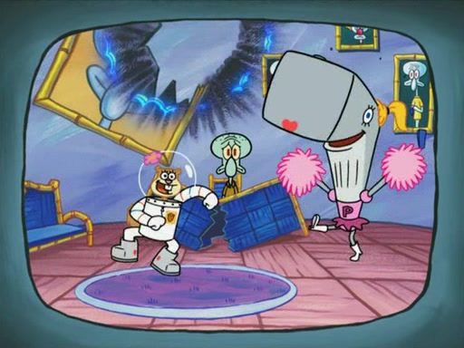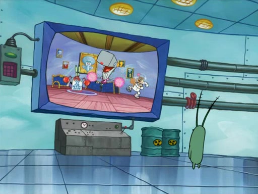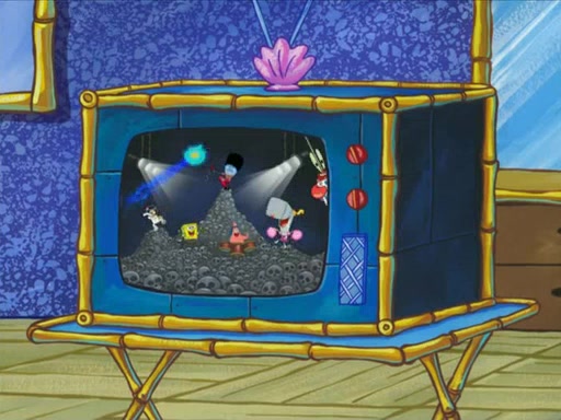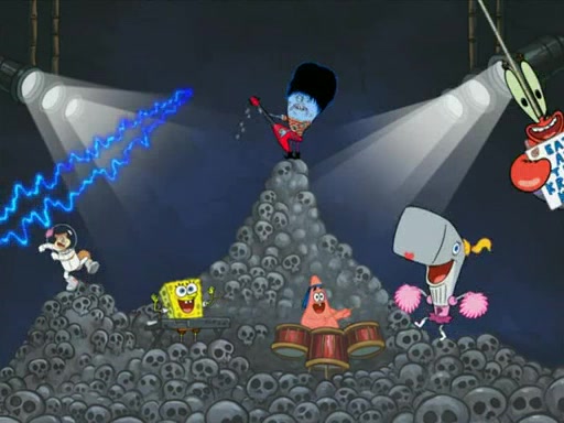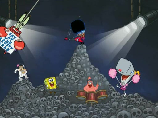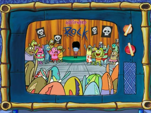 Squidward tells them all to leave and asks them if this is some sort of housewarming. Larry overhears it and everybody comes into his house. The producer comes in and tells Squidward that the show is going great, but kicks a few people out, including Squidward. The show is then renamed Squidward's House Party, which does not include Squidward. Instead, it has Zeus the Guitar Lord hosting. It also has Patrick on the drums, Sandy and Pearl as back-up dancers, SpongeBob on electric keyboard, Mr. Krabs as advertisement, and Plankton as the special effects master. And the worst part is, Squidward just can't seem to sleep because of all the noise.