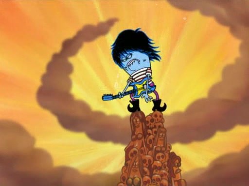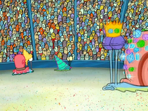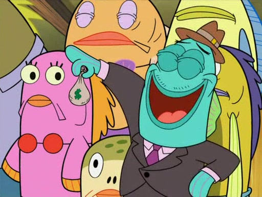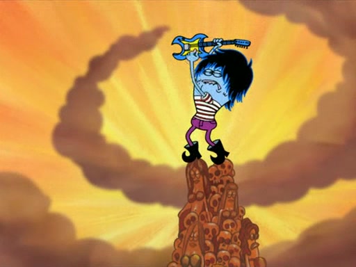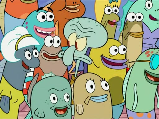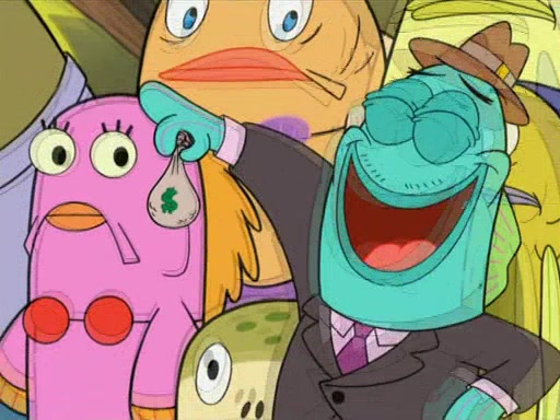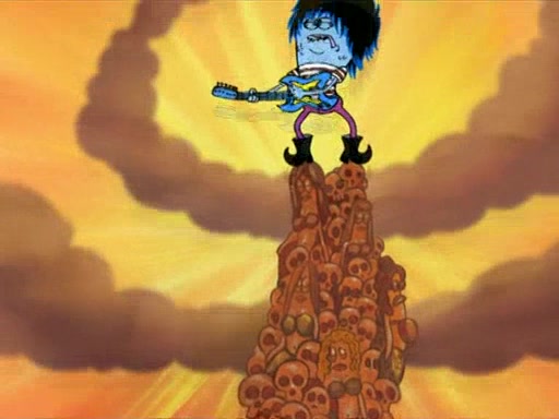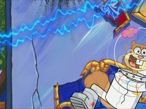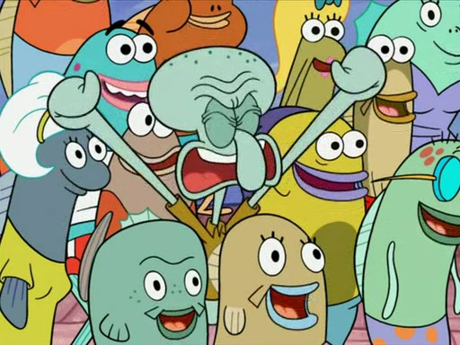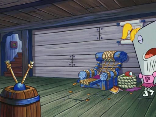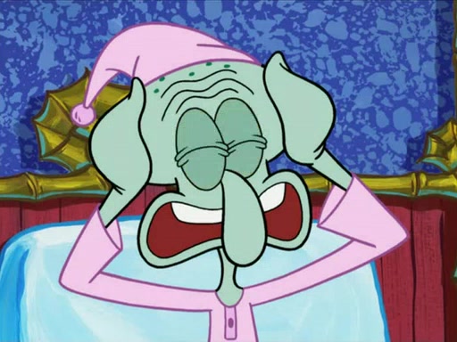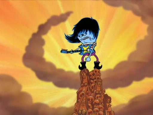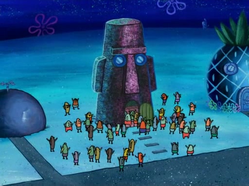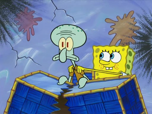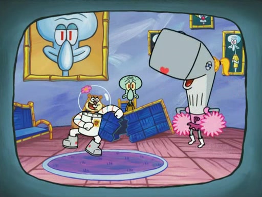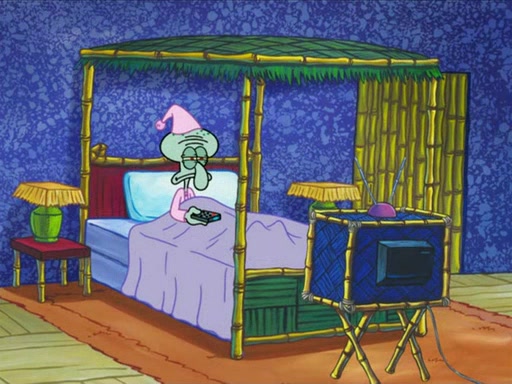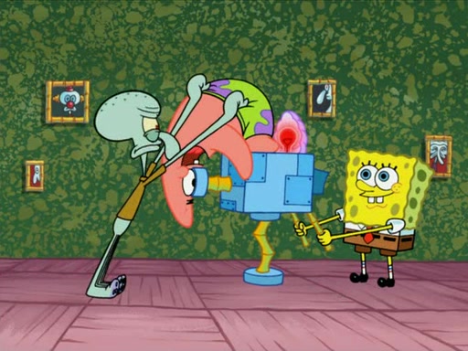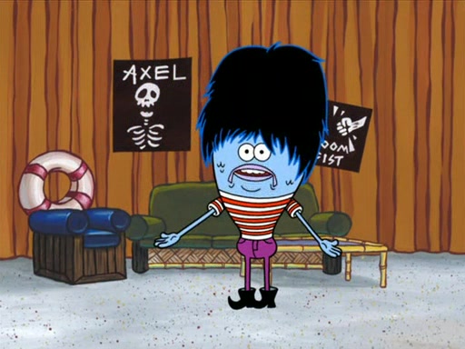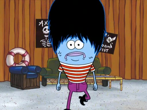 Squidward tells them all to leave and asks them if this is some sort of housewarming. Larry overhears it and everybody comes into his house. The producer comes in and tells Squidward that the show is going great, but kicks a few people out, including Squidward. The show is then renamed Squidward's House Party, which does not include Squidward. Instead, it has Zeus the Guitar Lord hosting. It also has Patrick on the drums, Sandy and Pearl as back-up dancers, SpongeBob on electric keyboard, Mr. Krabs as advertisement, and Plankton as the special effects master. And the worst part is, Squidward just can't seem to sleep because of all the noise.