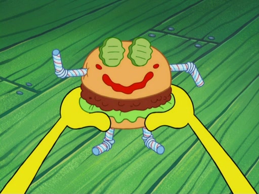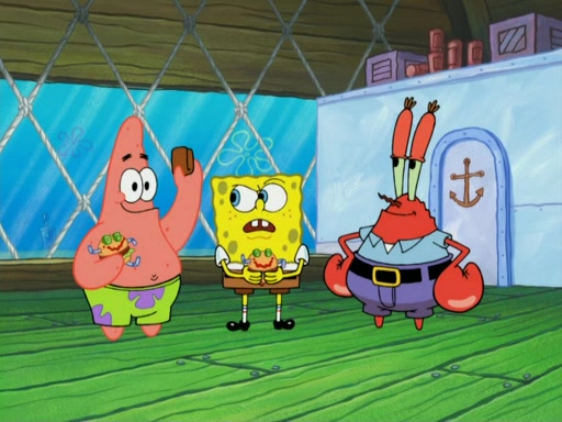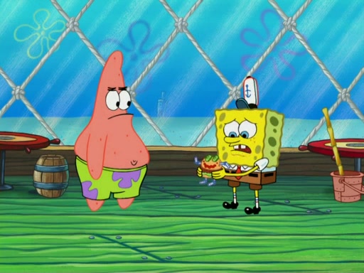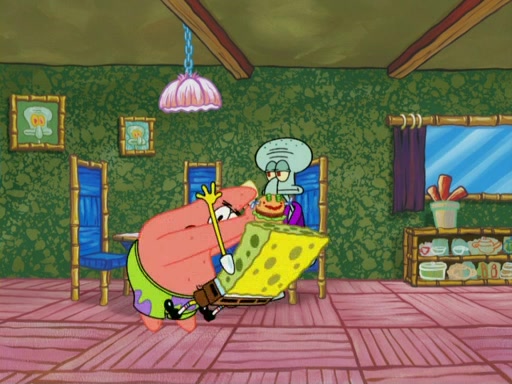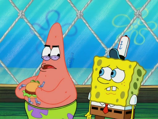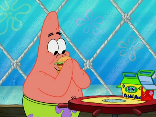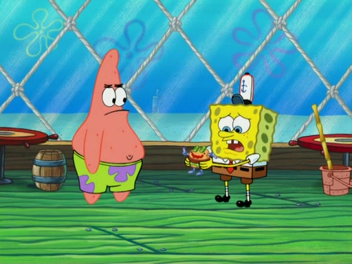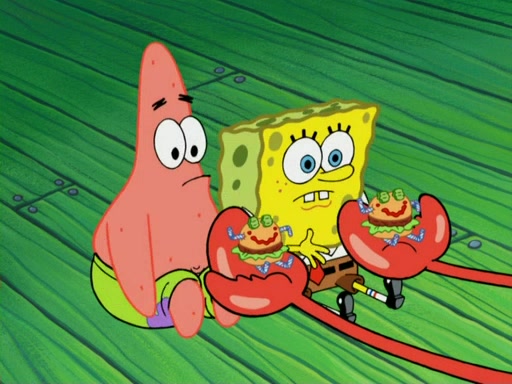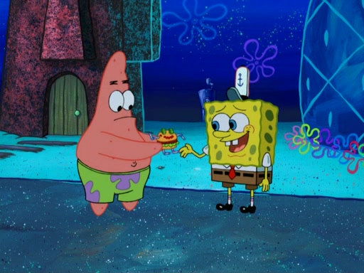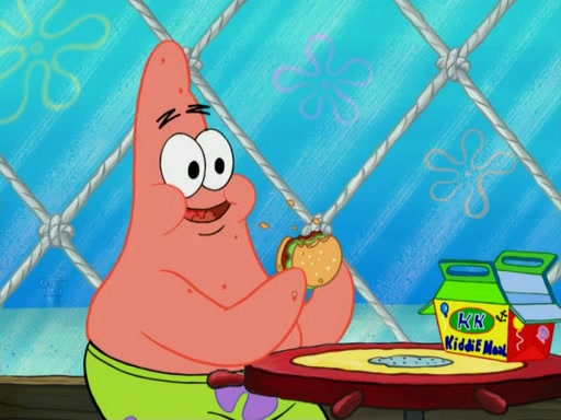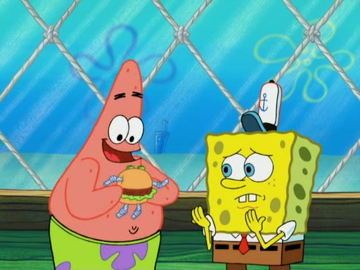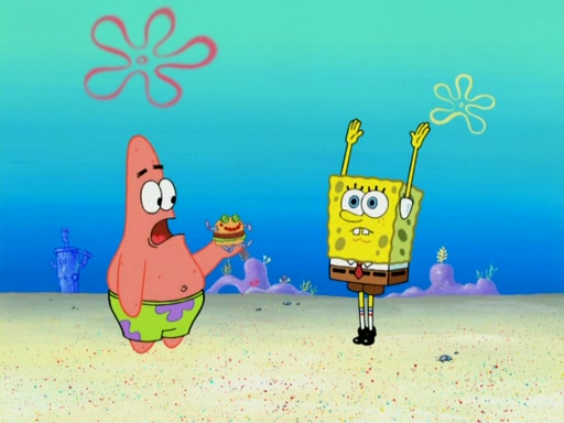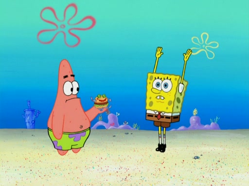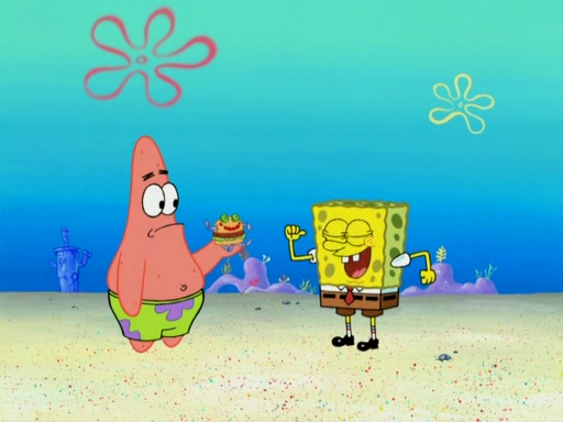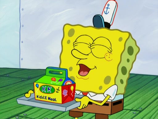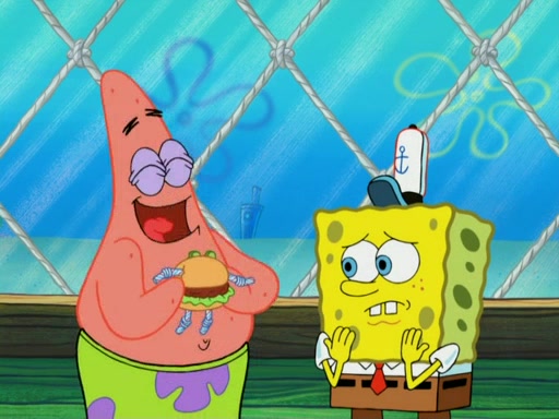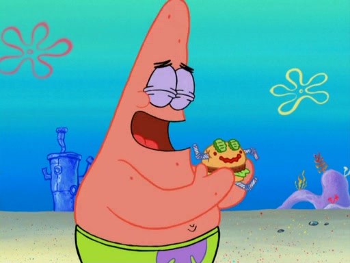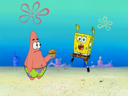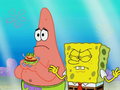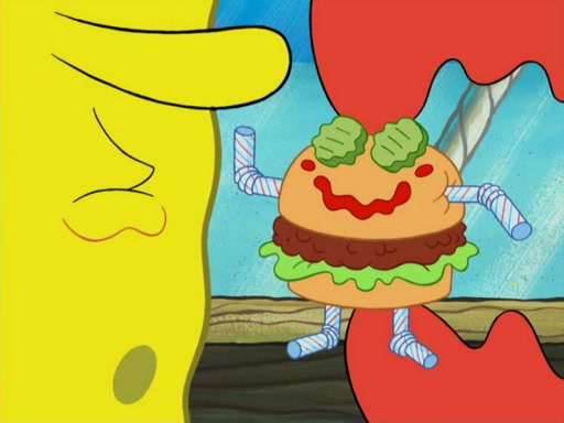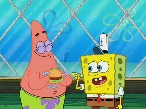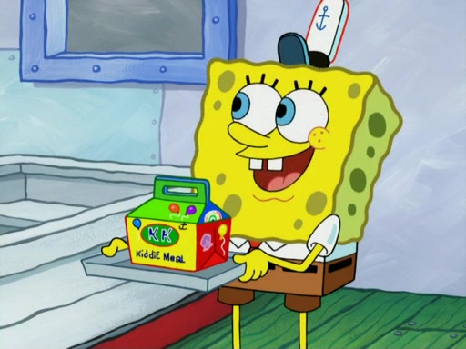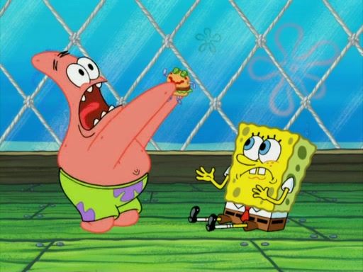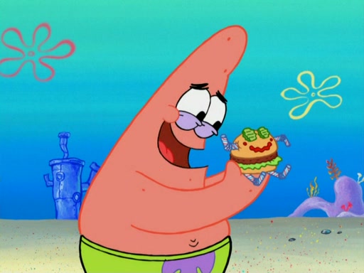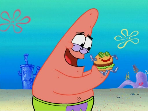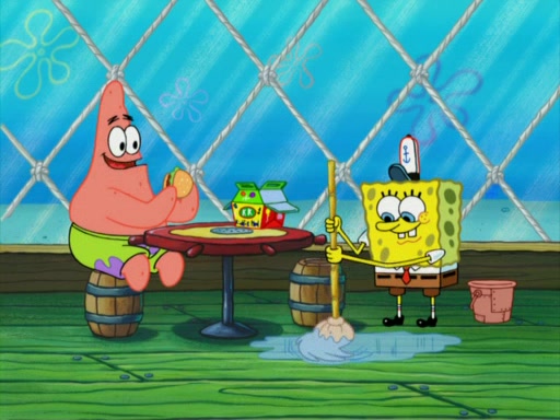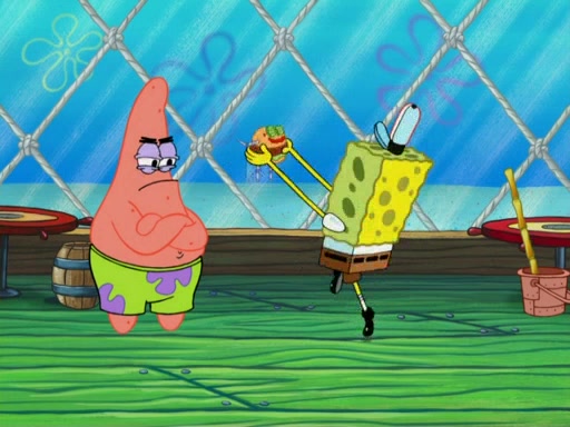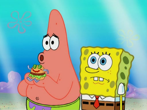One day, Patrick orders a Krabby Kiddie meal at the Krusty Krab, but since he does not have any money, SpongeBob pays for it. He agrees to share it with SpongeBob, but does not save any of the meal for him. Patrick then wants his money back because his meal did not come with a toy, again despite the fact that SpongeBob paid for it, not him. Mr. Krabs sticks some straws and googly eyes on a Krabby Patty and calls it a Krabby Patty shaped toy, and SpongeBob falls in love with it and names it "Patty Pal." Patrick then reminds SpongeBob that they are sharing this meal, ignoring that he ate it all himself, and takes Patty Pal.