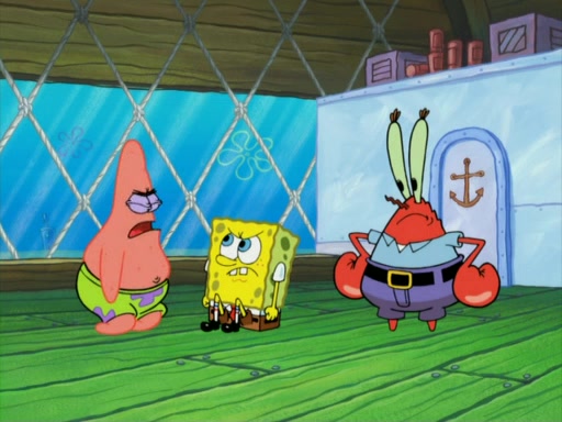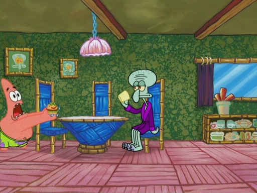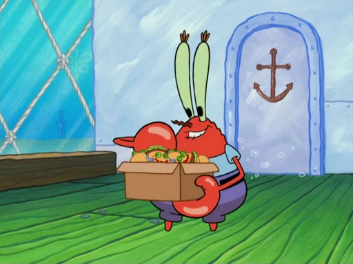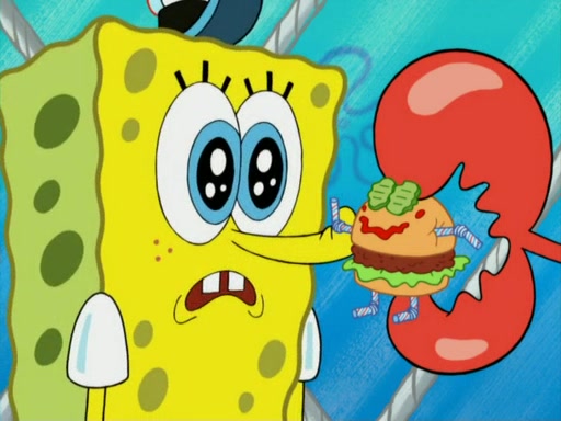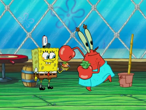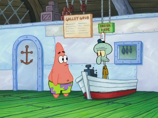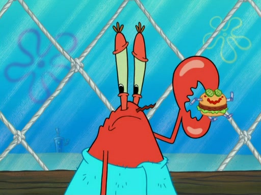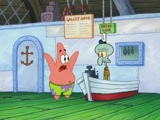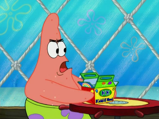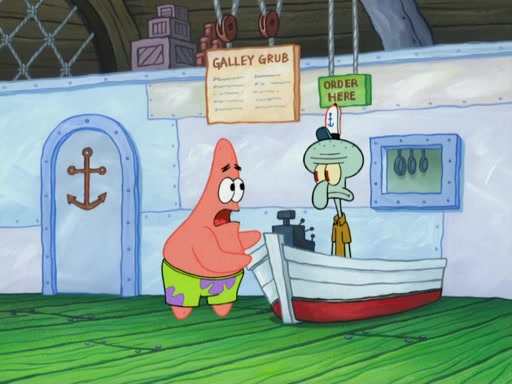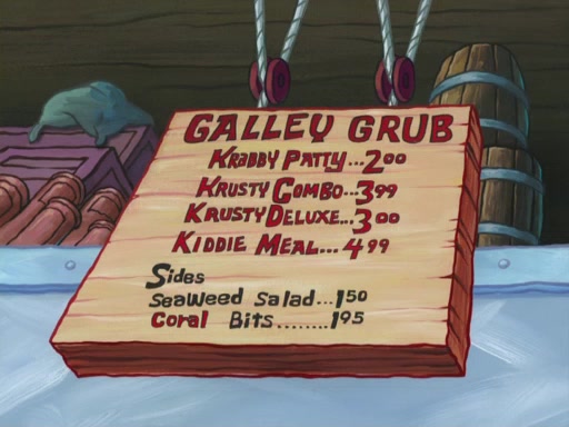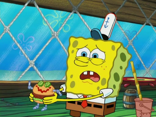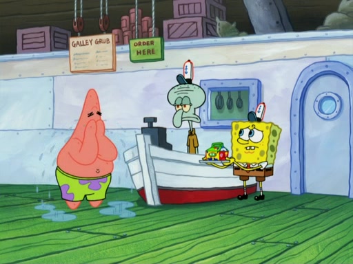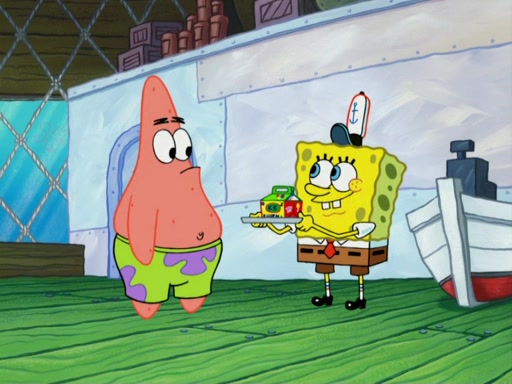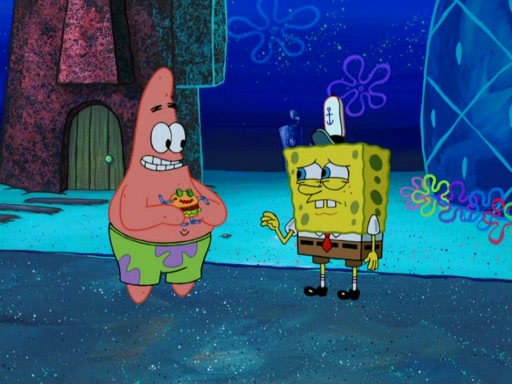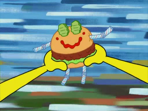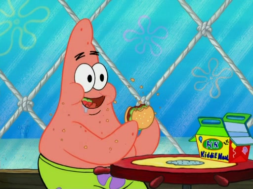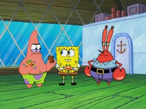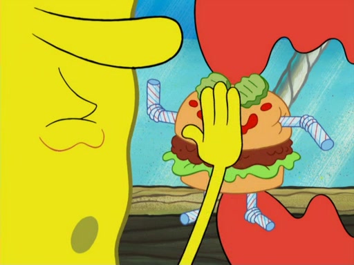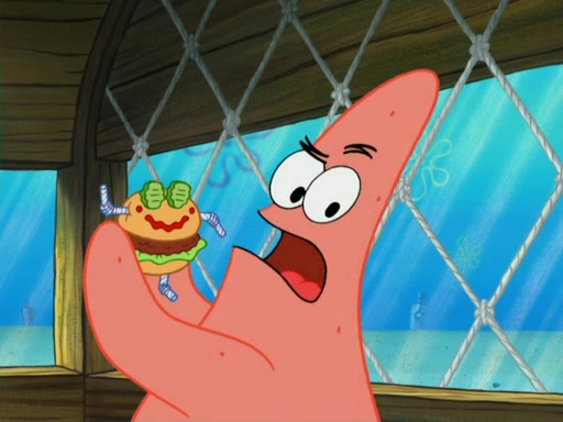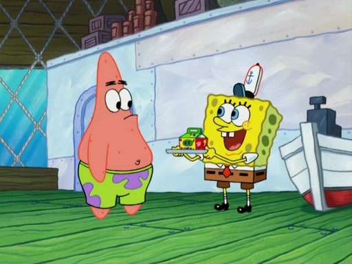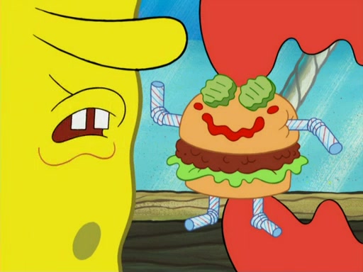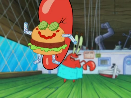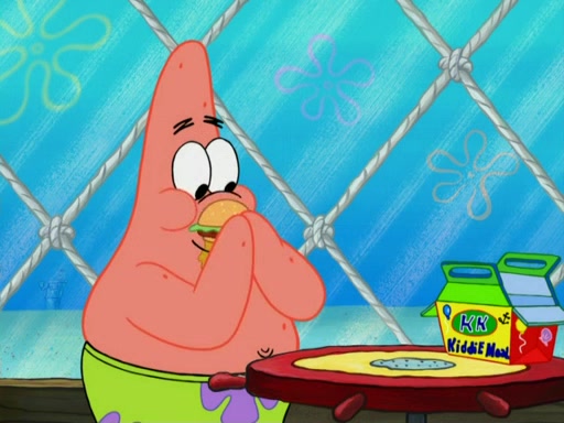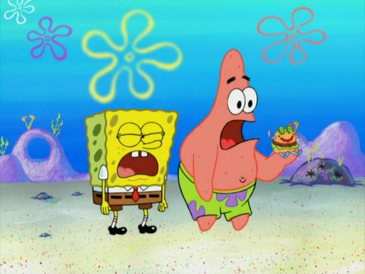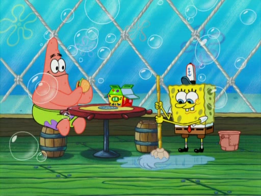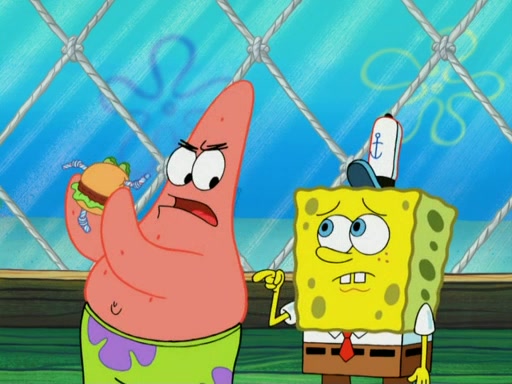 One day, Patrick orders a Krabby Kiddie meal at the Krusty Krab, but since he does not have any money, SpongeBob pays for it. He agrees to share it with SpongeBob, but does not save any of the meal for him. Patrick then wants his money back because his meal did not come with a toy, again despite the fact that SpongeBob paid for it, not him. Mr. Krabs sticks some straws and googly eyes on a Krabby Patty and calls it a Krabby Patty shaped toy, and SpongeBob falls in love with it and names it "Patty Pal." Patrick then reminds SpongeBob that they are sharing this meal, ignoring that he ate it all himself, and takes Patty Pal.
