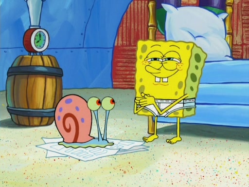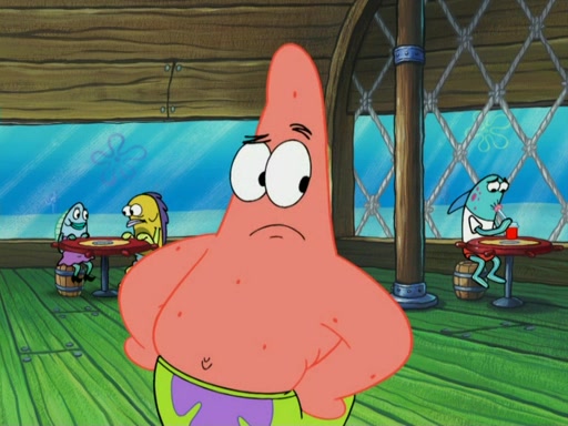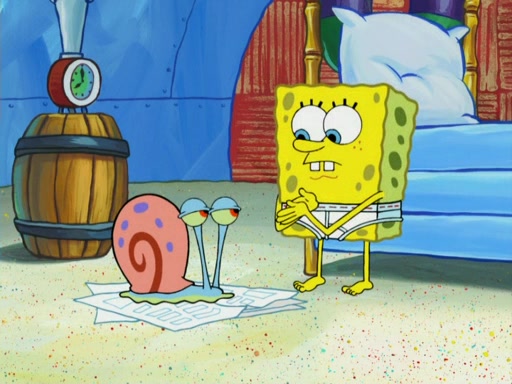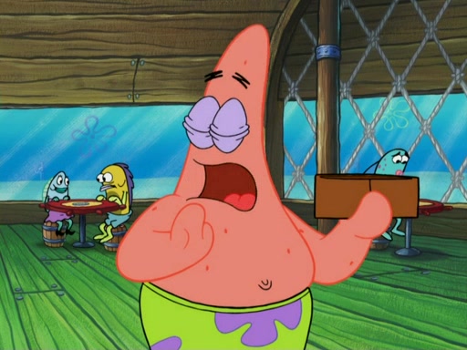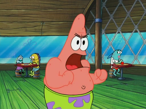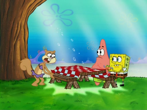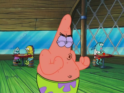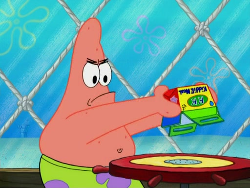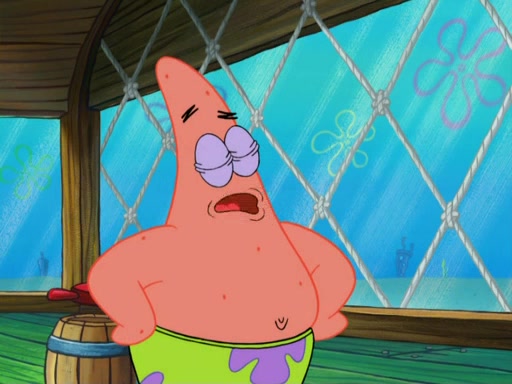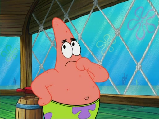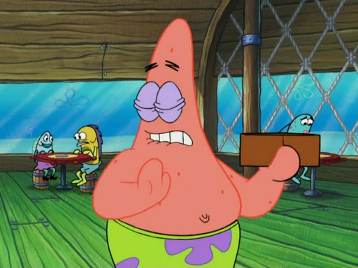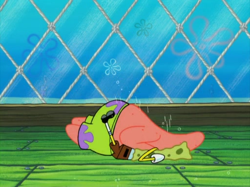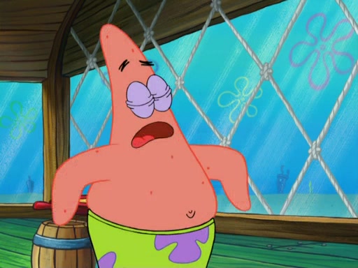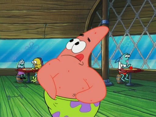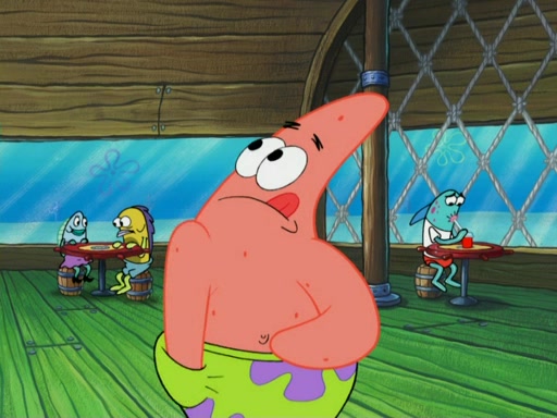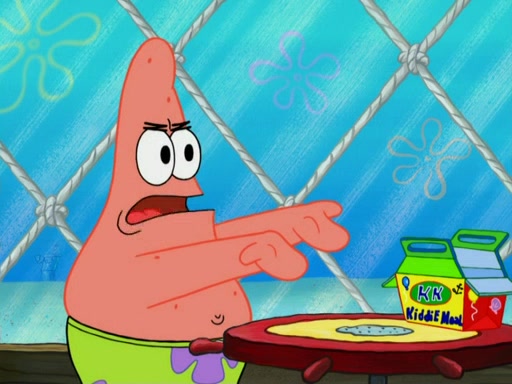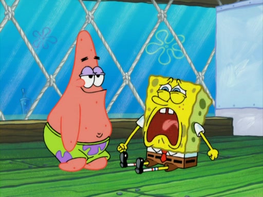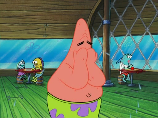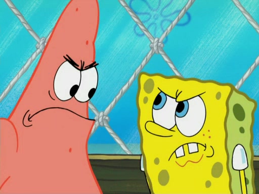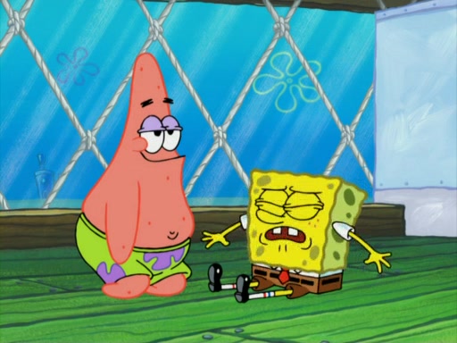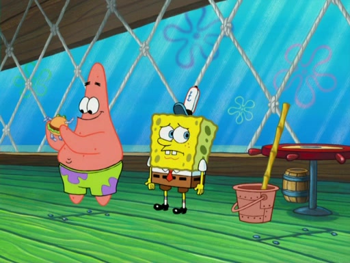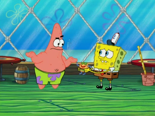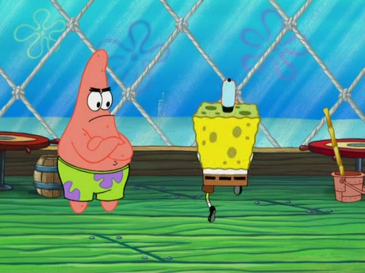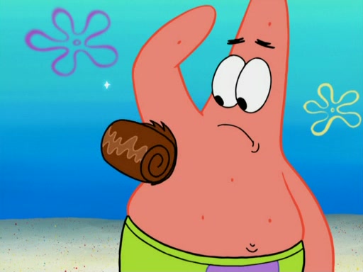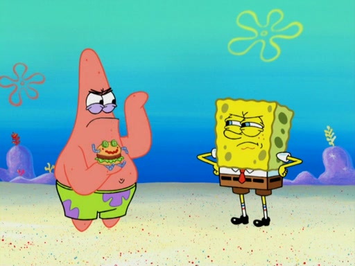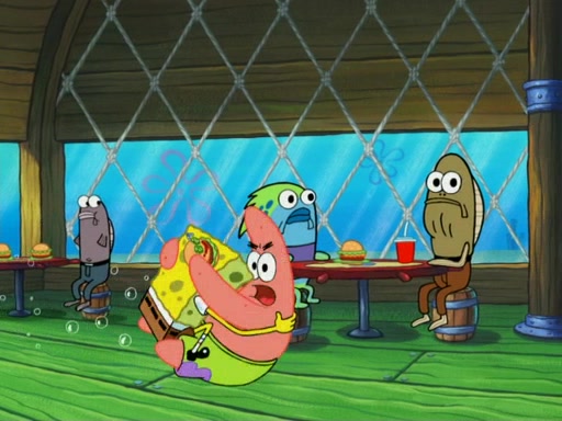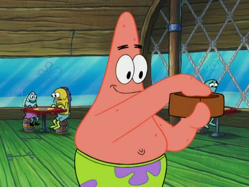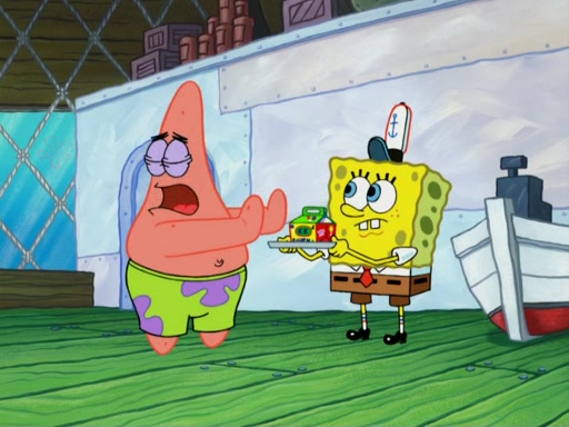 SpongeBob wakes up and goes over to get the toy, but Patrick makes excuses not to come out. SpongeBob pretends to walk away, but fails to get Patrick to give him Patty Pal. Patrick whines and thinks it's not fair that SpongeBob wants the toy. SpongeBob tries to be diplomatic and suggests that they each get a day with it, but Patrick refuses. He asks him if he can keep it for a shorter time, but Patrick refuses again, and continues to refuse to SpongeBob's continually decreasing offers until SpongeBob finally takes the toy deciding that they trade off every second. Unfortunately, even when they do that, Patrick still looks physically pained to part with the toy for even a second, so he takes the toy and runs away, which makes them begin to fight.