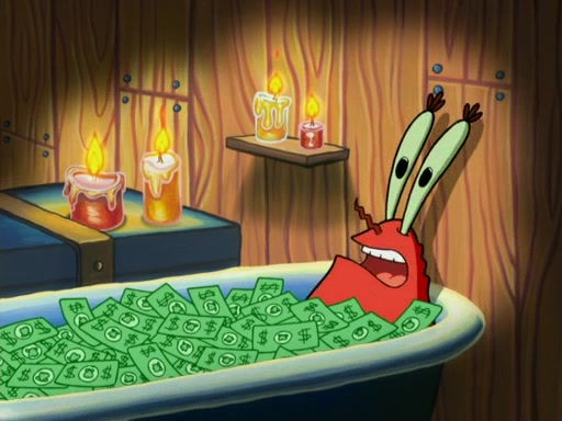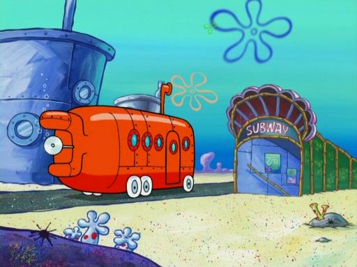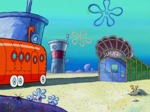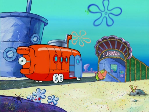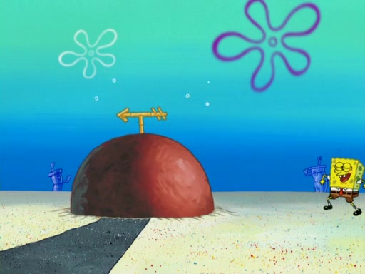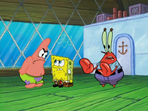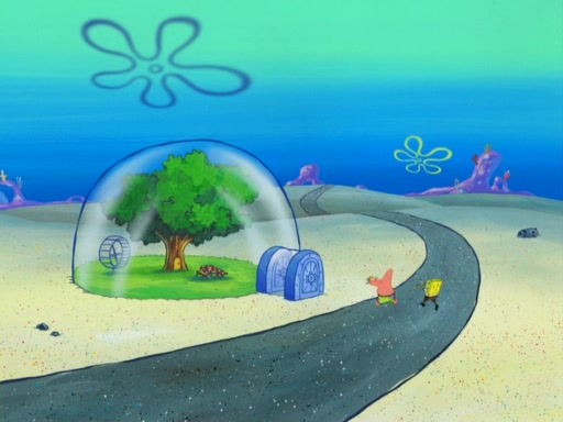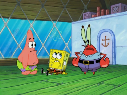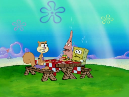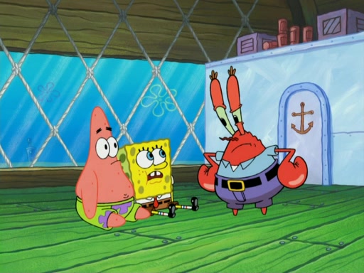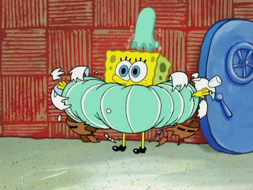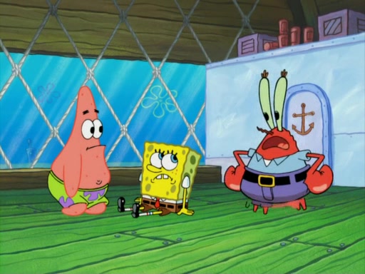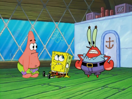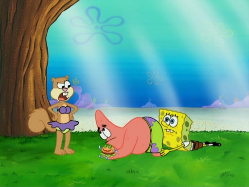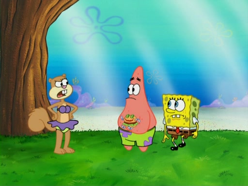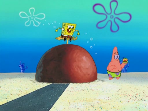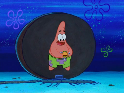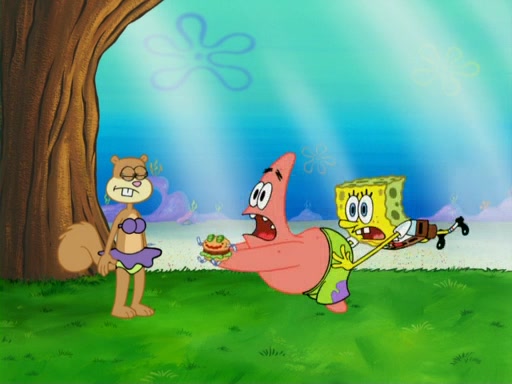 They run into Squidward's house and then Sandy's Treedome without helmets on. Sandy tries to help them, but they dry out and run out of her treedome gasping for water. When they feel better, they begin to fight again, and roll onto a bus, a subway, a taxi, and eventually back into the Krusty Krab. Patrick yells that if he cannot have it, then no one can and eats Patty Pal. SpongeBob and Patrick complain to Mr. Krabs, who stops their argument saying that they should be ashamed for letting a toy get in their way of friendship. After that, he lets them each have a toy, but they have to pay for it. Patrick replies that he will pay, but he pulls out SpongeBob's wallet. SpongeBob tells him that it is his wallet, and Patrick asks him if he has learned nothing about sharing.