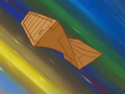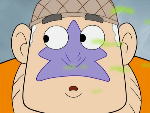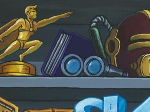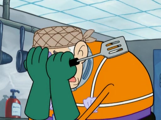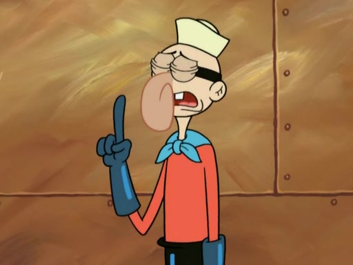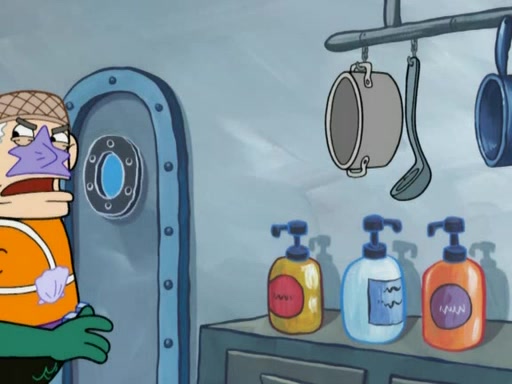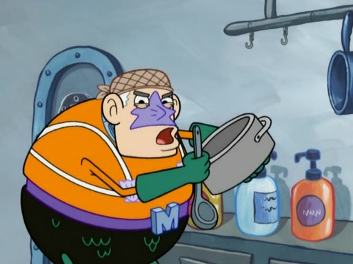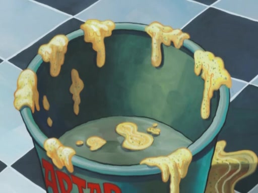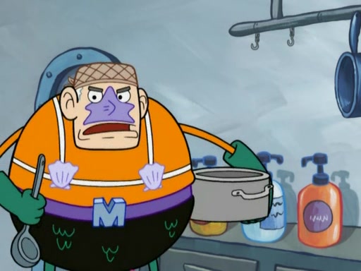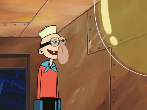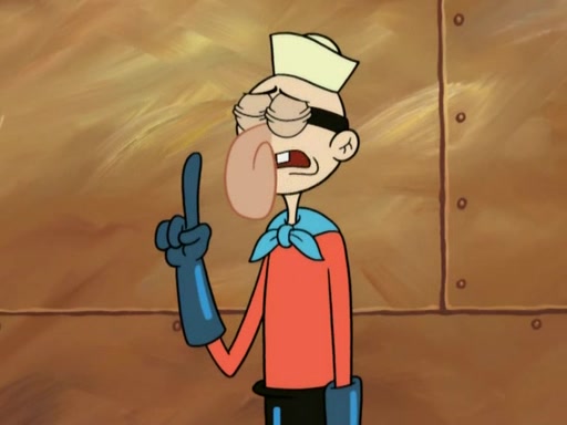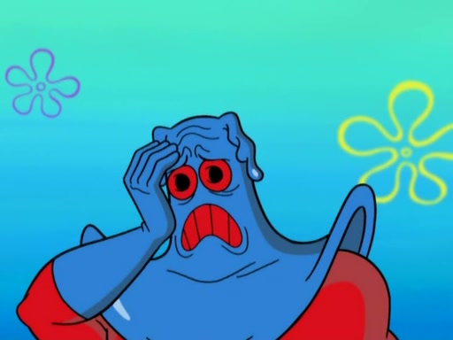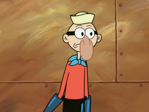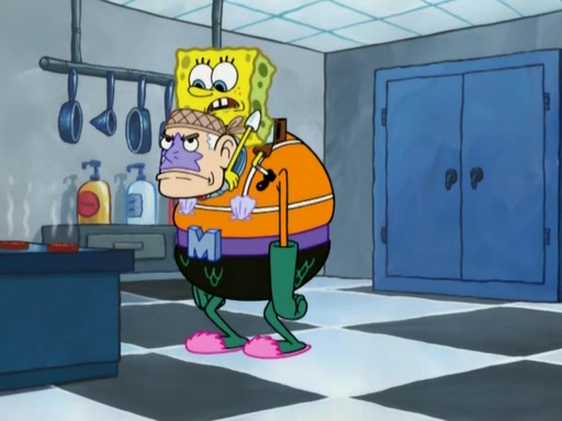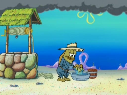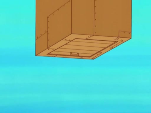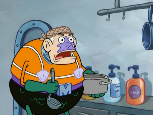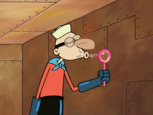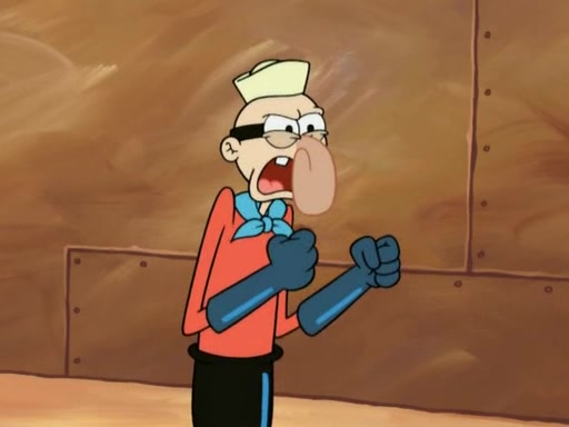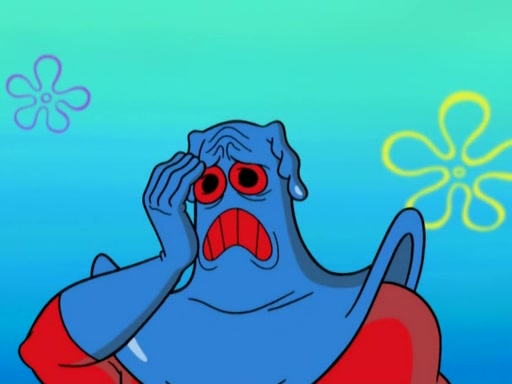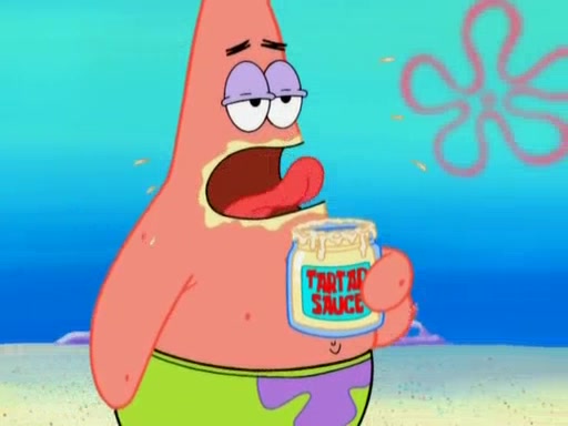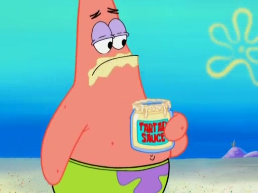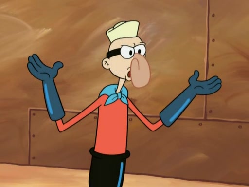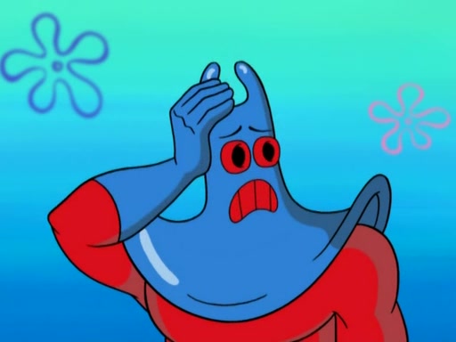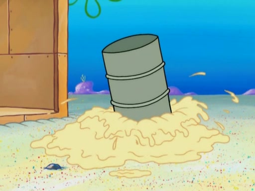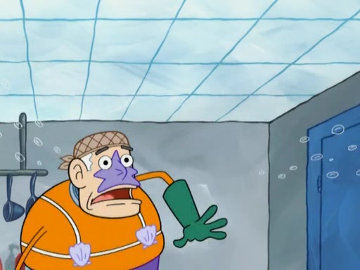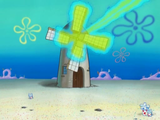 Another one pops to Man Ray's left with Mermaid Man and Barnacle Boy leaping out of it exclaiming, "Up, up and away!" They both fall headfirst into the ground. Another one appears above of the previous warehouse with the superheroes. SpongeBob and Patrick appear and throw a batch of tartar sauce over the fallen superheroes from the previous warehouse.