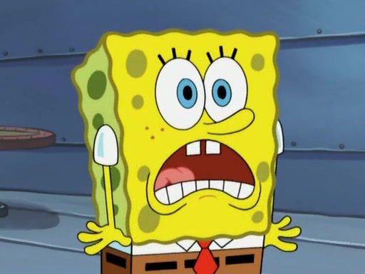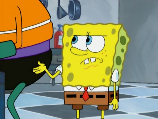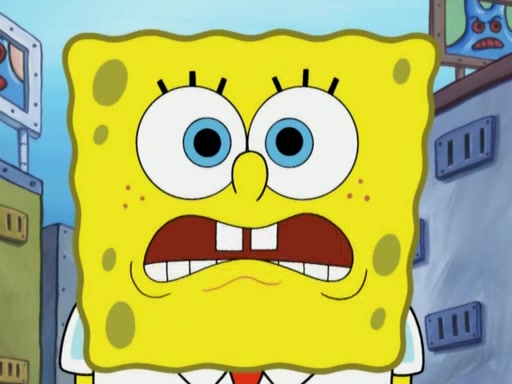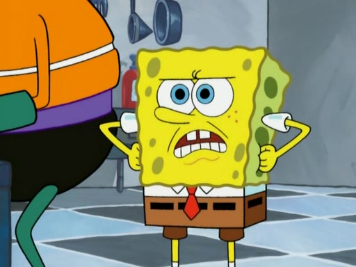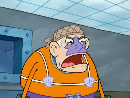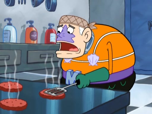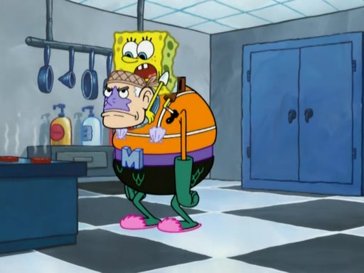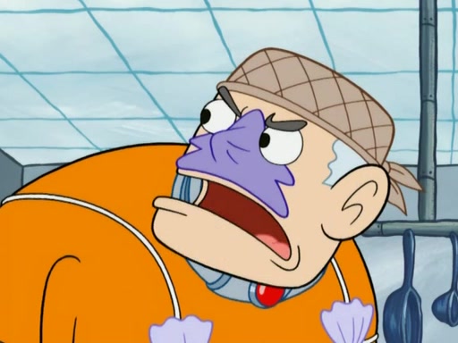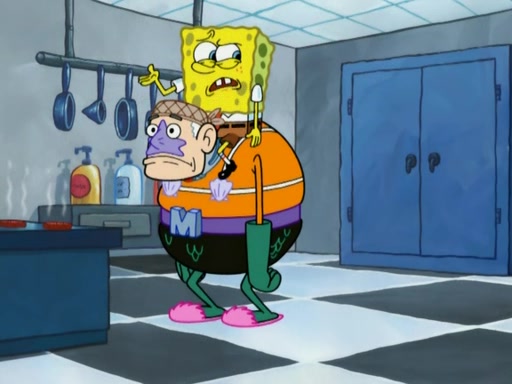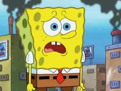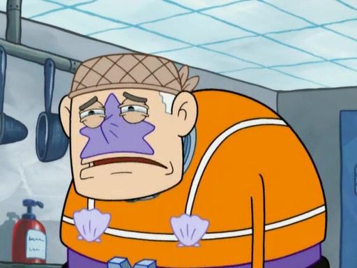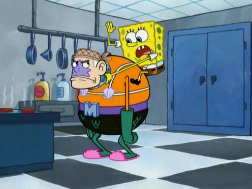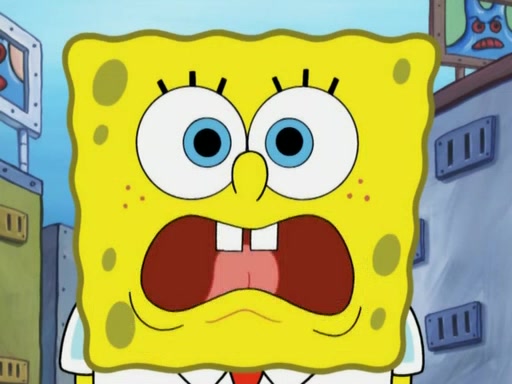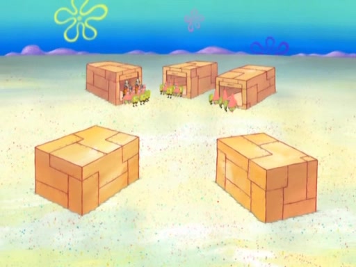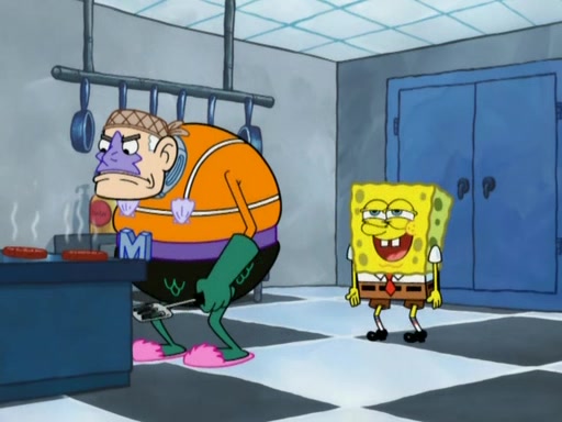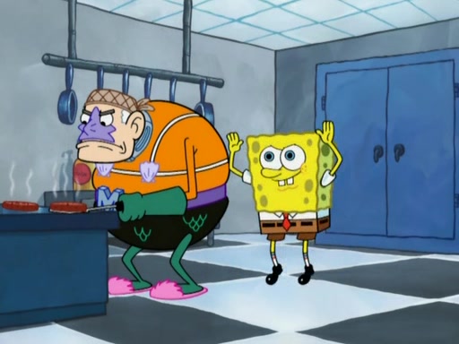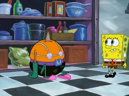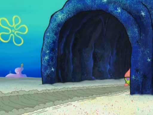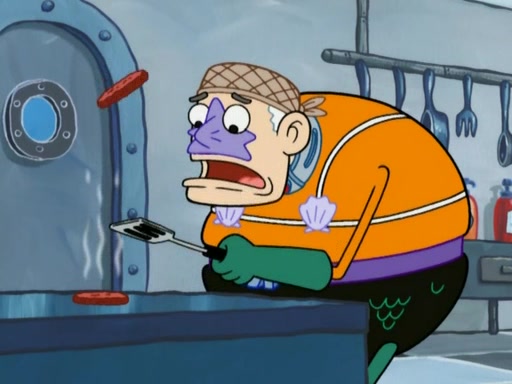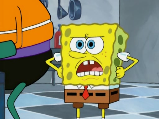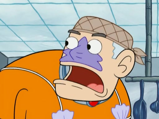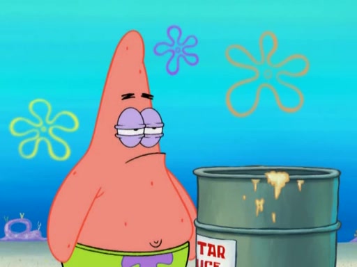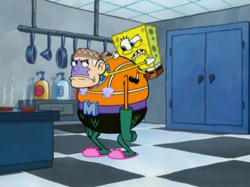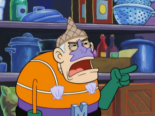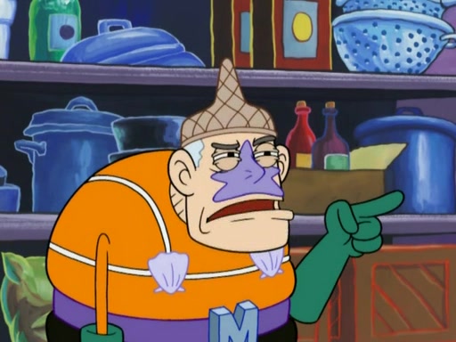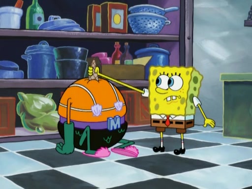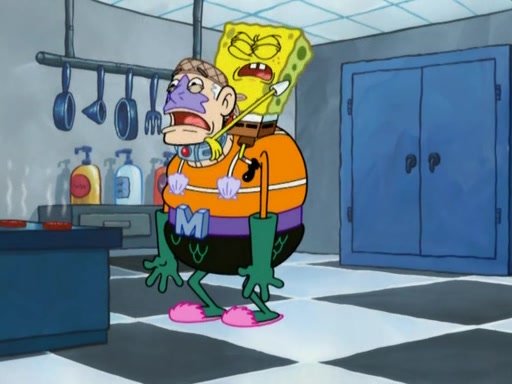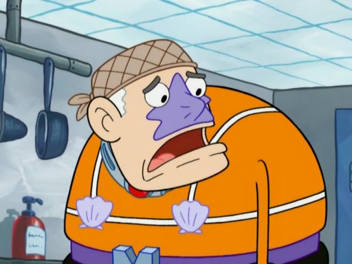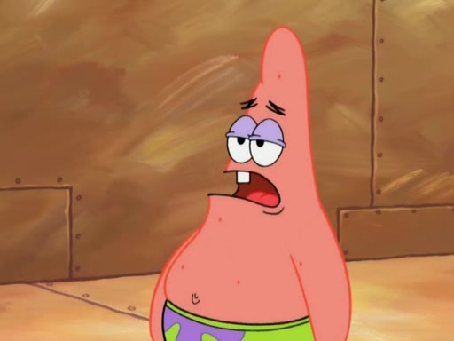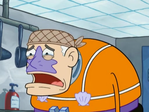 SpongeBob and Patrick from a different time period emerge from the warehouse screaming "Patrick, don't eat the tartar sauce!" Another warehouse appears above of Man Ray and out fall SpongeBob and Patrick. Yet another one appears with SpongeBob saying to Patrick "I told you we had to go back further!"