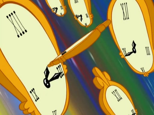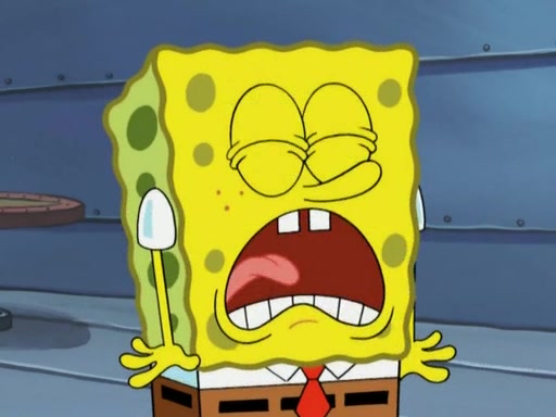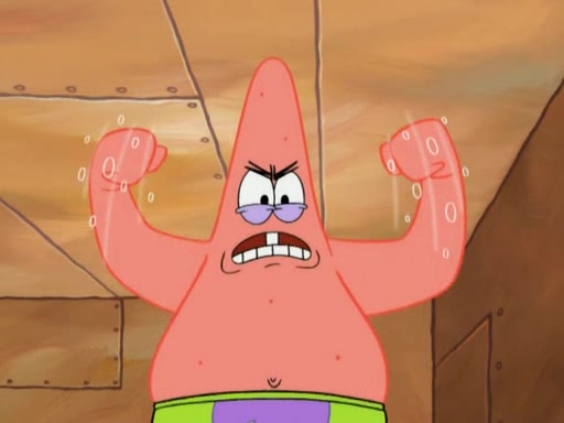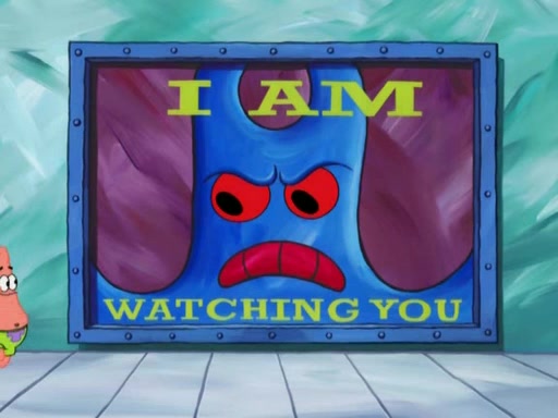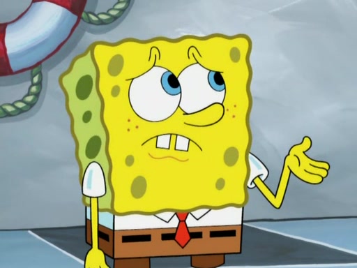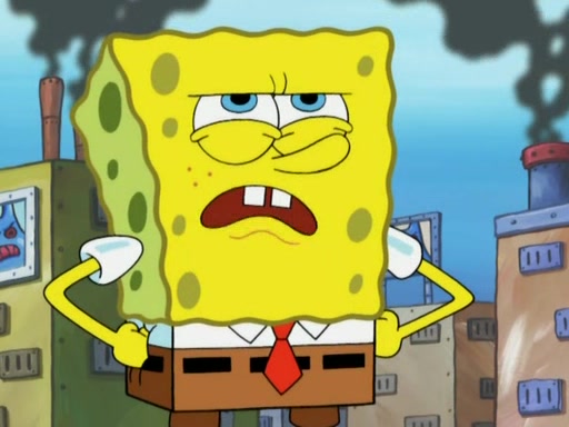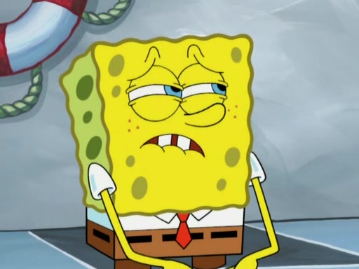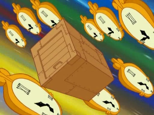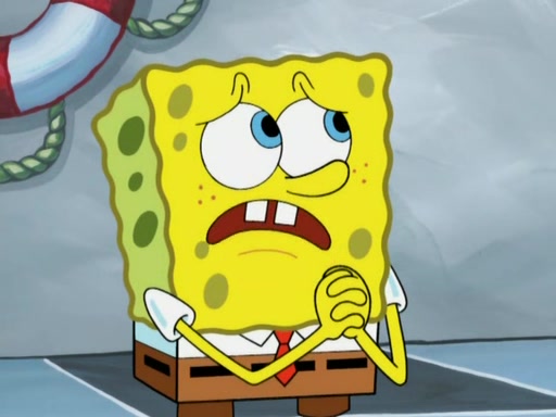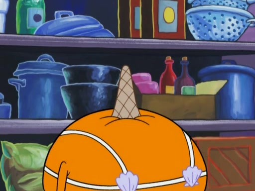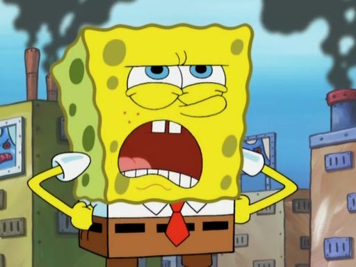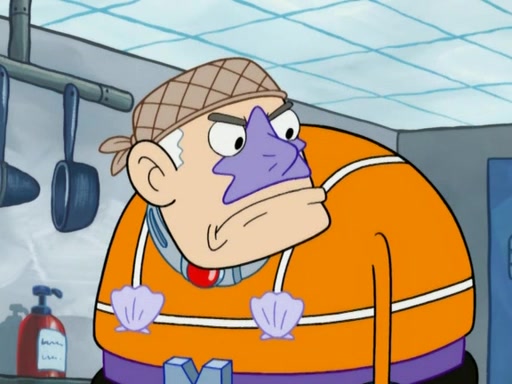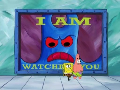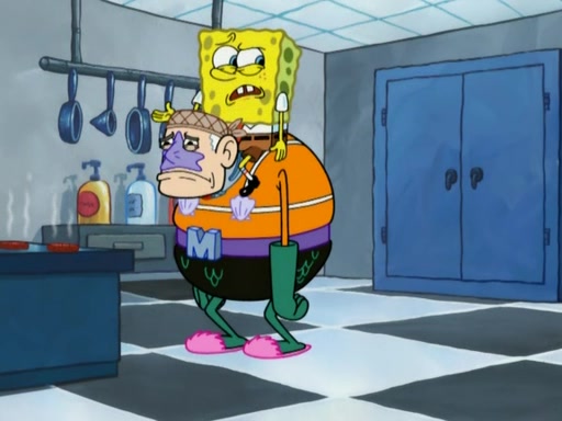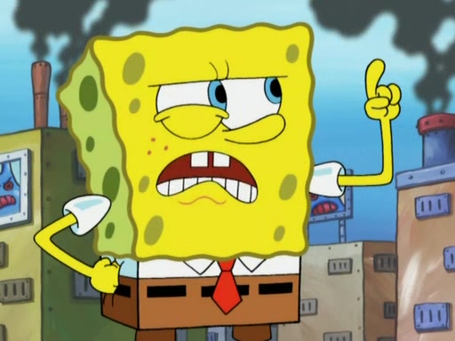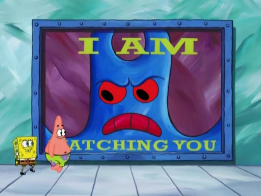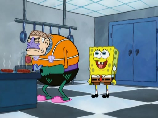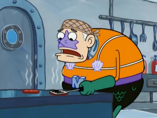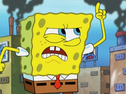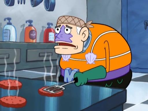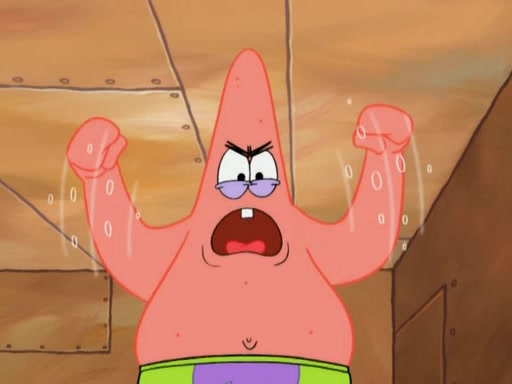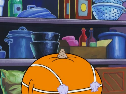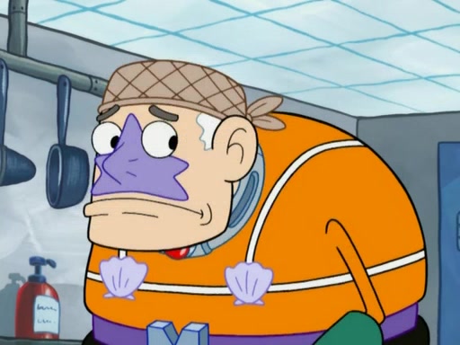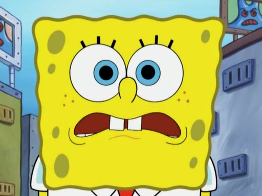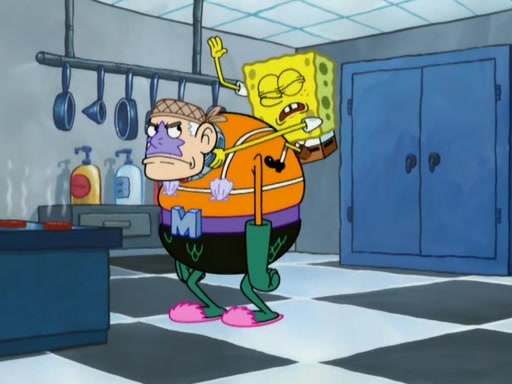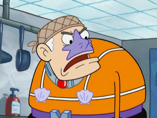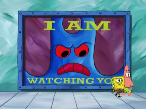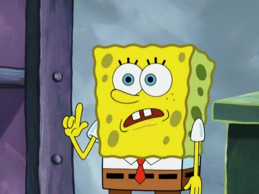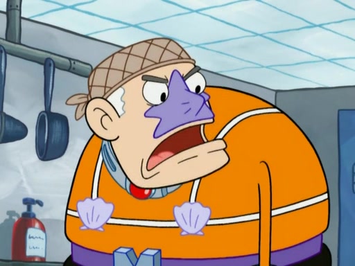 SpongeBob and Patrick from a different time period emerge from the warehouse screaming "Patrick, don't eat the tartar sauce!" Another warehouse appears above of Man Ray and out fall SpongeBob and Patrick. Yet another one appears with SpongeBob saying to Patrick "I told you we had to go back further!"